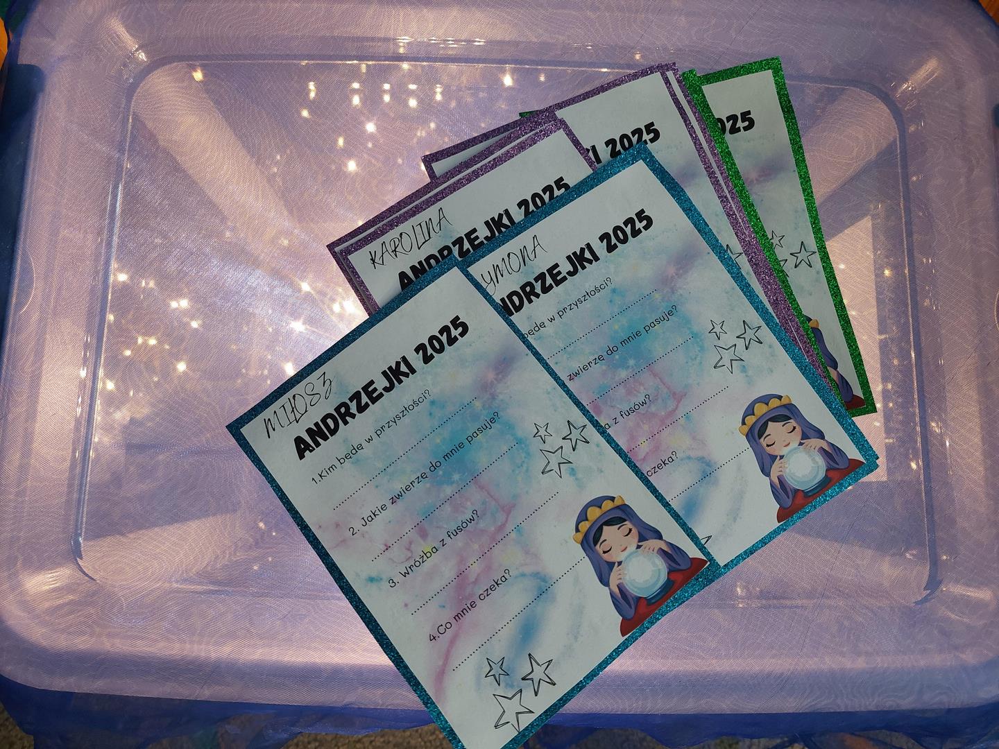 Dzisiaj przebrani w czarodziejów obchodziliśmy Andrzejki. Dowiedzieliśmy się co czeka.nas w przyszłości. Były też dobre rady aby lepiej dbać o swoje zdrowie i być bardziej uważnym na drodze.