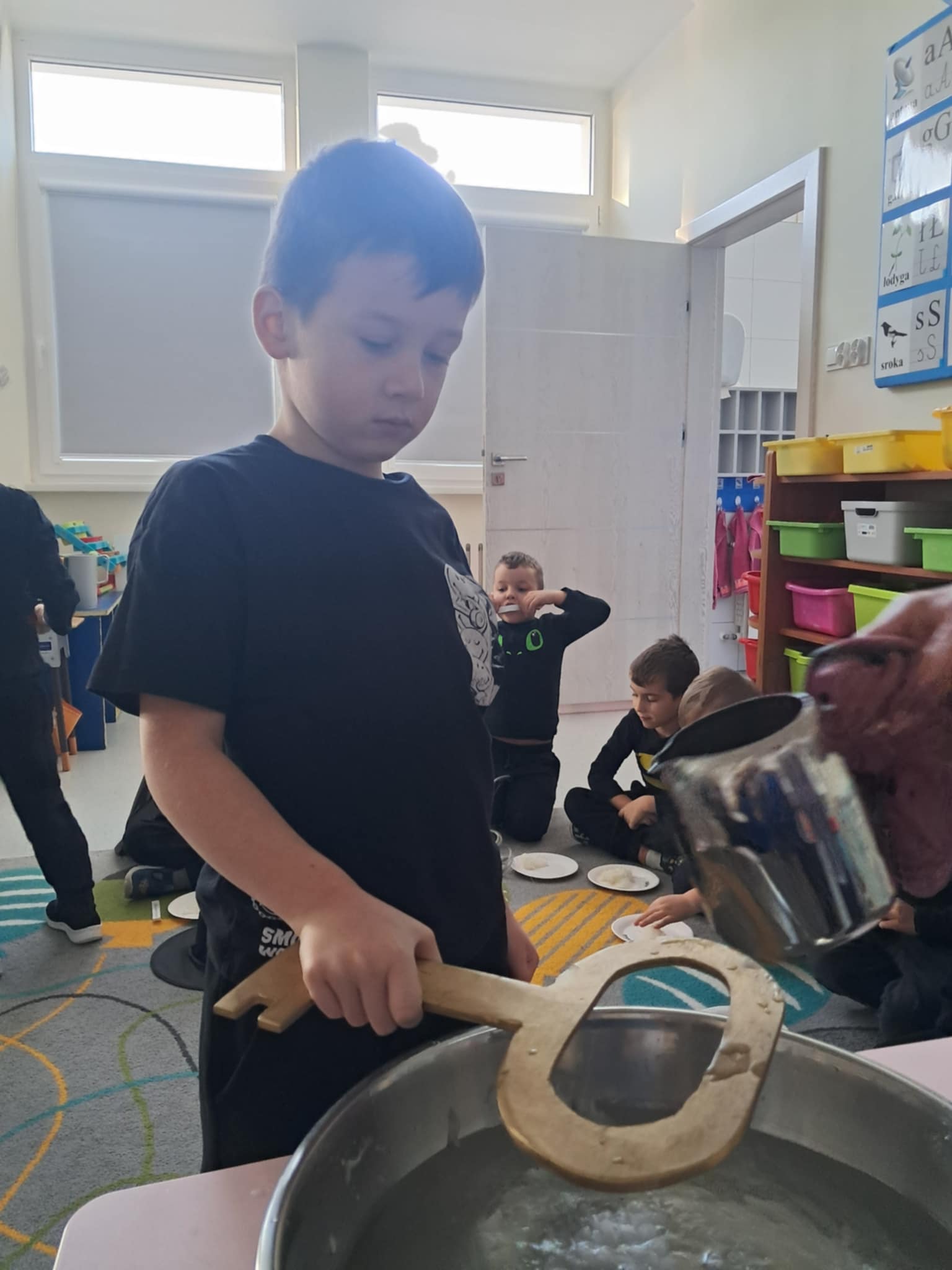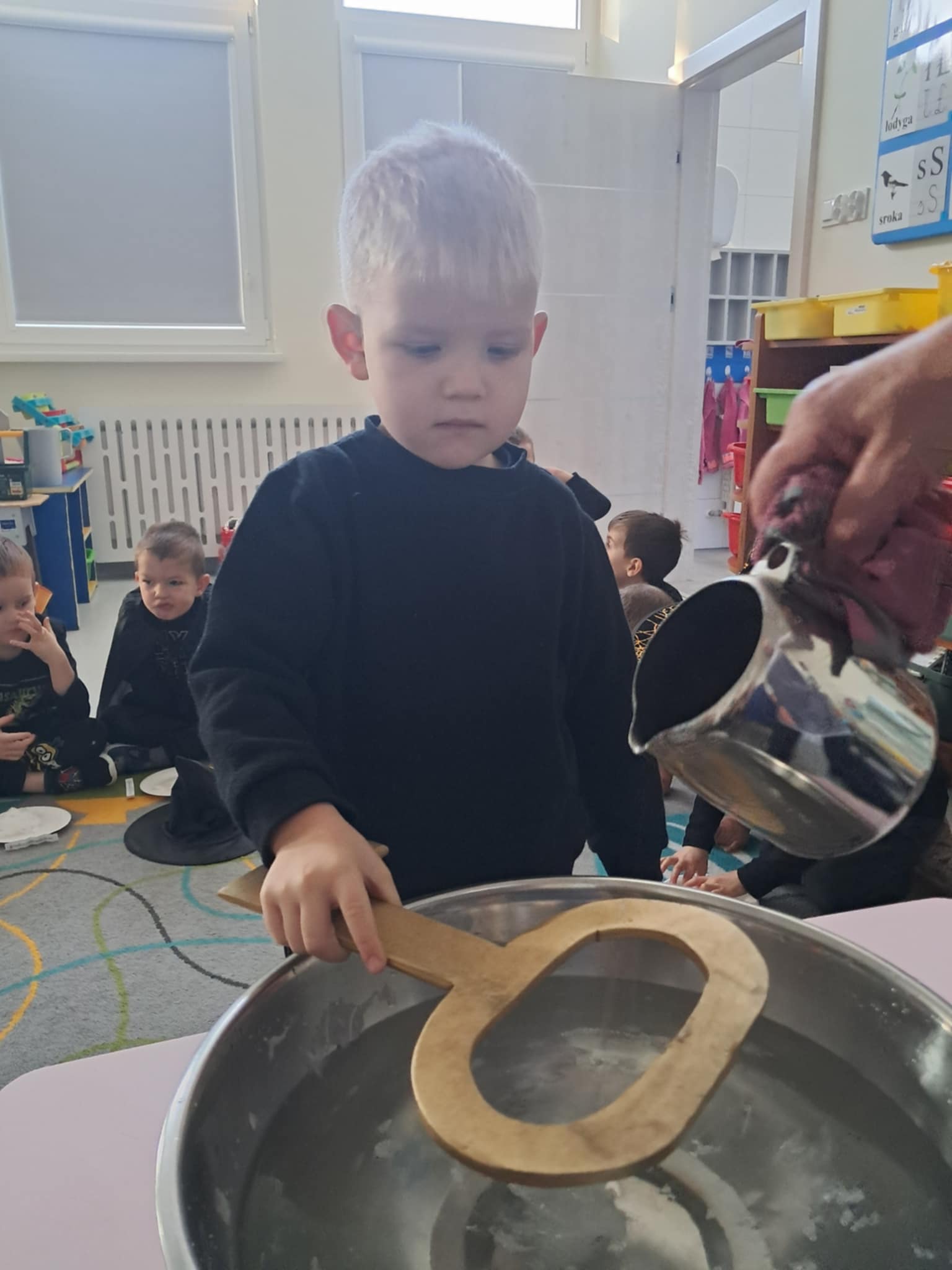 Dzieci brały udział w tradycyjnych wróżbach – lanie wosku przyniosło wiele emocji, a każda figura wywoływała uśmiechy i domysły, co może oznaczać.