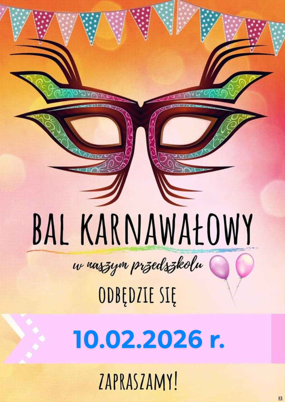 Z radością informujemy, że 10 lutego 2026 roku w naszym przedszkolu odbędzie się Bal Karnawałowy.