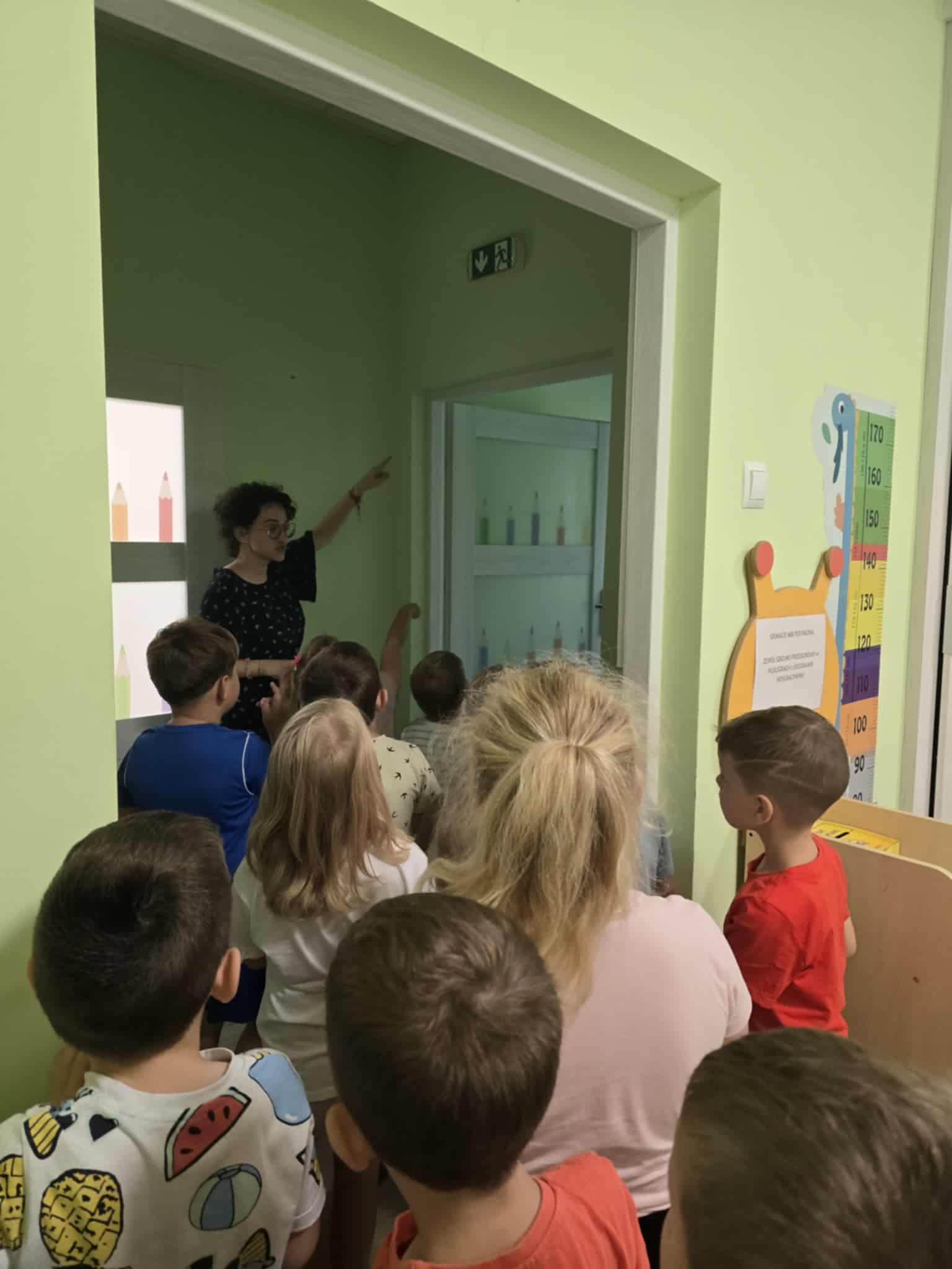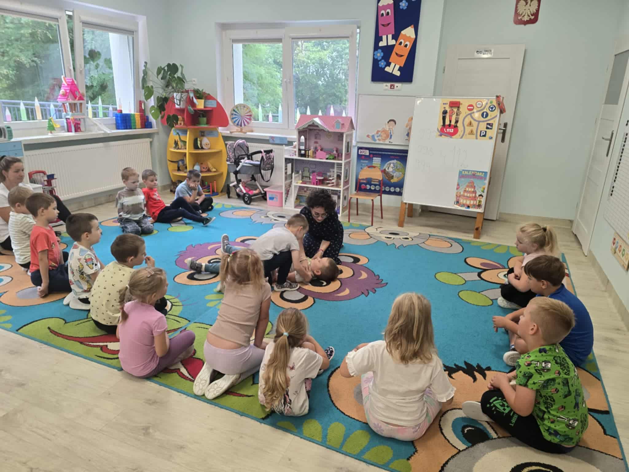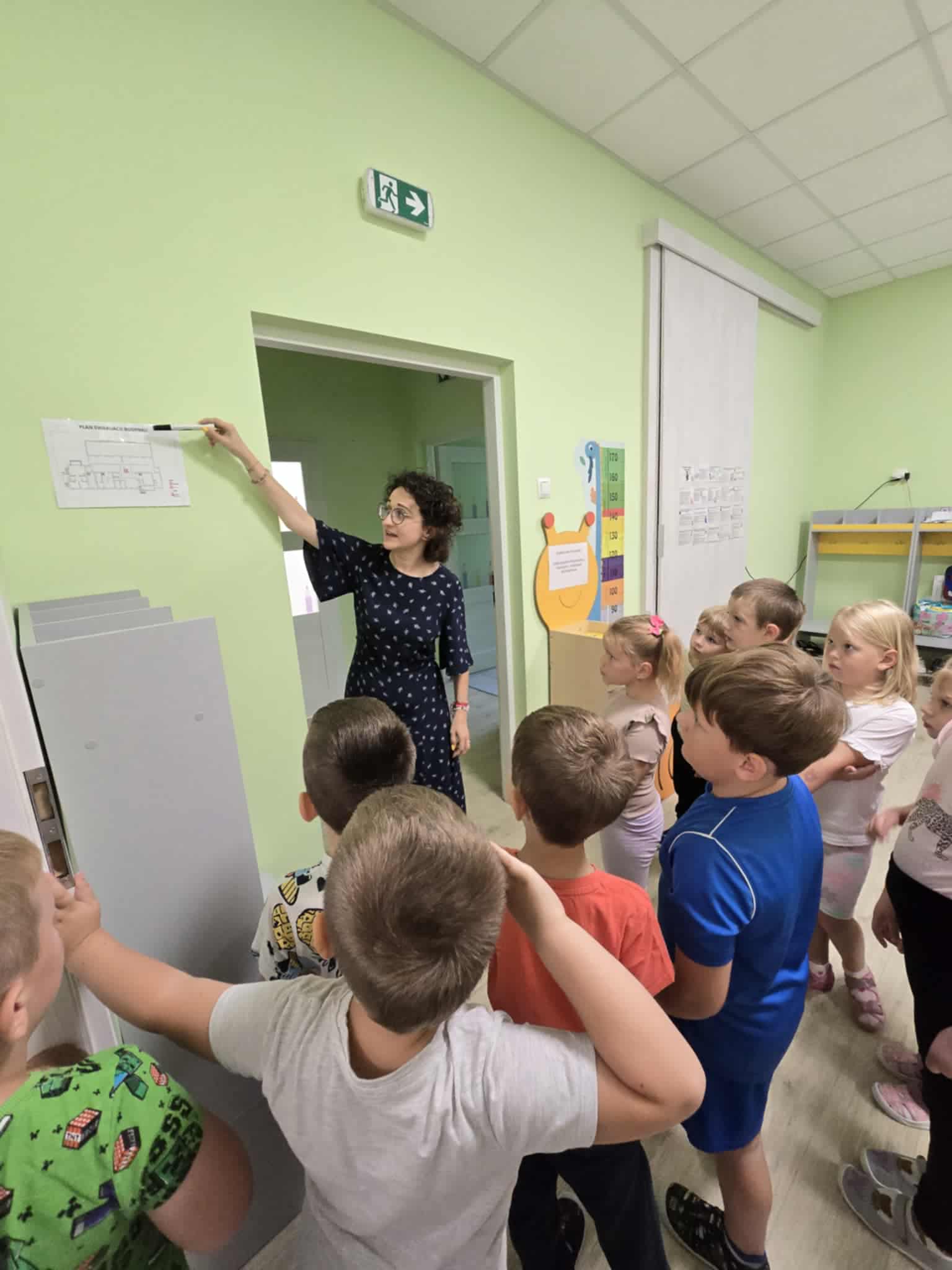 Na zajęciach utrwaliliśmy zasady pierwszej pomocy oraz zapoznaliśmy się z drogą ewakuacyjną w naszym przedszkolu.
