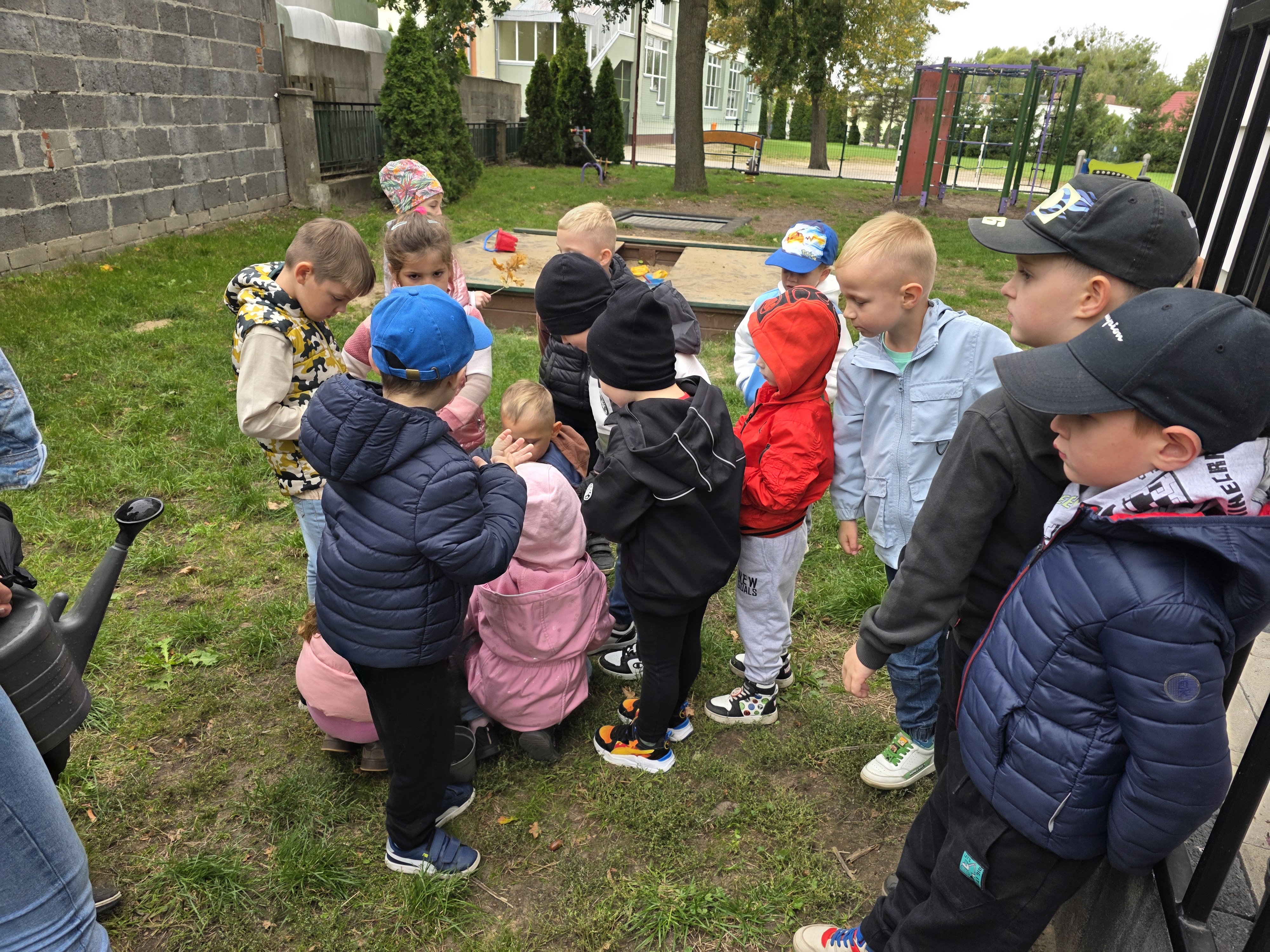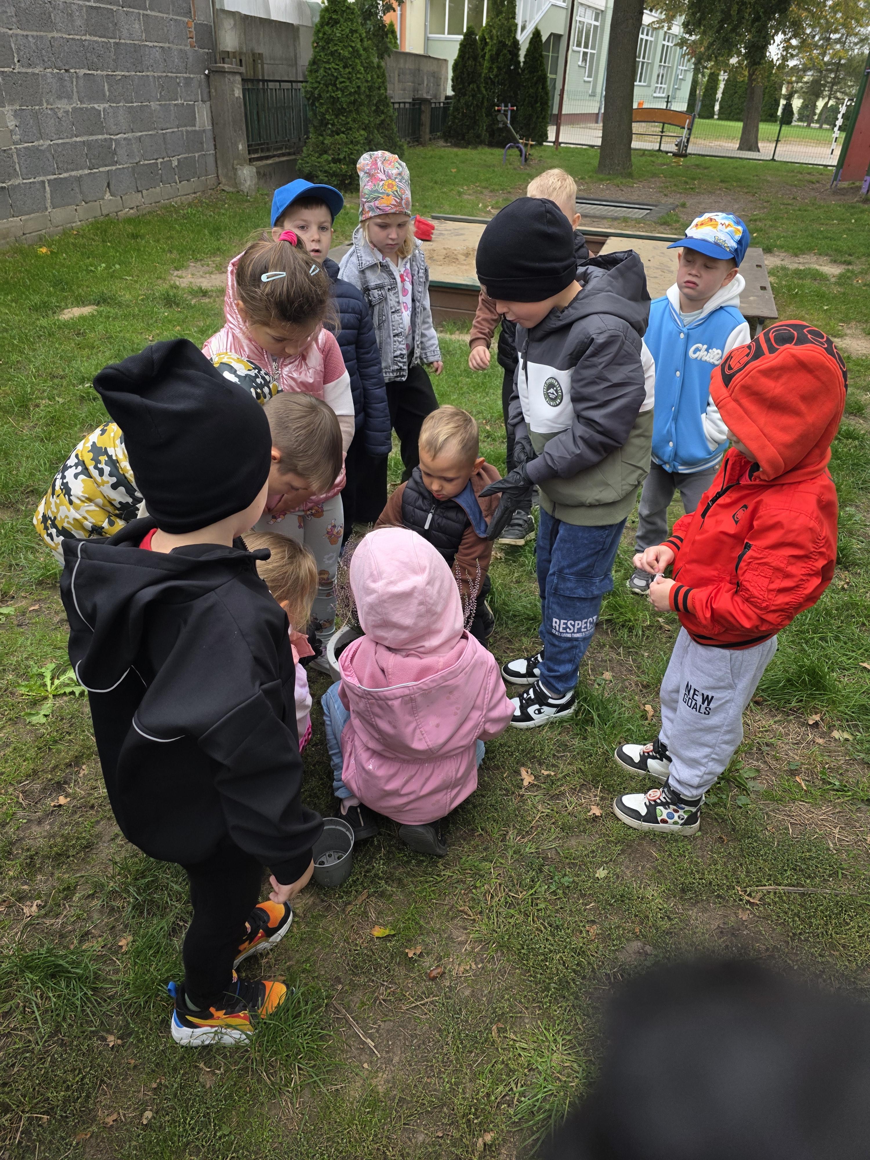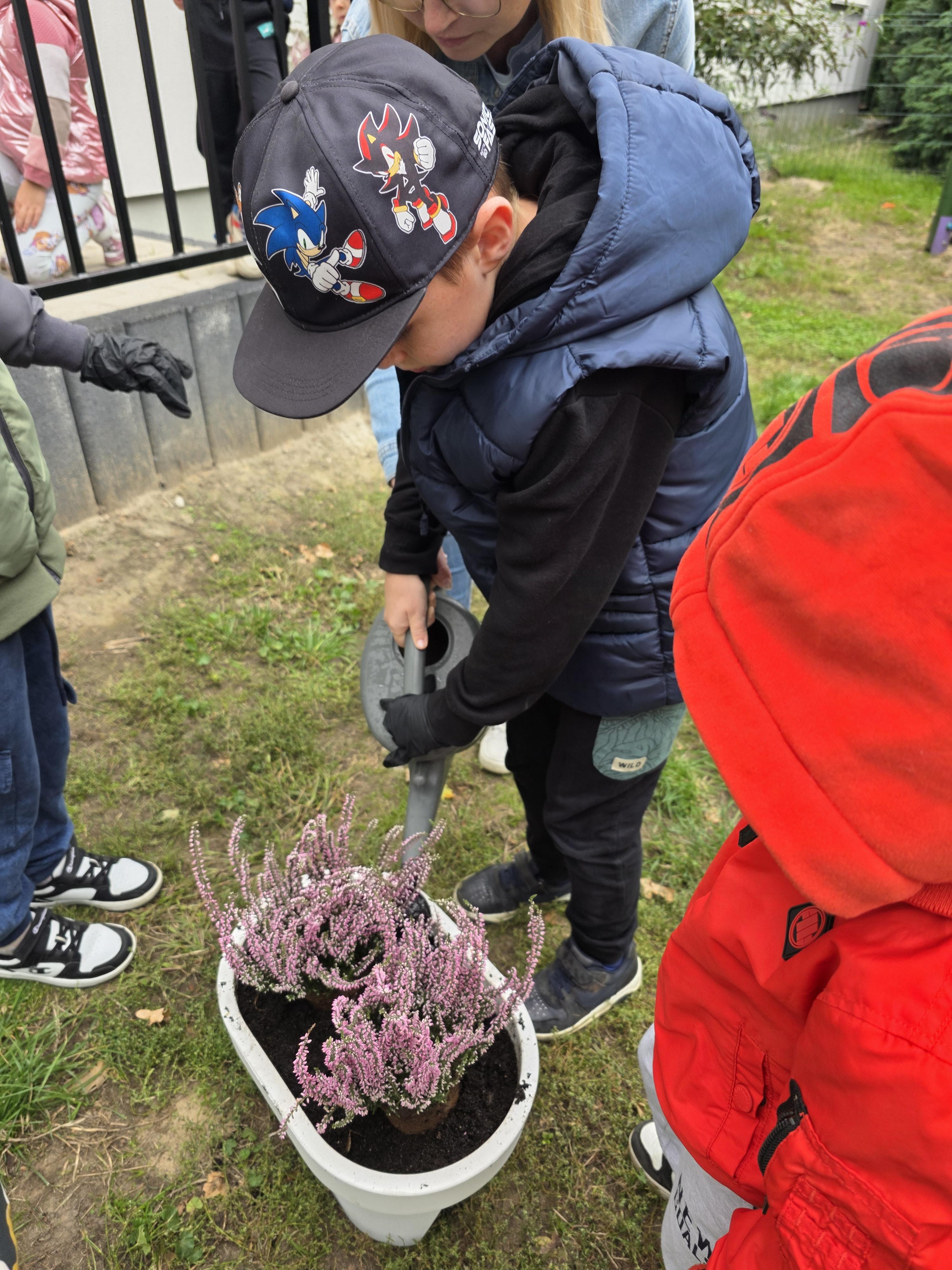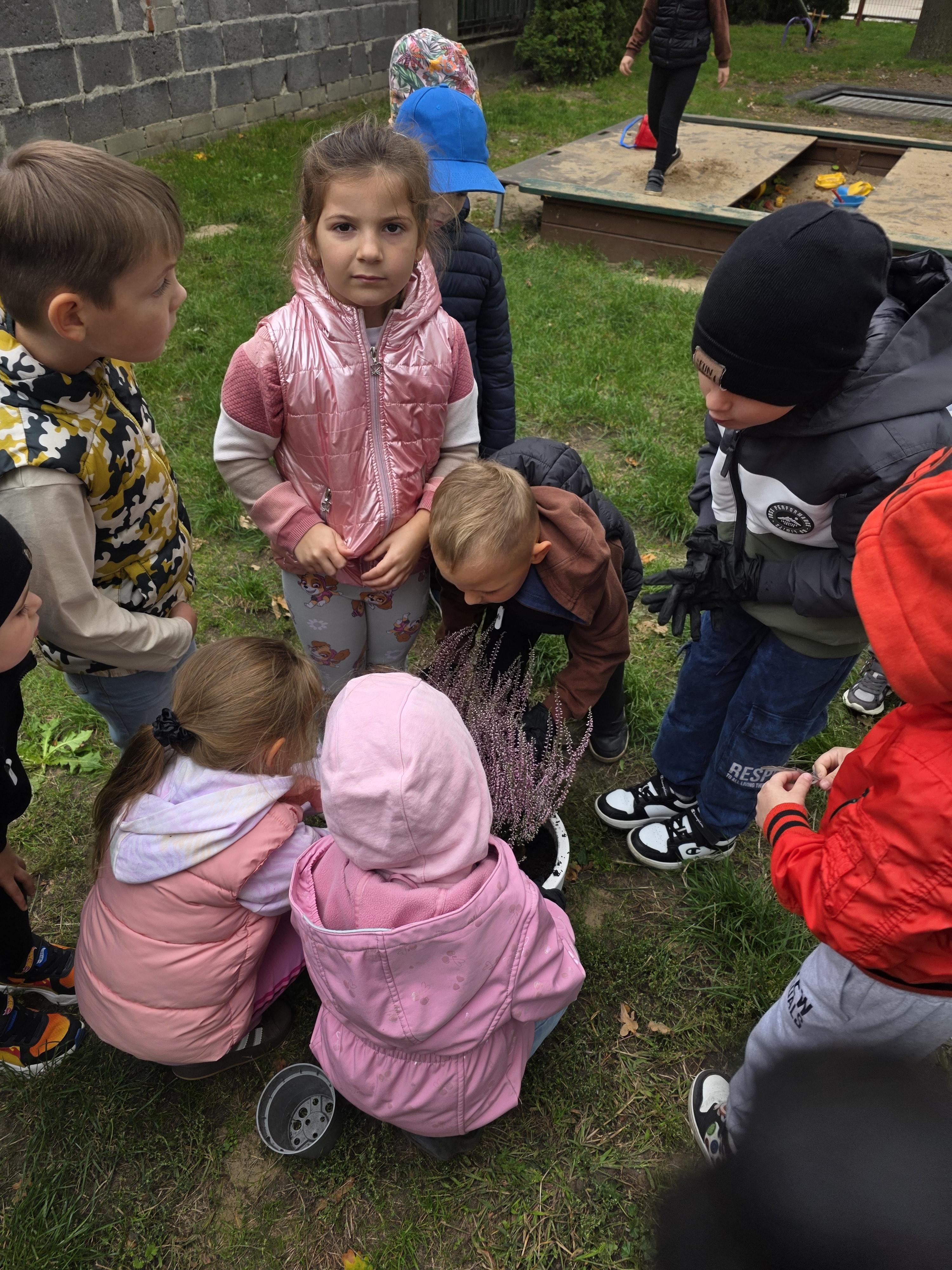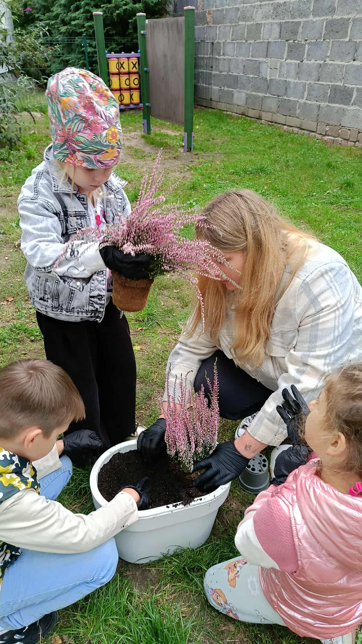 Stokrotki czynnie brały udział w sadzeniu wrzosów, które ozdobiają Nam widok zza okna.