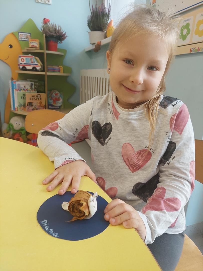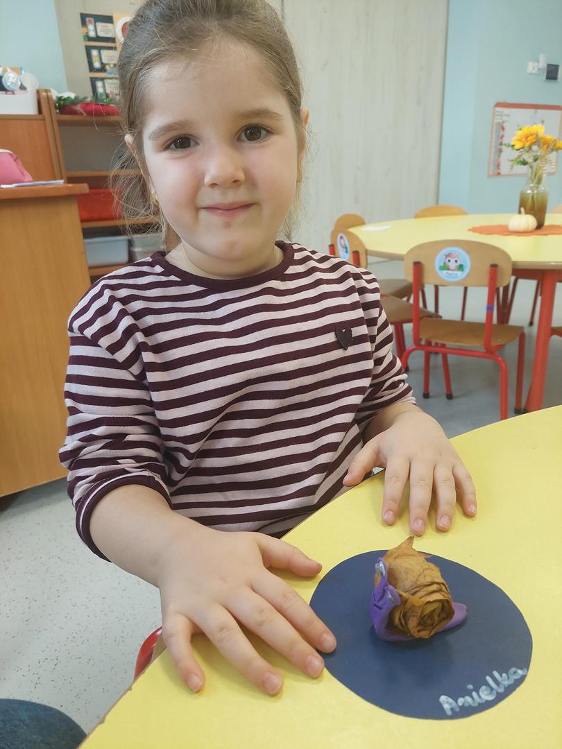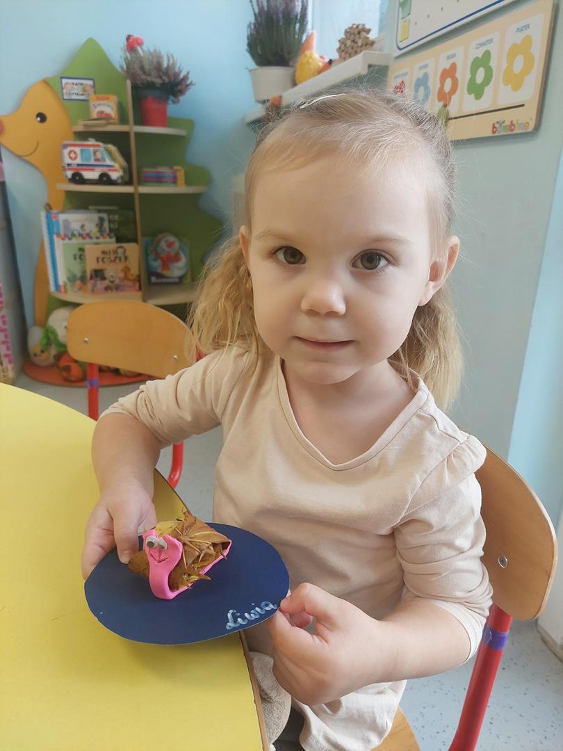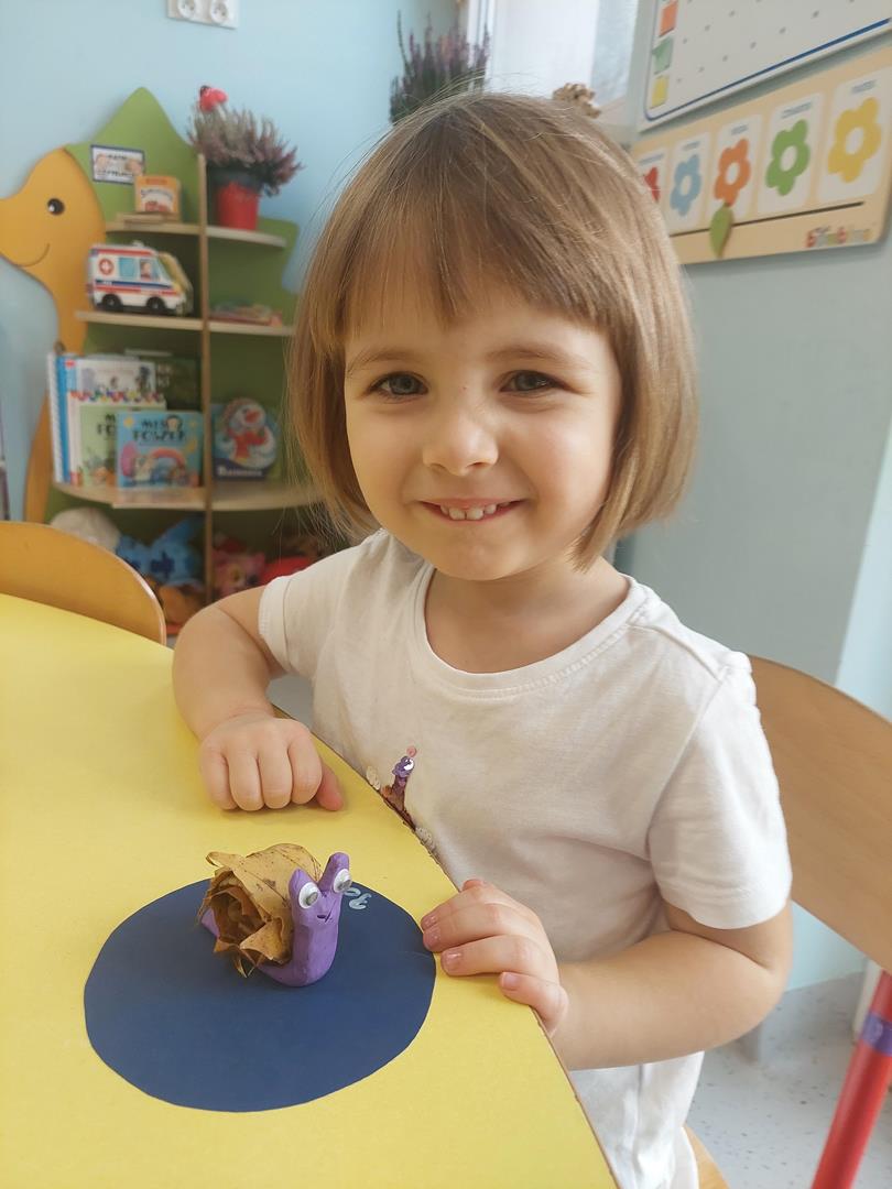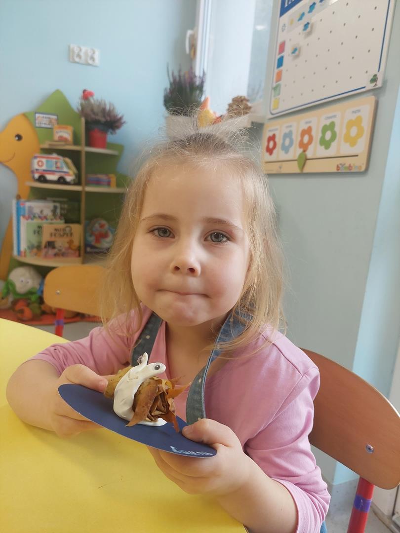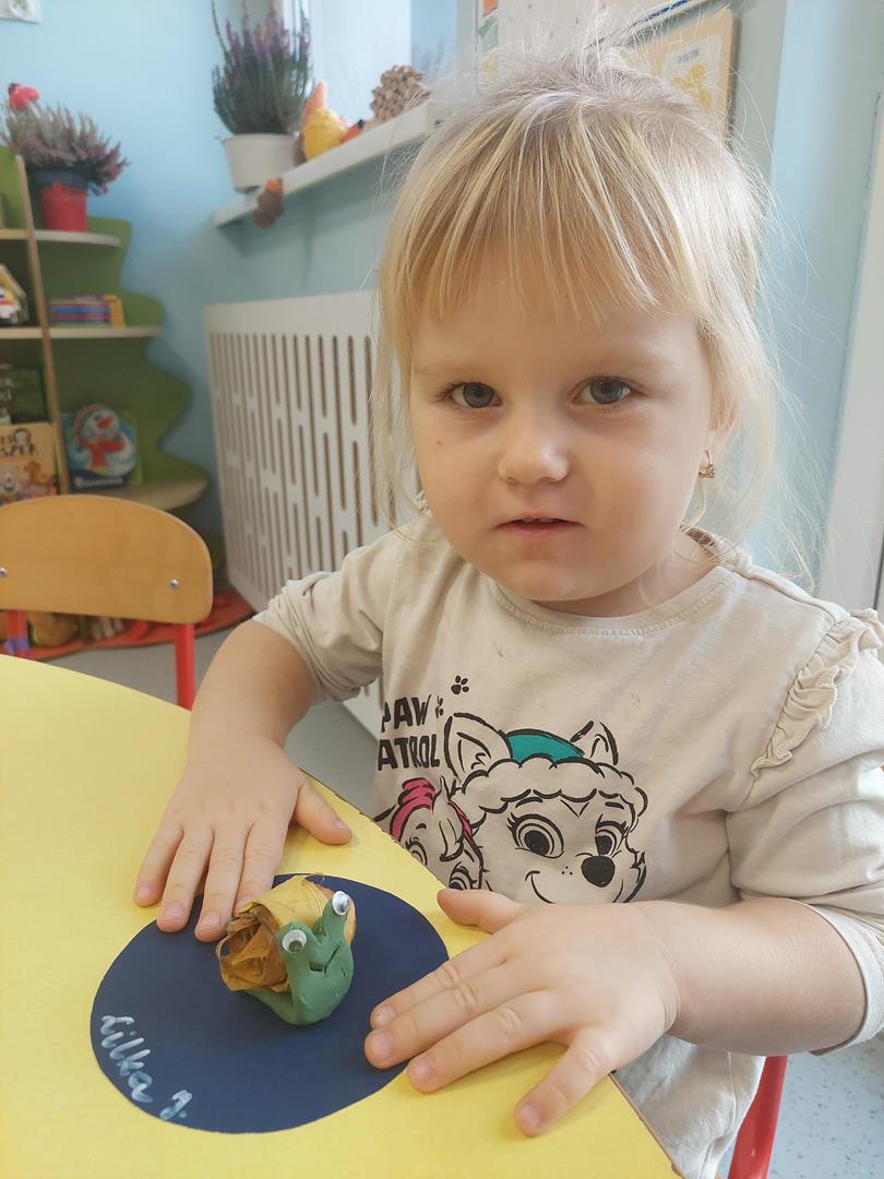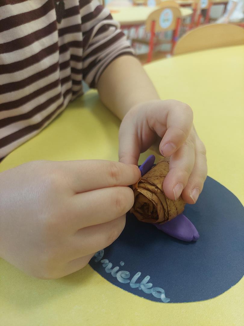 Rozmawiając o Naszej Małej Ojczyźnie wspomnieliśmy o różnych domach. Wykonaliśmy ślimaczki, które noszą swój domek przez cały czas. Do zrobienia domków użyliśmy jesiennych liści, pozbieranych przez dzieci. Sądzimy że są urocze.