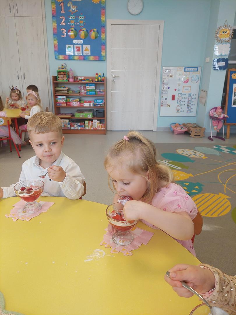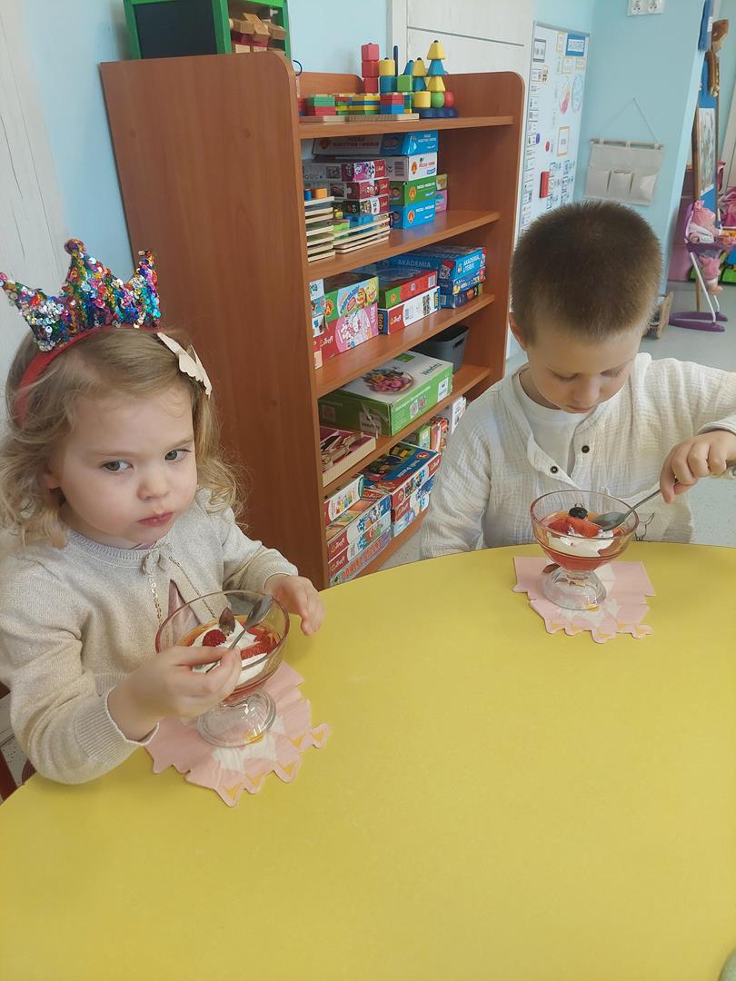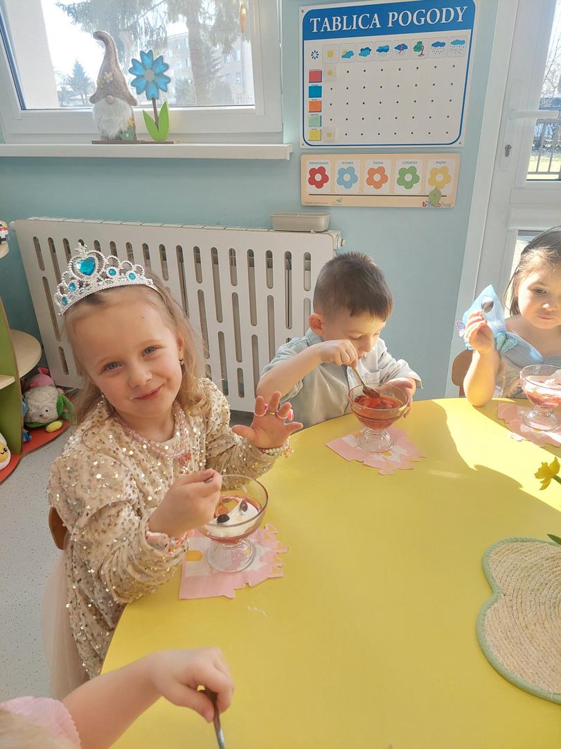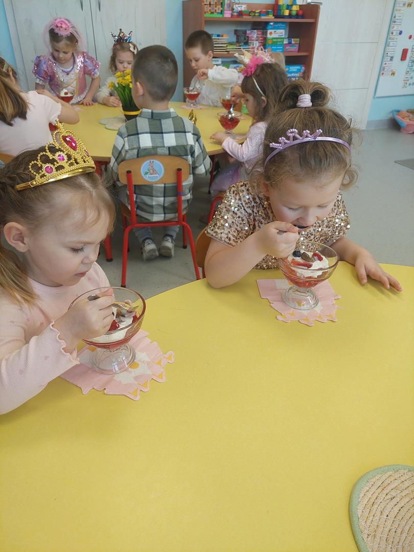 Nie zabrakło również pamiątkowych zdjęć oraz słodkiego poczęstunku. Atmosfera była radosna i pełna uśmiechu. Ten wyjątkowy dzień sprawił wszystkim dzieciom wiele radości i na długo pozostanie w naszej pamięci.
