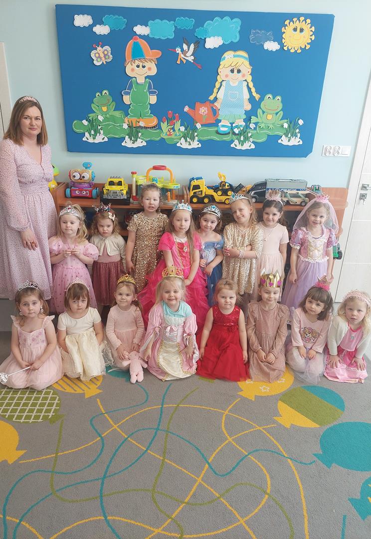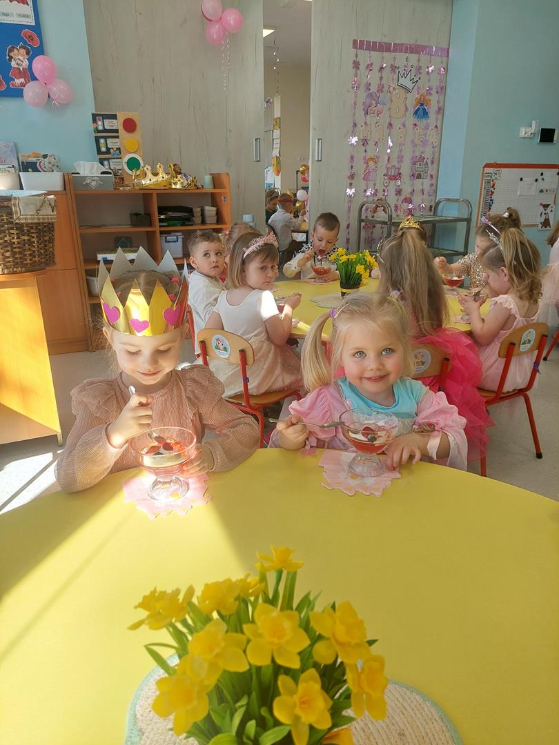 W naszej grupie 3-latków obchodziliśmy Dzień Kobiet w prawdziwie bajkowym, księżniczkowym stylu. Tego dnia dziewczynki mogły poczuć się jak małe księżniczki. Sala została ozdobiona koronami, różowymi balonami oraz brokatowymi dekoracjami.