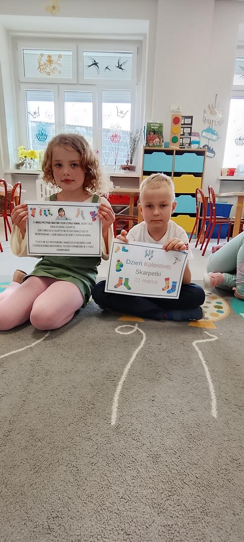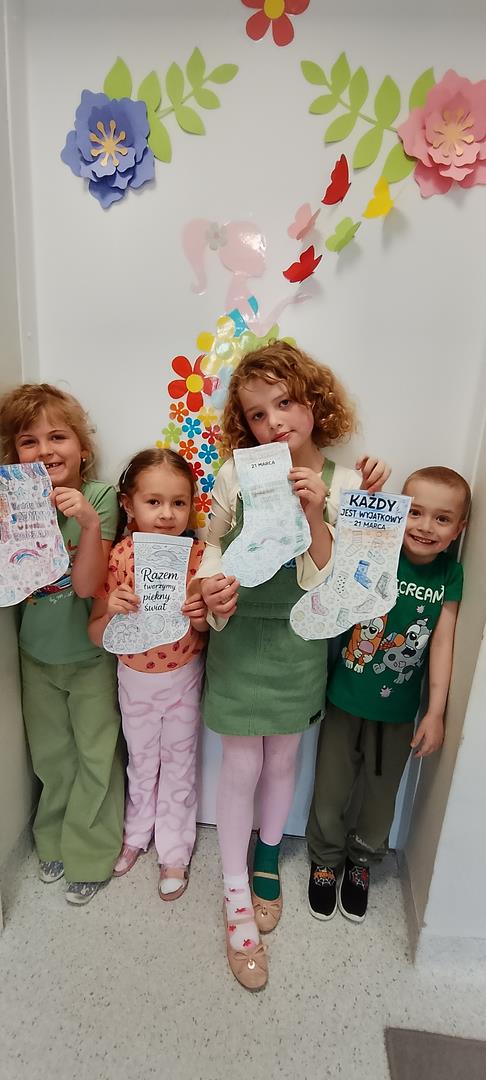 Dzień kolorowej skarpetki to wyjątkowa okazja, by w przedszkolu wprowadzić trochę radości, kreatywności i tolerancji. Świętowanie zaczęliśmy od bajki terapeutycznej i krótkiej rozmowy o znaczeniu różnorodności, tolerancji oraz wyjątkowości każdego z nas. Dzieci prezentowały swoje kolorowe skarpetki. Wykonały piękne laurki, które razem tworzą książeczkę dla kolegi Alexa. Następnie każdy kolorował skarpetki z pięknymi hasłami, że każdy jest wyjątkowy. Skarpetki zdobią naszą salę.