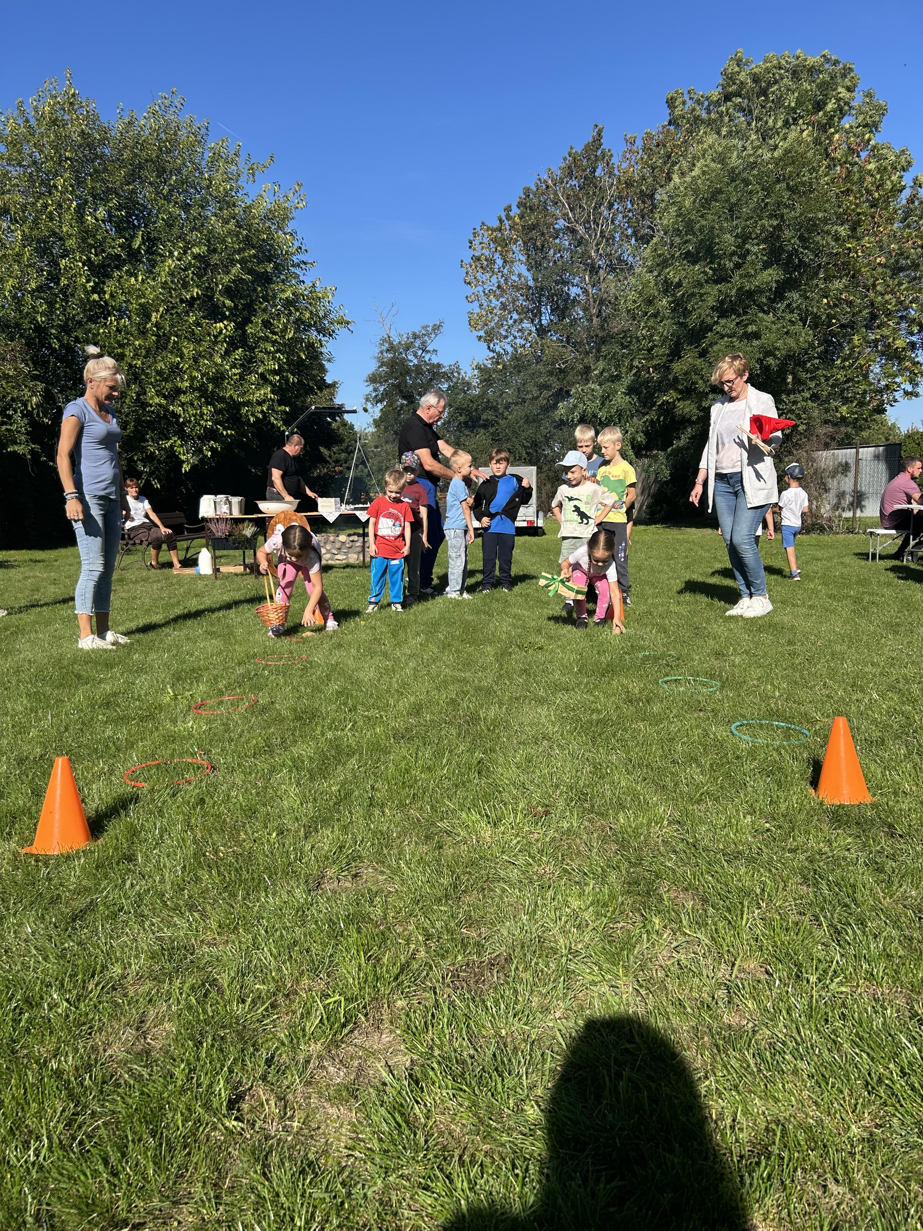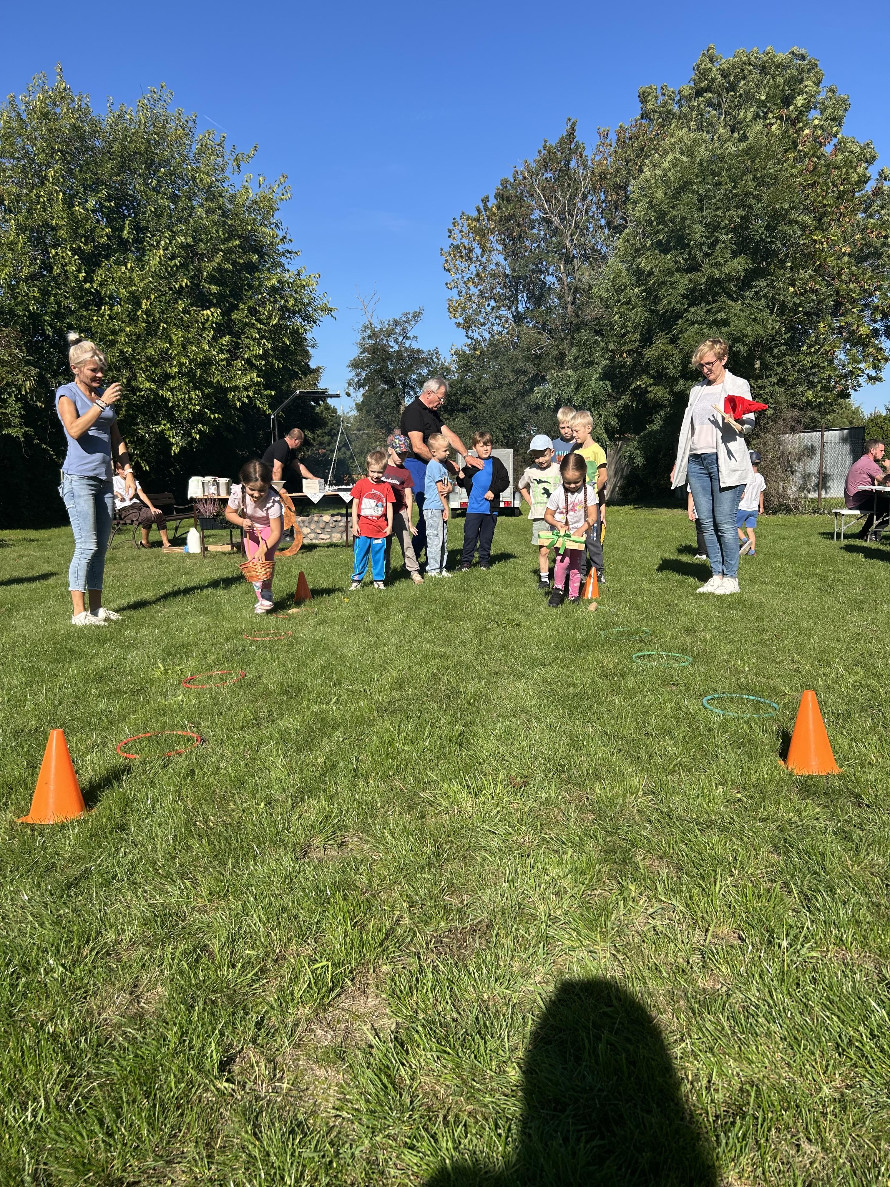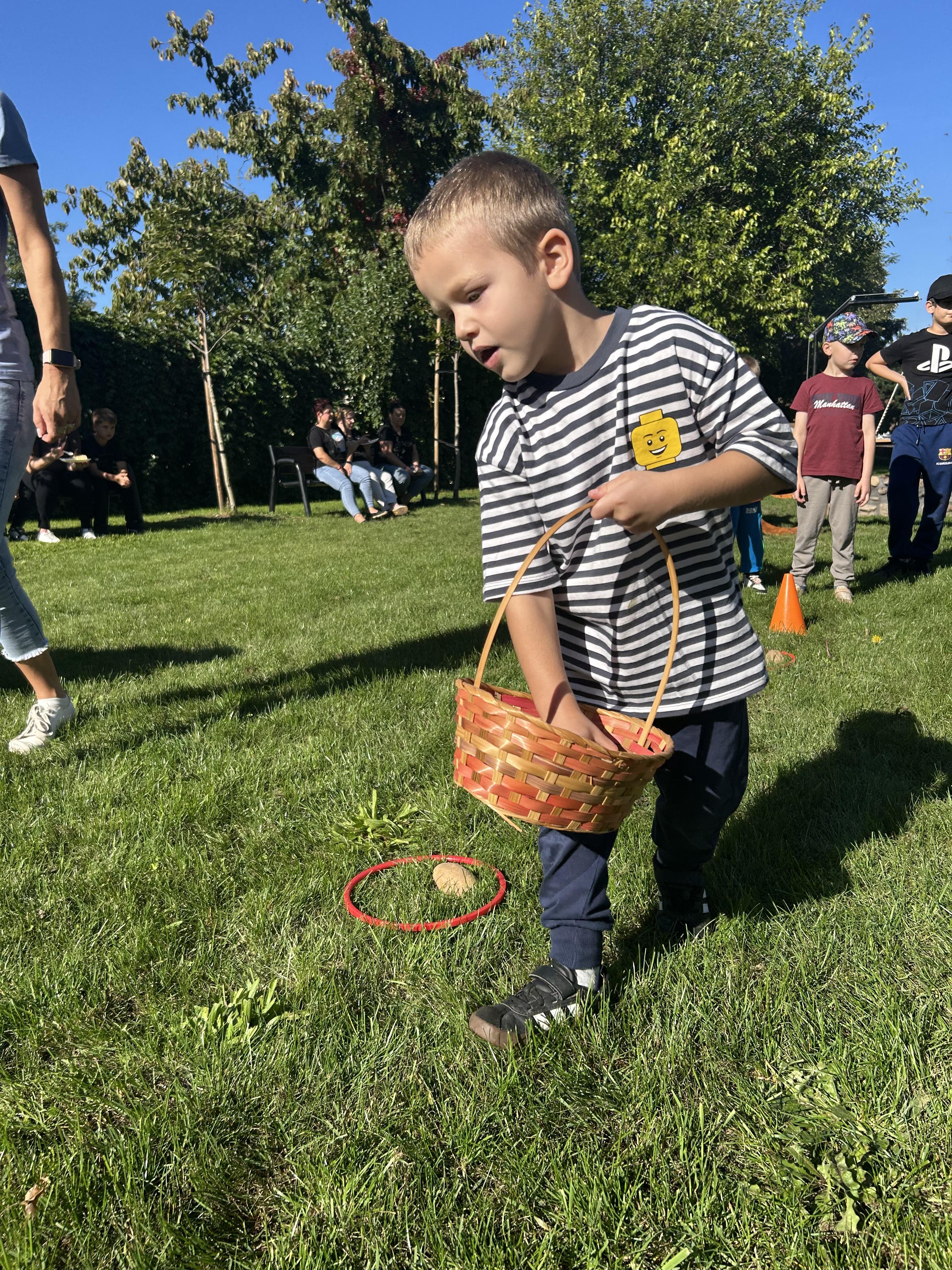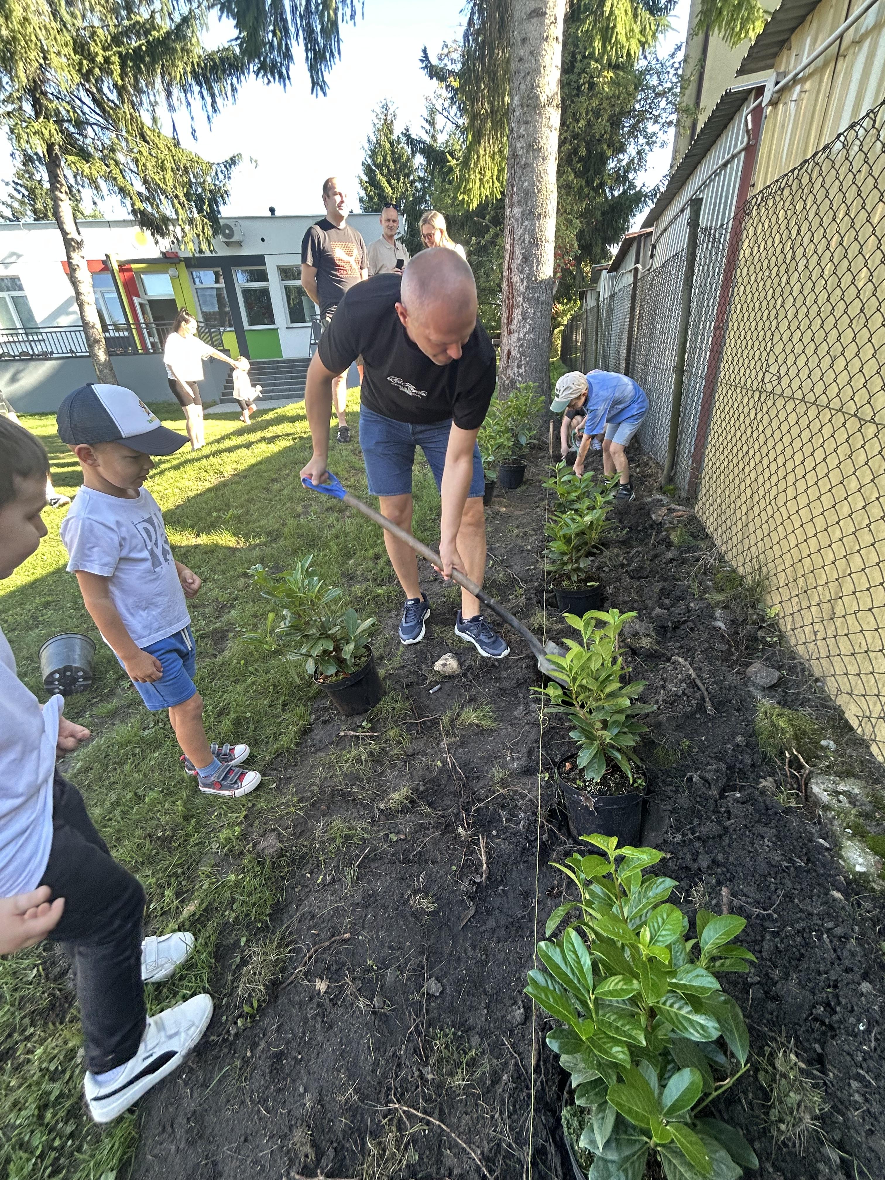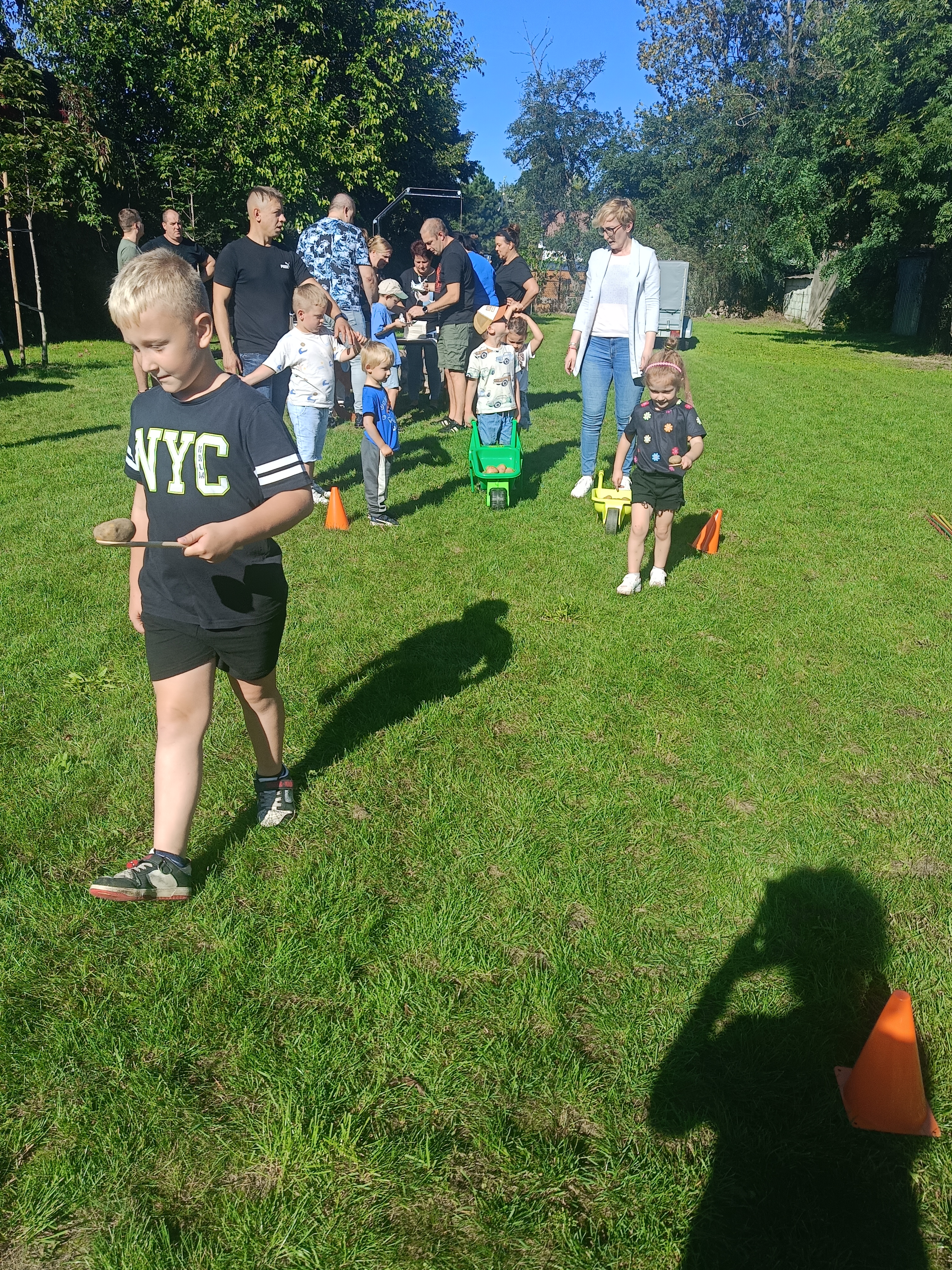 Wspólnie posadziliśmy drzewa, krzewy, zioła i kwiaty. Nie zabrakło też zabaw z głównym bohaterem ziemniakiem- Pyrkiem. Wielką atrakcją okazał się również radiowóz z KPP w Gostyniu, do którego dzieci z chęcią wchodziły i oglądały jego wyposażenie. W trakcie pikniku powstały śmieszne ziemniaczane jeżyki oraz cudowny obraz z pieczątek. Nasi milusińscy wraz ze swoimi rodzinami brali udział w wielu konkurencjach sportowych. Dla nikogo nie zabrakło pysznej zupy pomidoriwej, pieczonych ziemniaczków, lemoniady i ciasta.