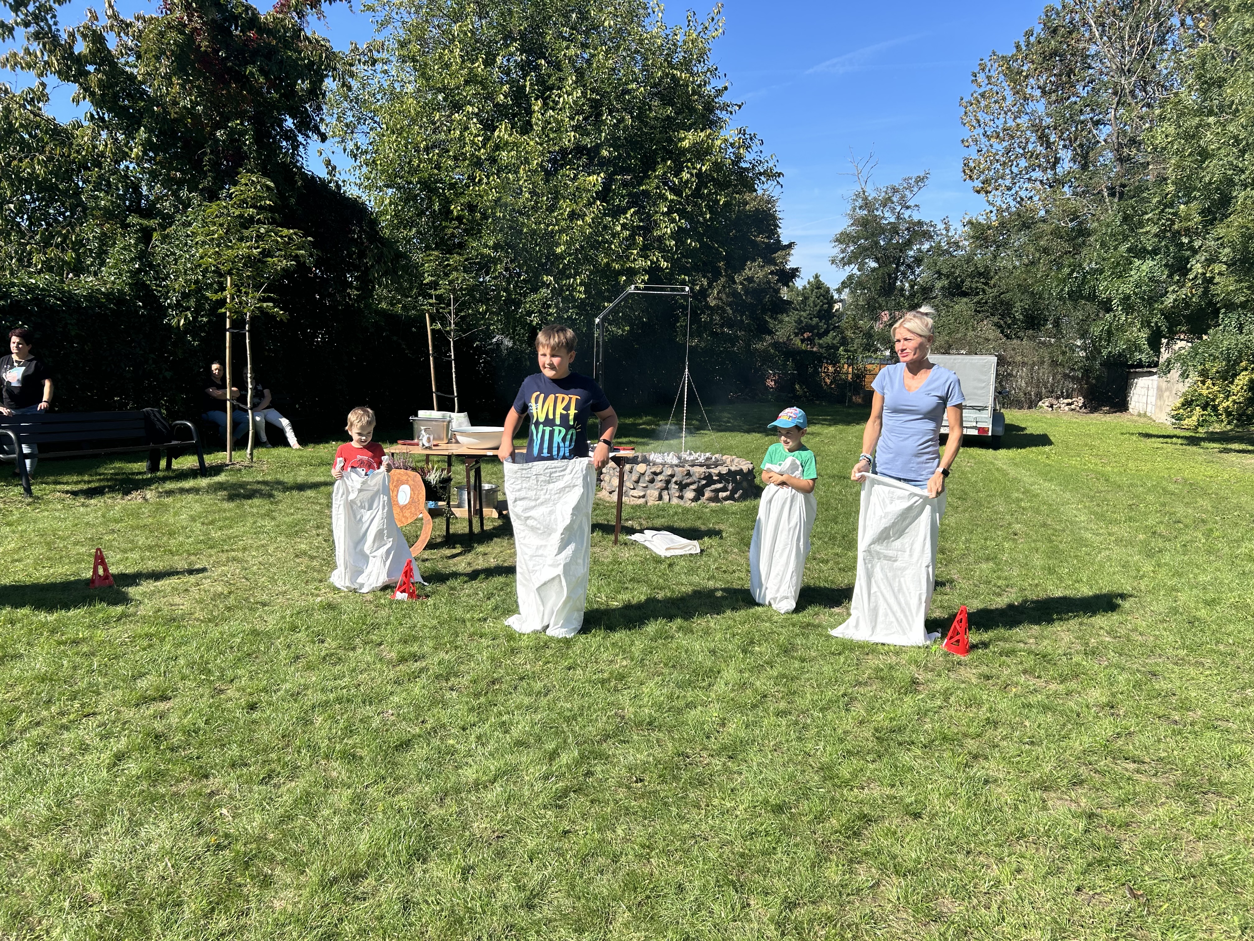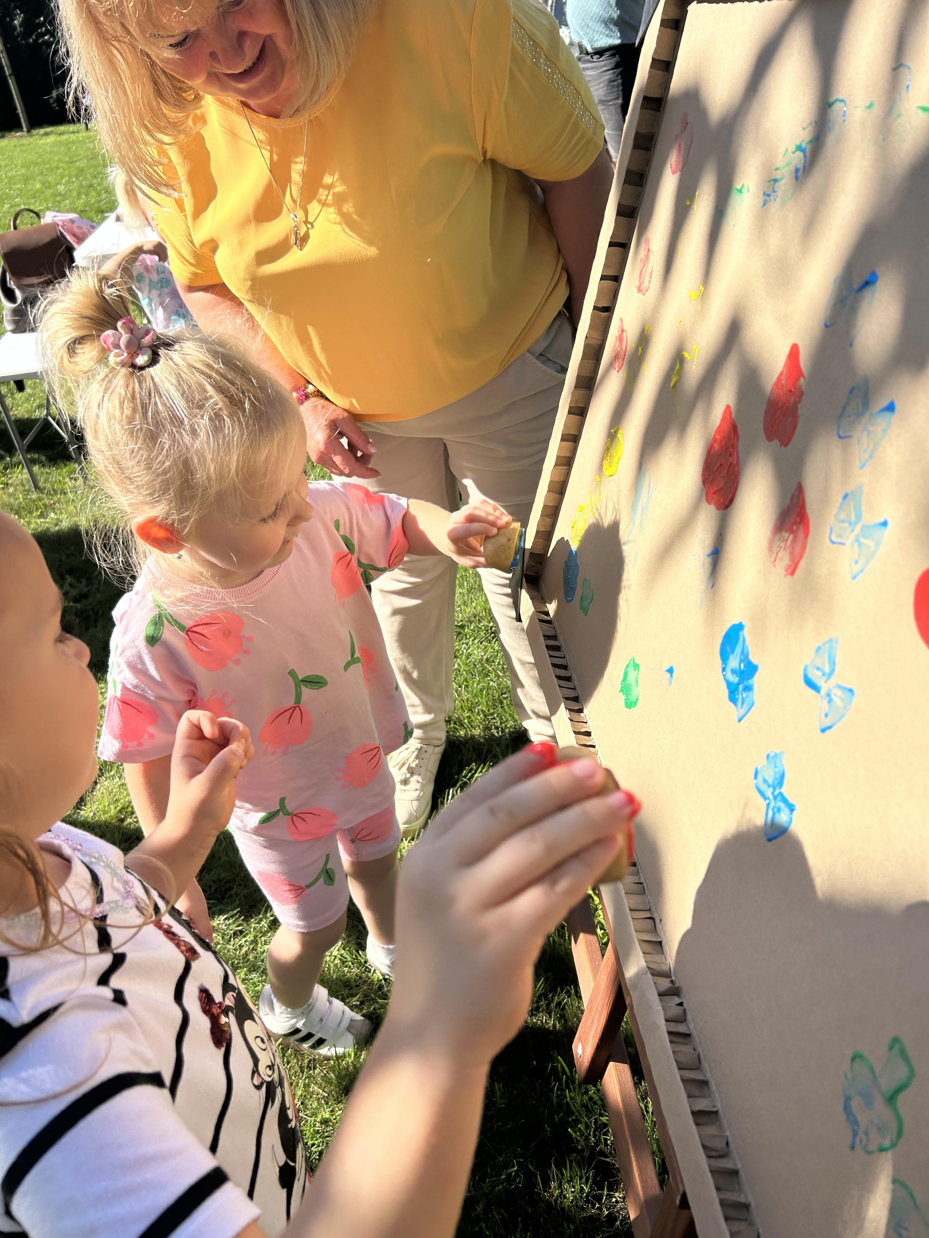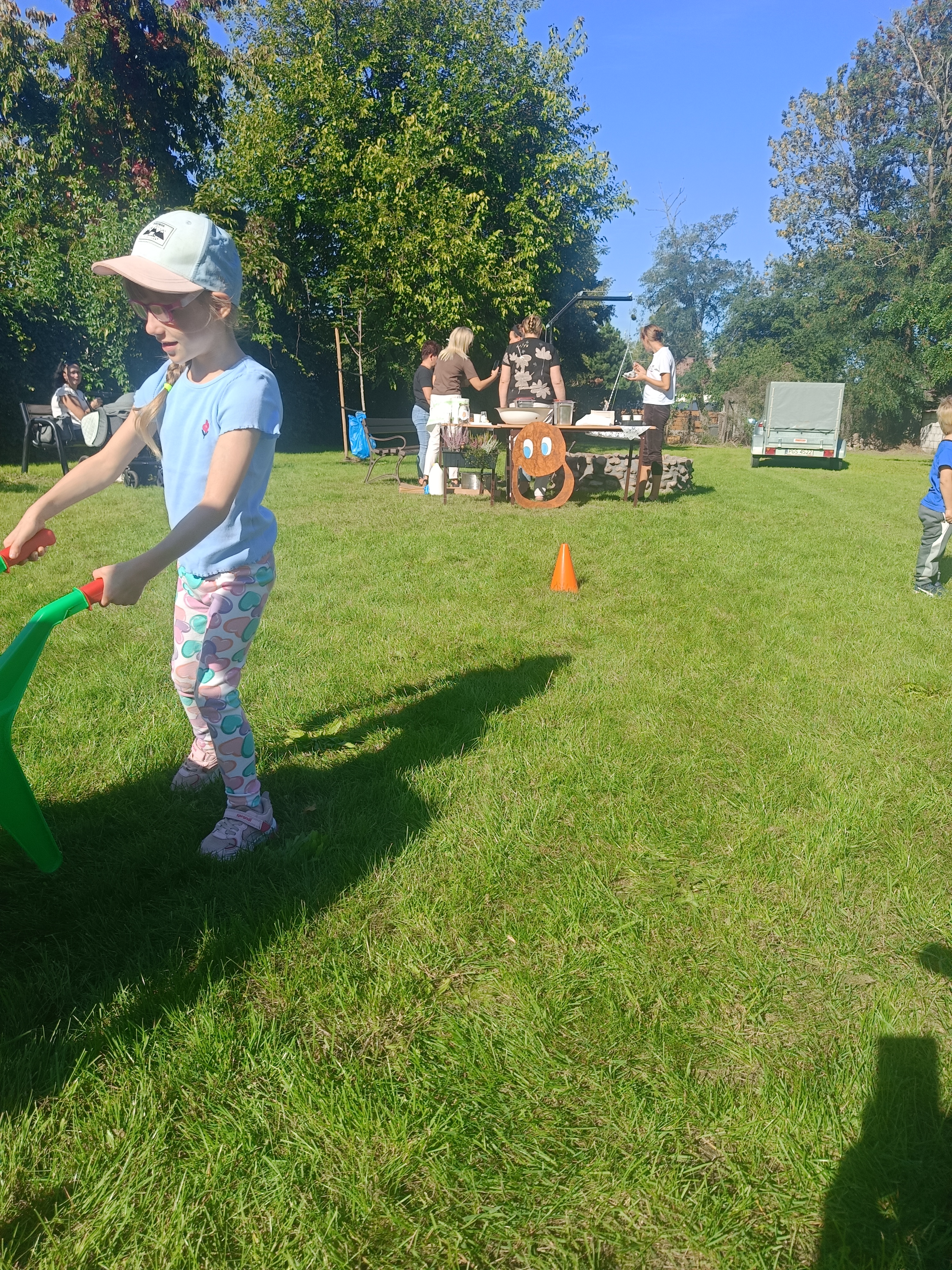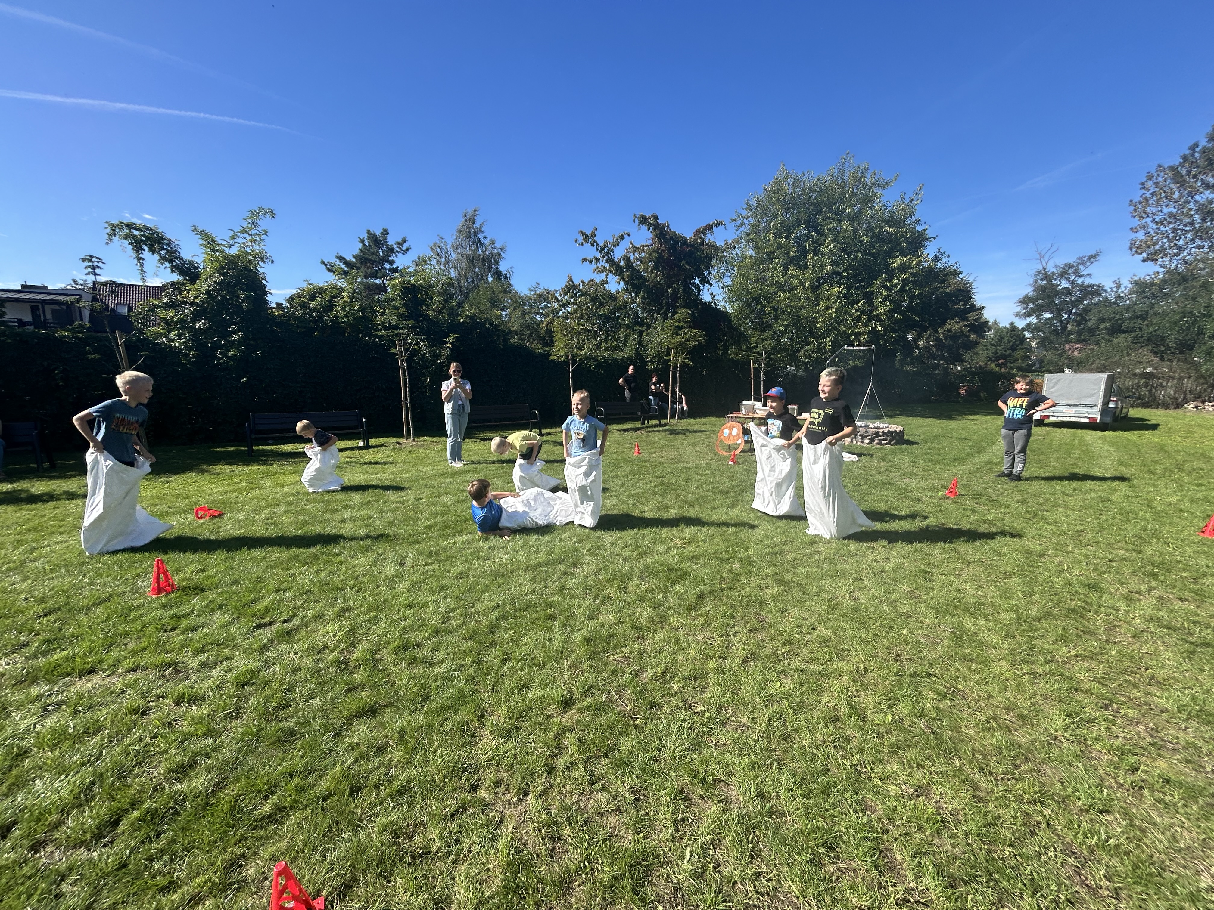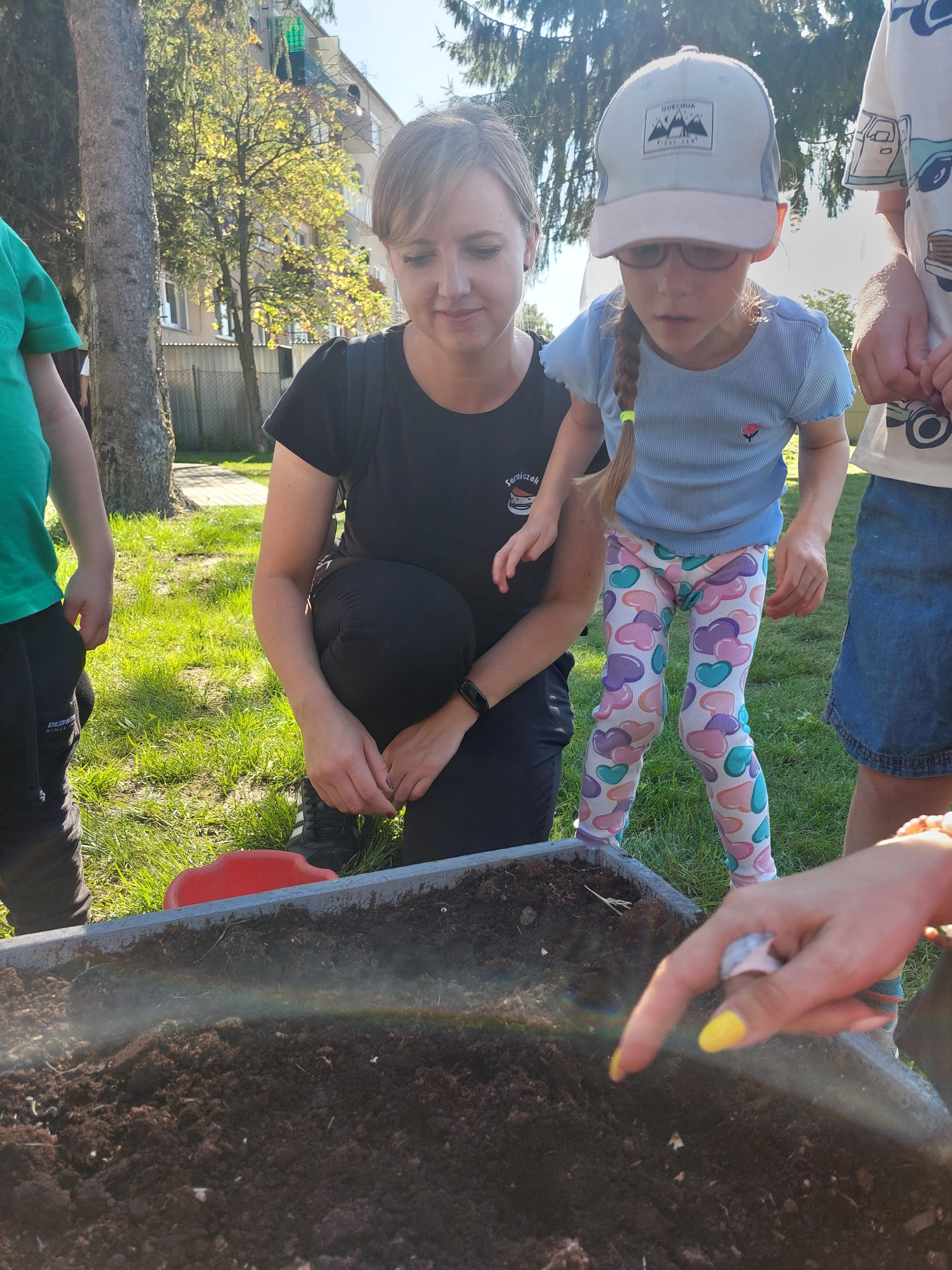 Wspólnie posadziliśmy drzewa, krzewy, zioła i kwiaty. Nie zabrakło też zabaw z głównym bohaterem ziemniakiem- Pyrkiem. Wielką atrakcją okazał się również radiowóz z KPP w Gostyniu, do którego dzieci z chęcią wchodziły i oglądały jego wyposażenie. W trakcie pikniku powstały śmieszne ziemniaczane jeżyki oraz cudowny obraz z pieczątek. Nasi milusińscy wraz ze swoimi rodzinami brali udział w wielu konkurencjach sportowych. Dla nikogo nie zabrakło pysznej zupy pomidoriwej, pieczonych ziemniaczków, lemoniady i ciasta.