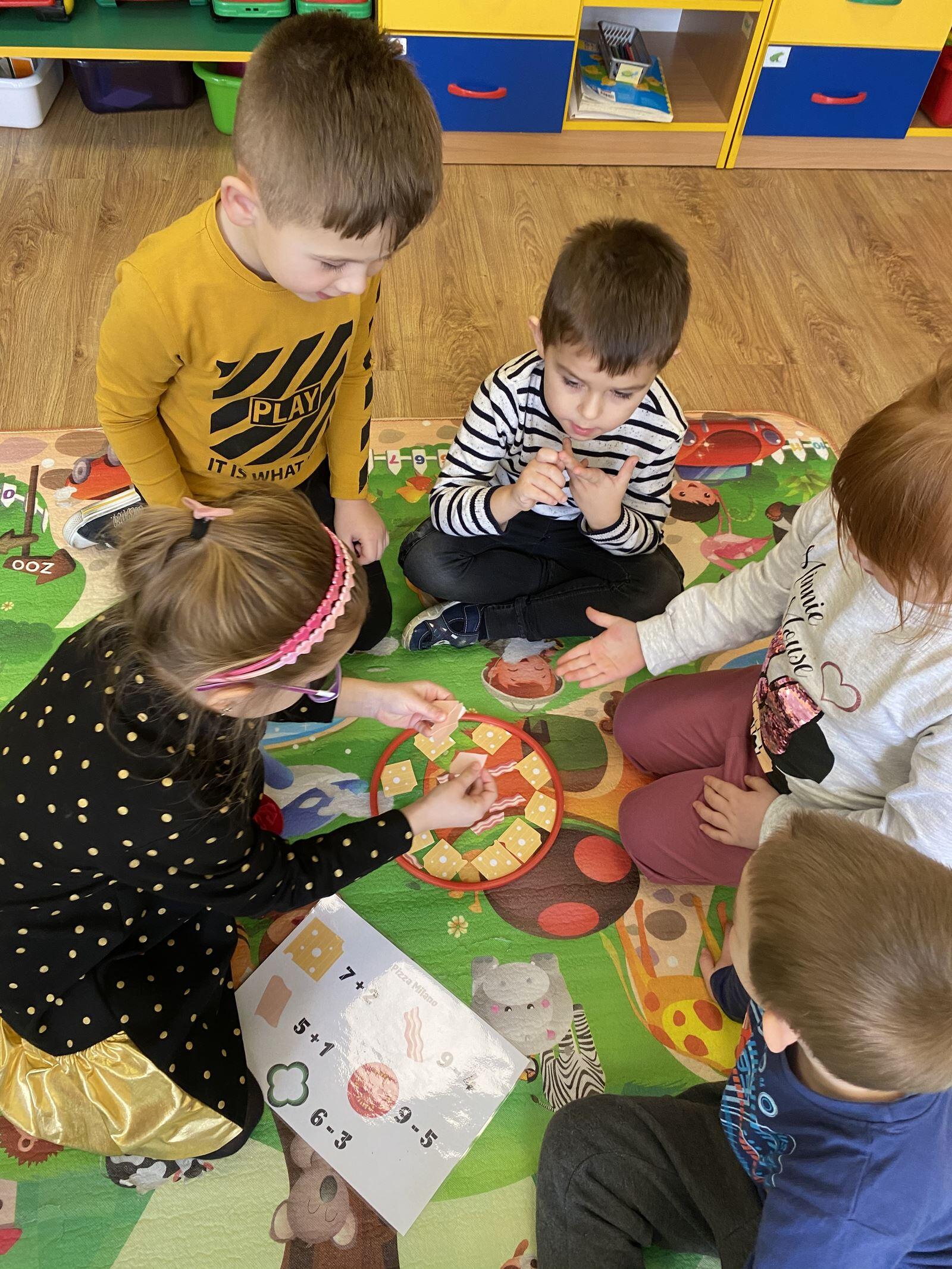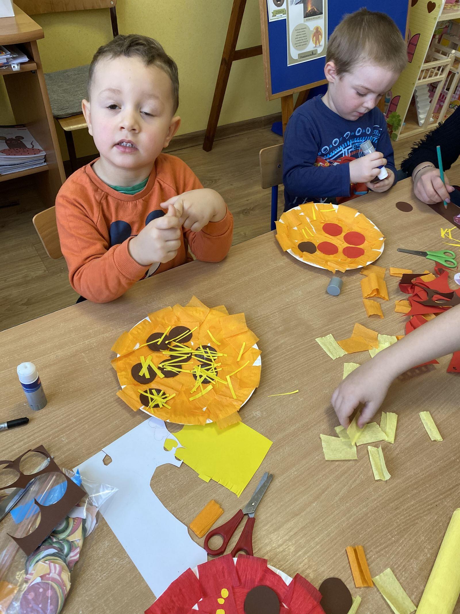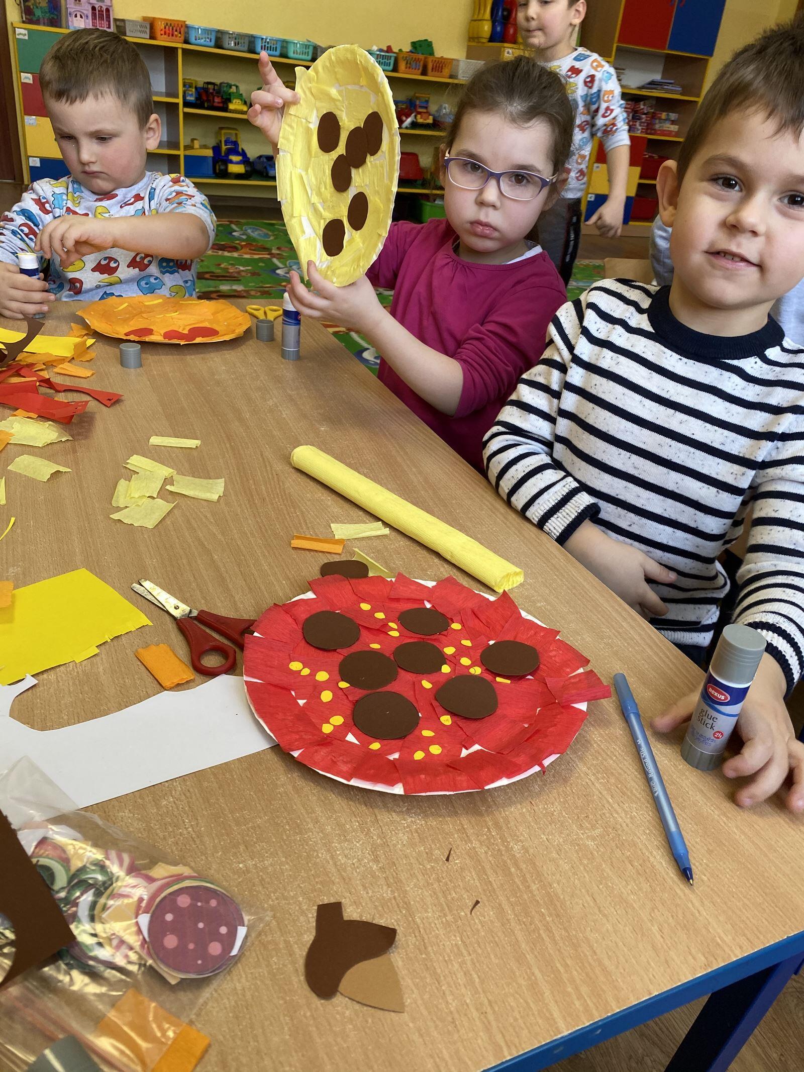 Dnia 9 lutego obchodziliśmy Międzynarodowy Dzień Pizzy. Tego dnia na zajęciach przedszkolaki dowiedziały się jak powstaje pizza, z jakich składników robi się ciasto oraz jakich produktów potrzeba aby je przygotować. Dzieci poznały również historie powstania oraz kraj z którego pochodzi pizza. Przedszkolaki miały także możliwość stworzenia w grupach kolorowych, smakowicie wyglądających placków, używając do tego przeróżnych materiałów oraz stosując różne techniki plastyczne. Pomimo, iż pizze były papierowe, wyglądały przepysznie!