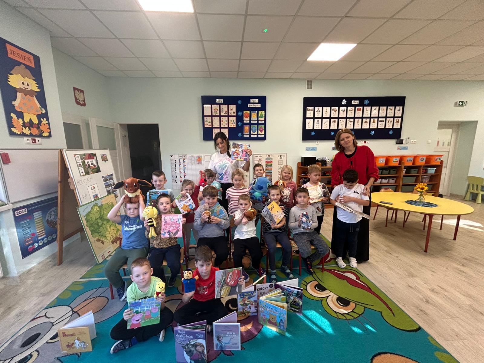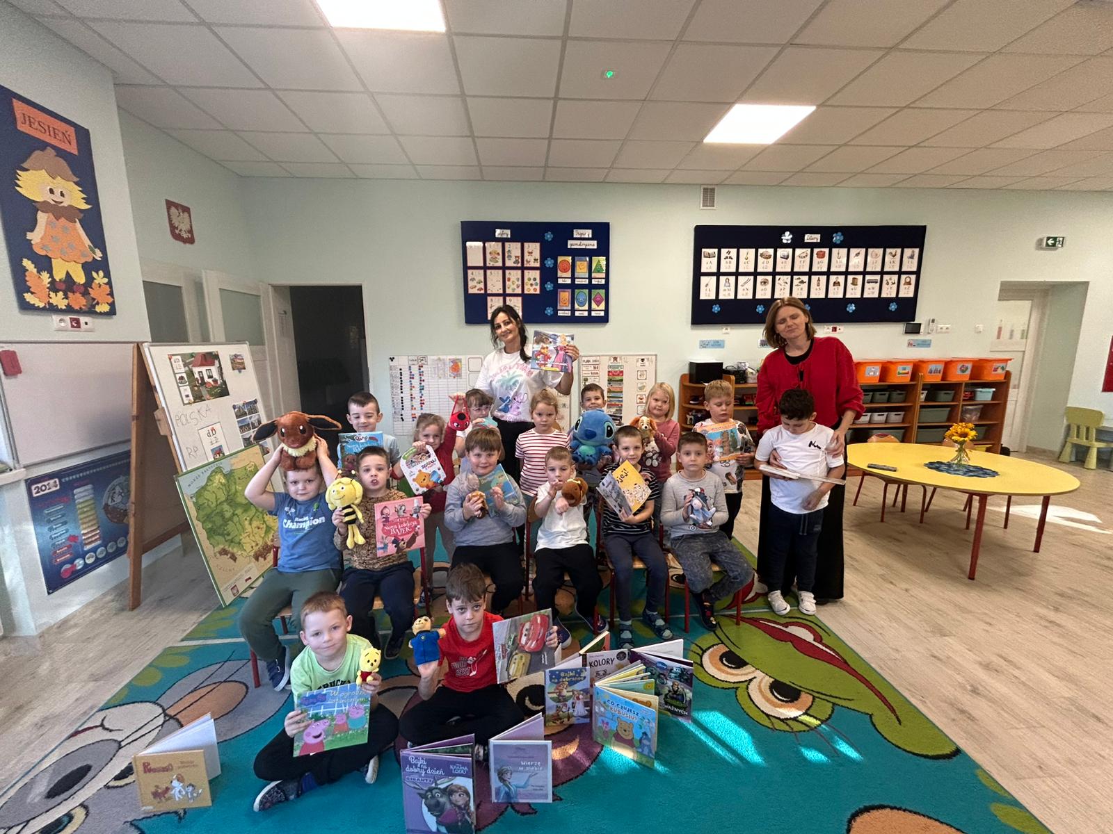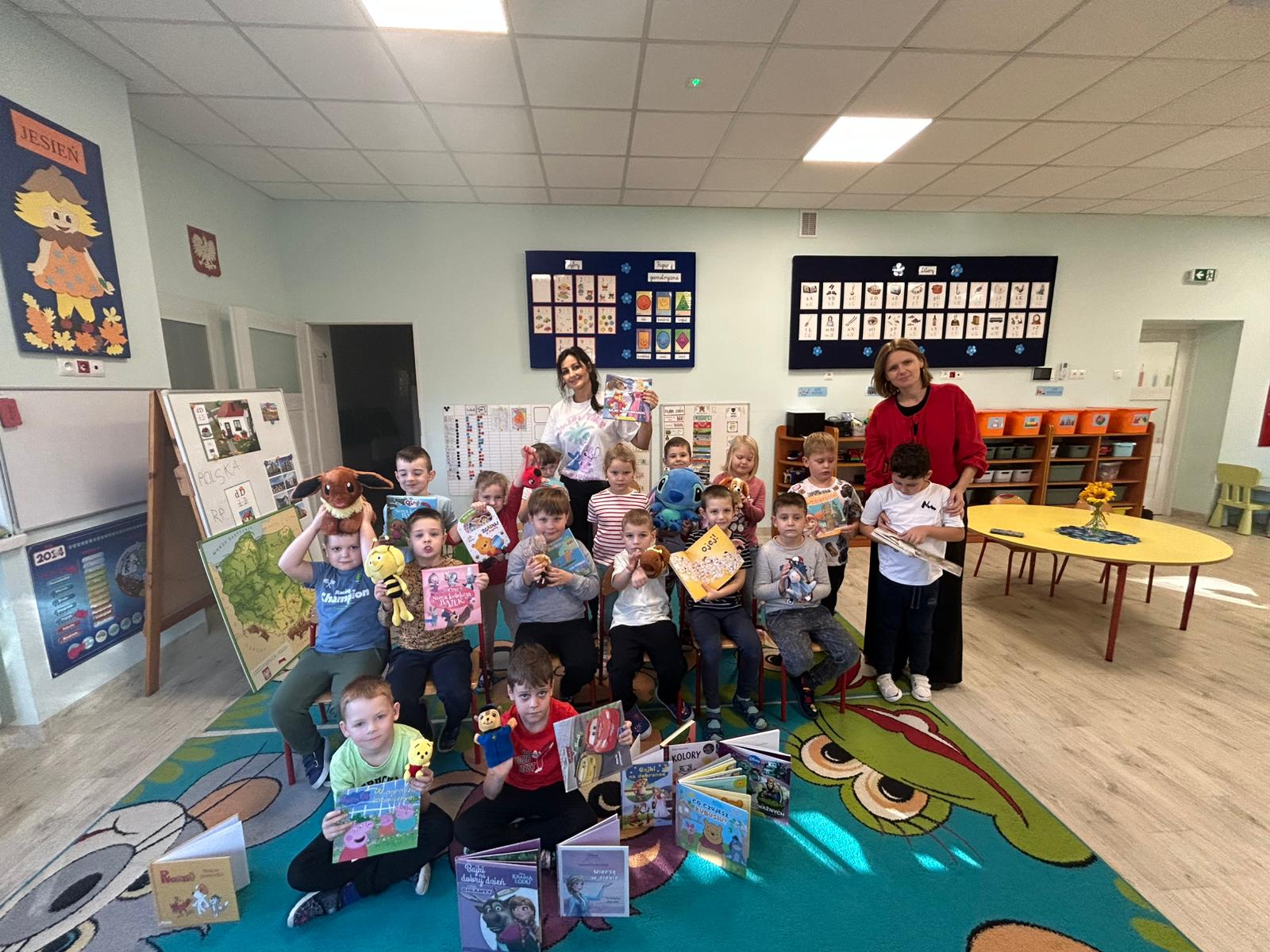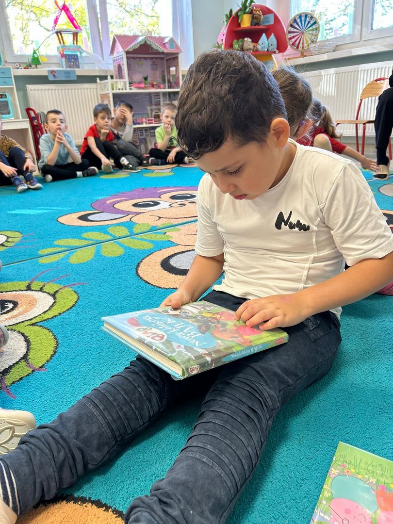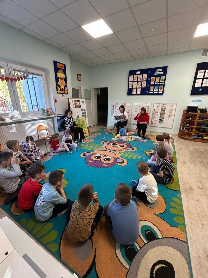 Naszą grupę odwiedziły dziś Panie pracujące w bibliotece. Przygotowały dla dzieci ciekawe zagadki, zabawy oraz rozmowy na temat bajek i ulubionych bohaterów książkowych. Przedszkolaki aktywnie uczestniczyły w spotkaniu, chętnie odpowiadały na pytania i dzieliły się swoimi spostrzeżeniami. Dzieci spędziły miło czas, a wizyta zachęciła je do sięgania po książki i poznawania nowych bajkowych historii.