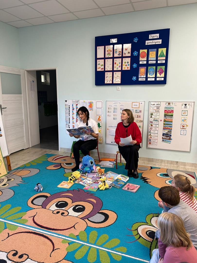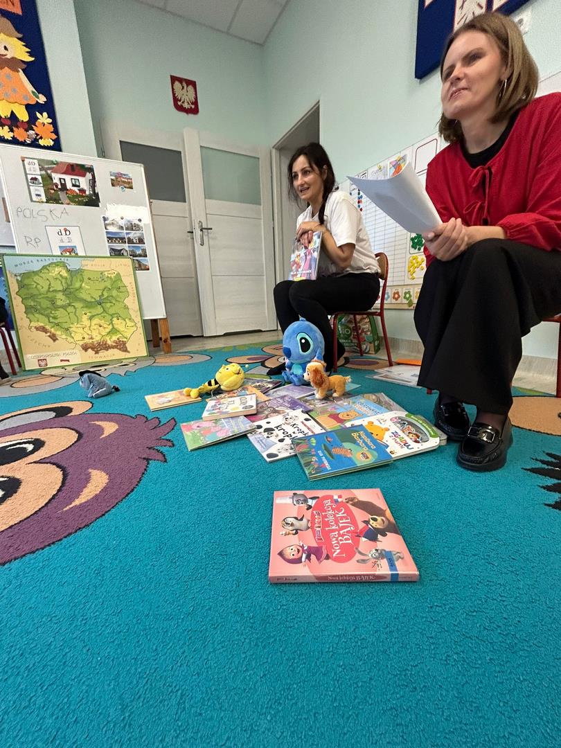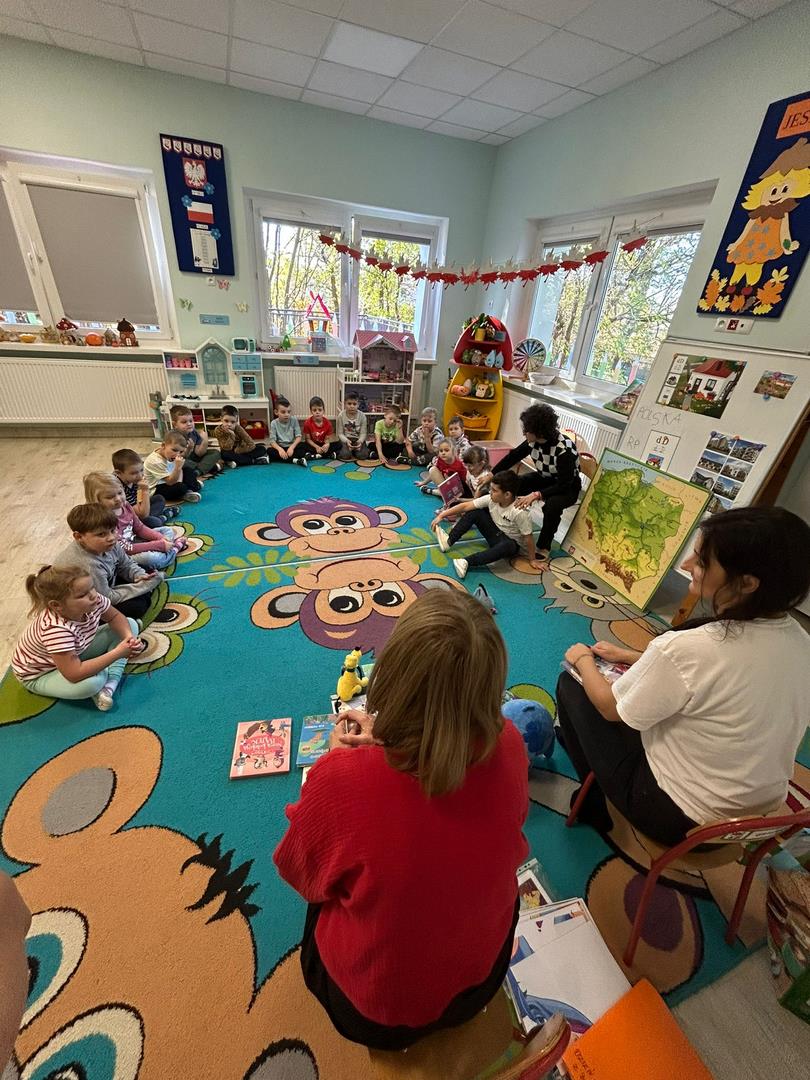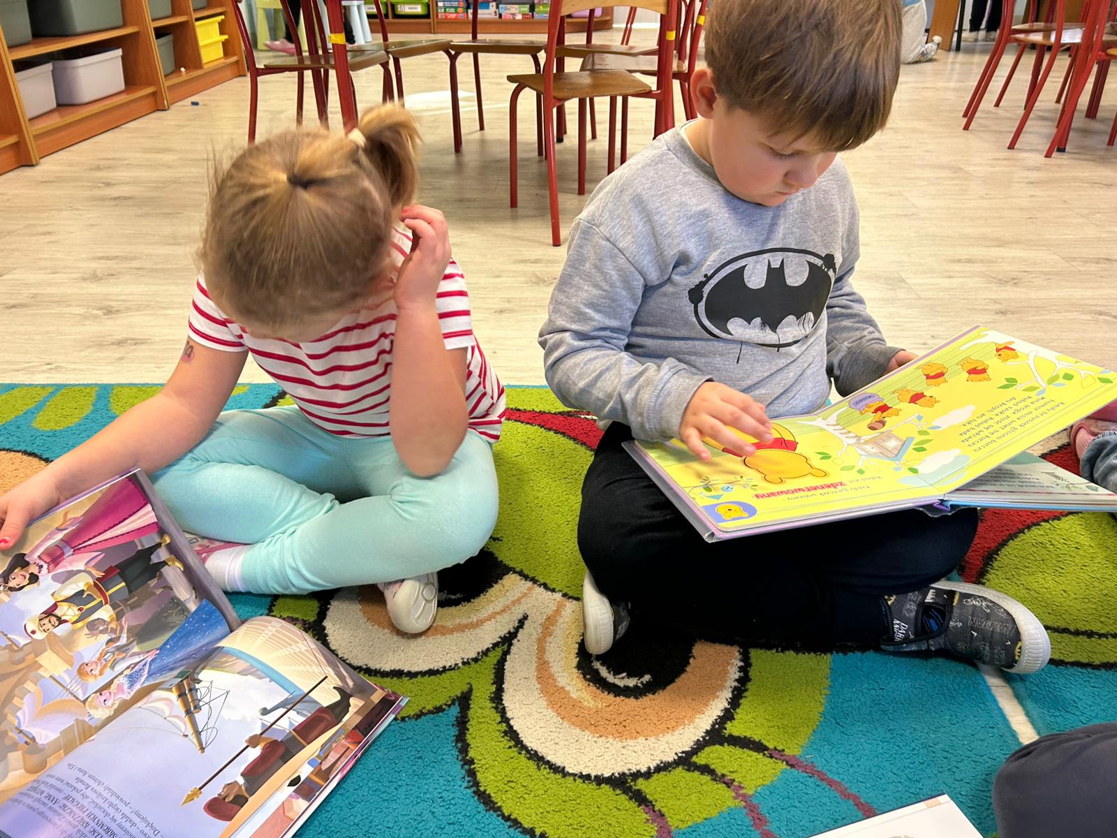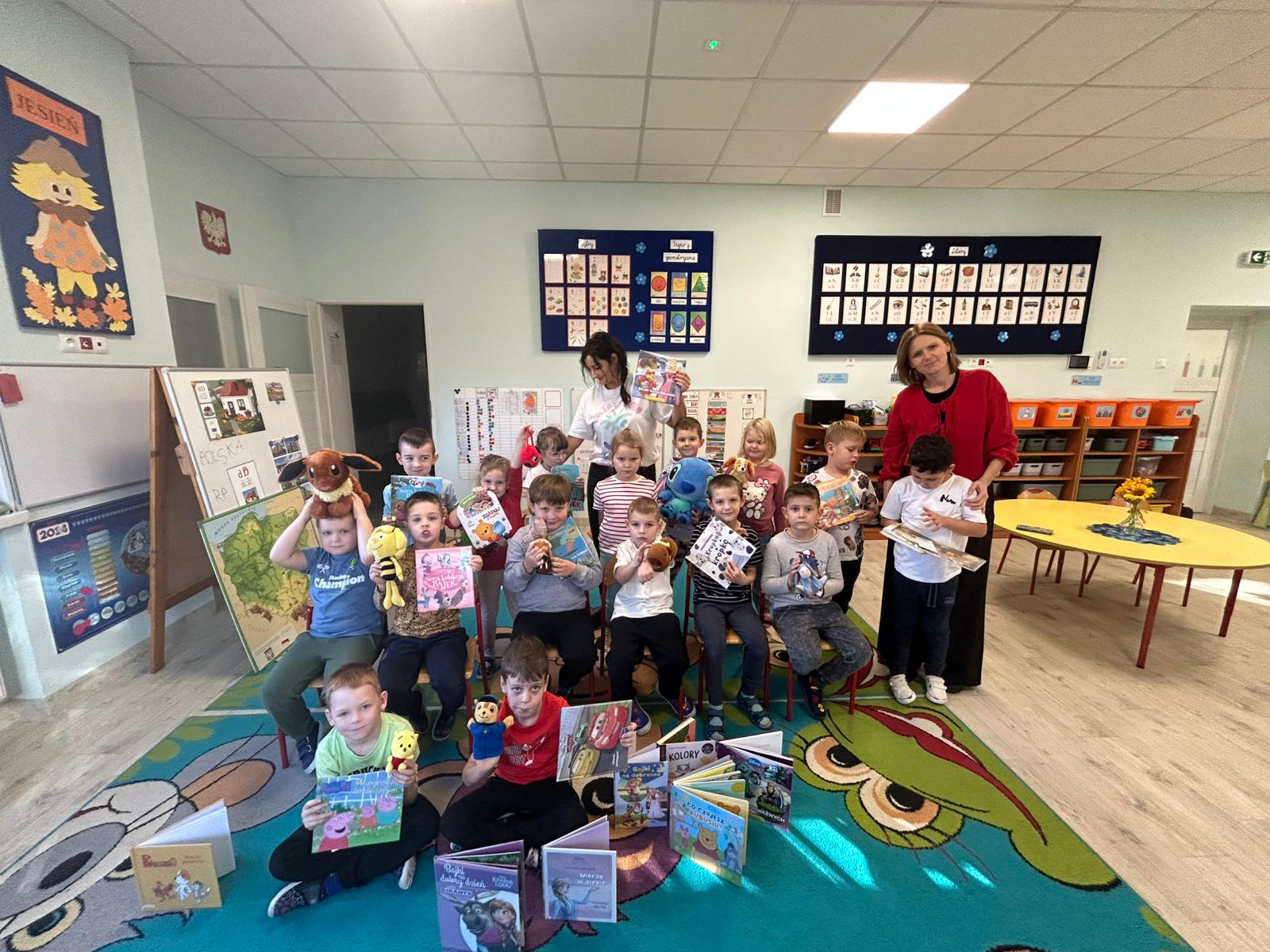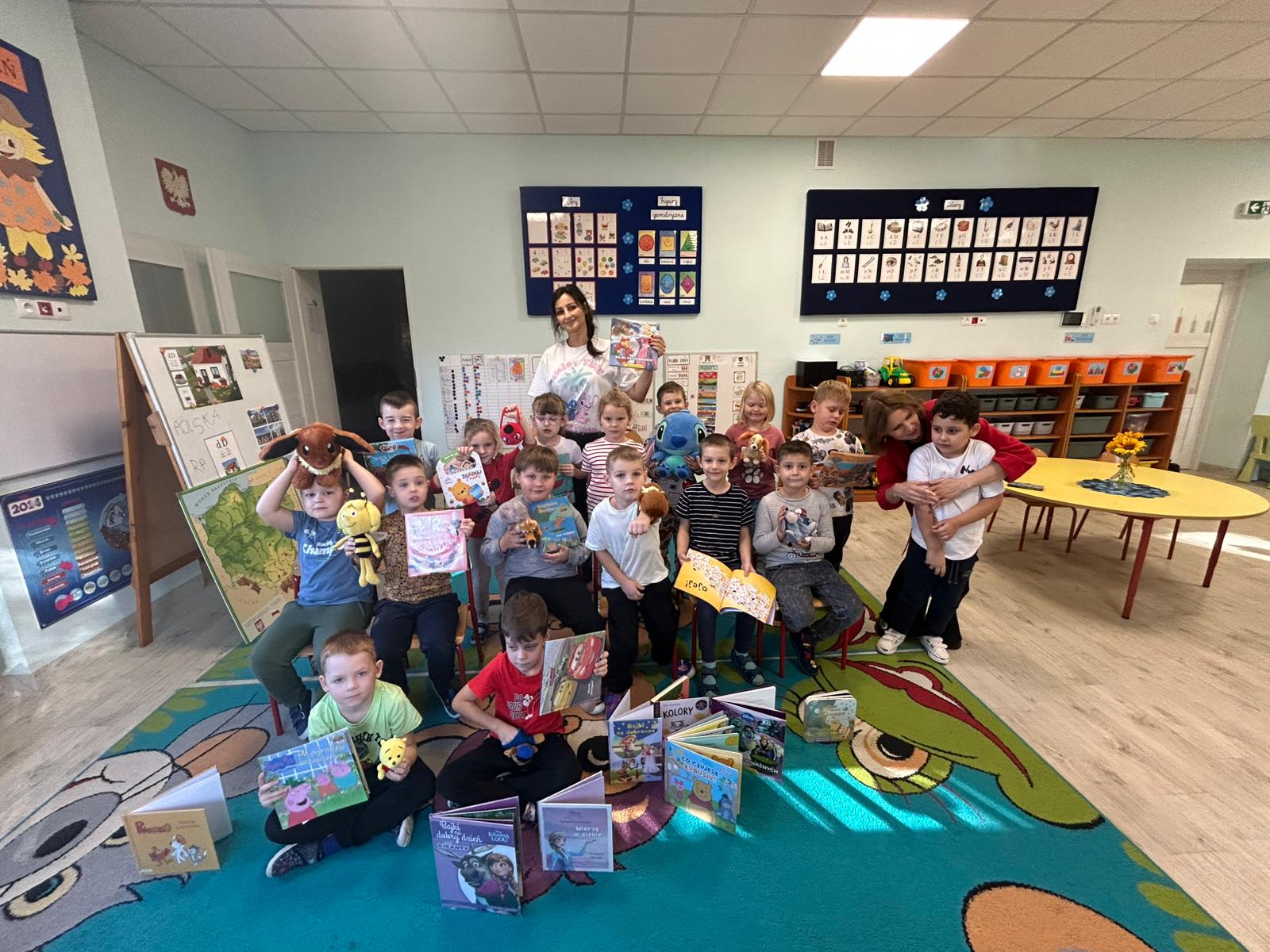 Naszą grupę odwiedziły dziś Panie pracujące w bibliotece. Przygotowały dla dzieci ciekawe zagadki, zabawy oraz rozmowy na temat bajek i ulubionych bohaterów książkowych. Przedszkolaki aktywnie uczestniczyły w spotkaniu, chętnie odpowiadały na pytania i dzieliły się swoimi spostrzeżeniami. Dzieci spędziły miło czas, a wizyta zachęciła je do sięgania po książki i poznawania nowych bajkowych historii.