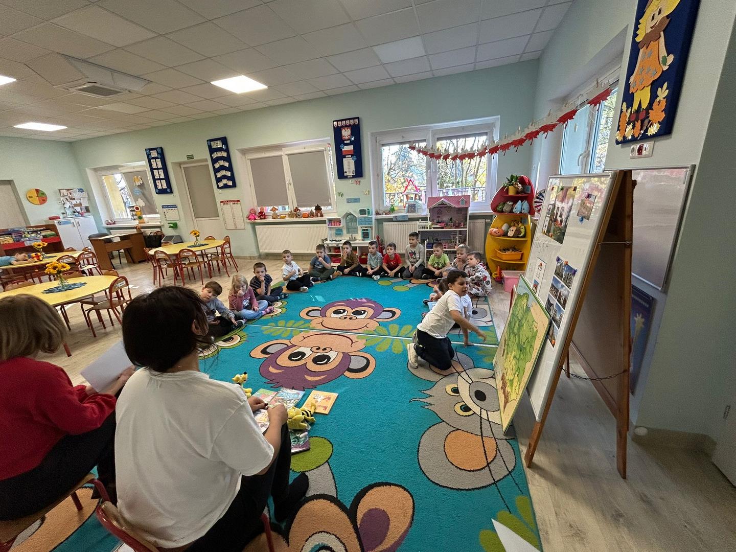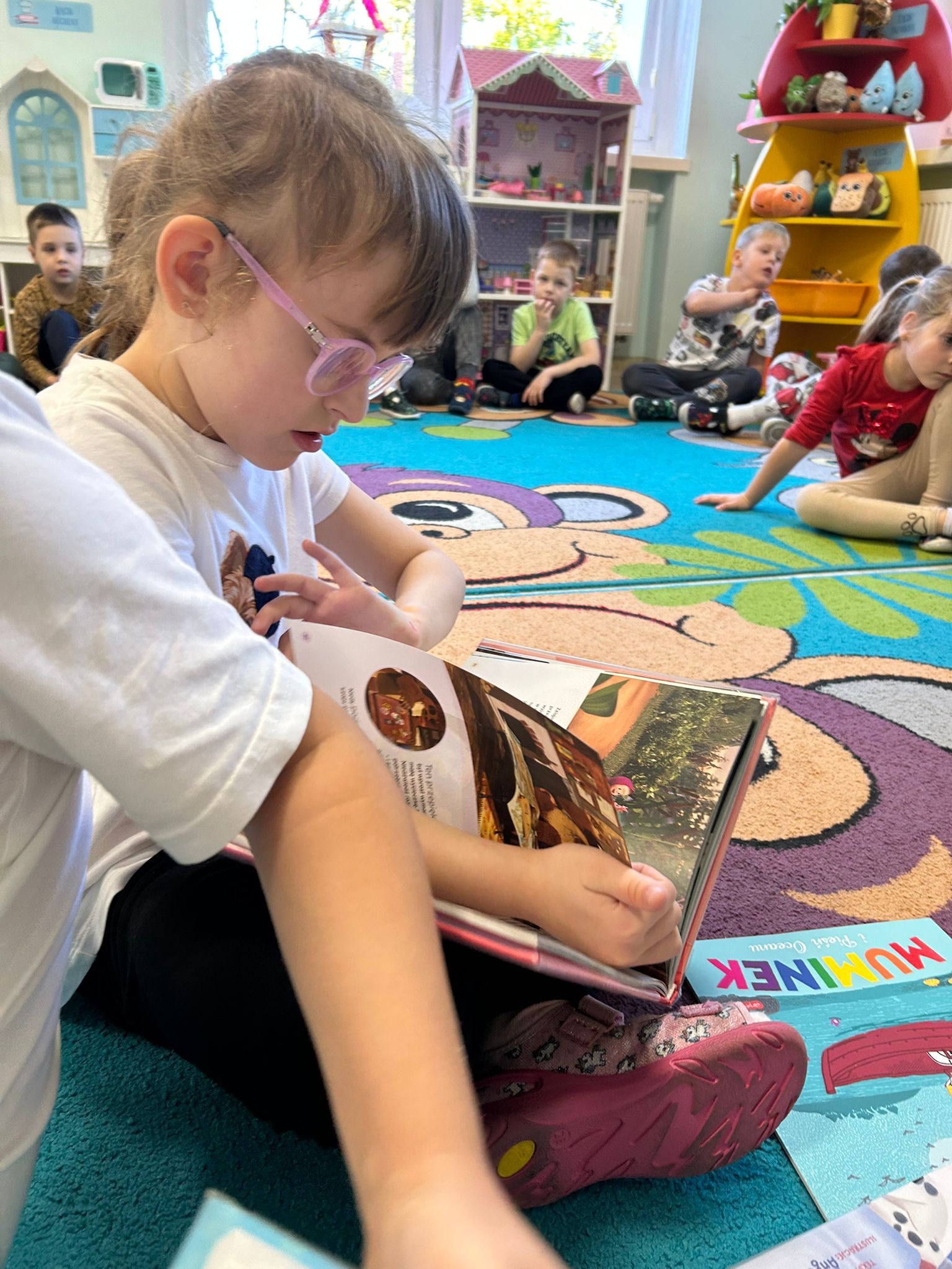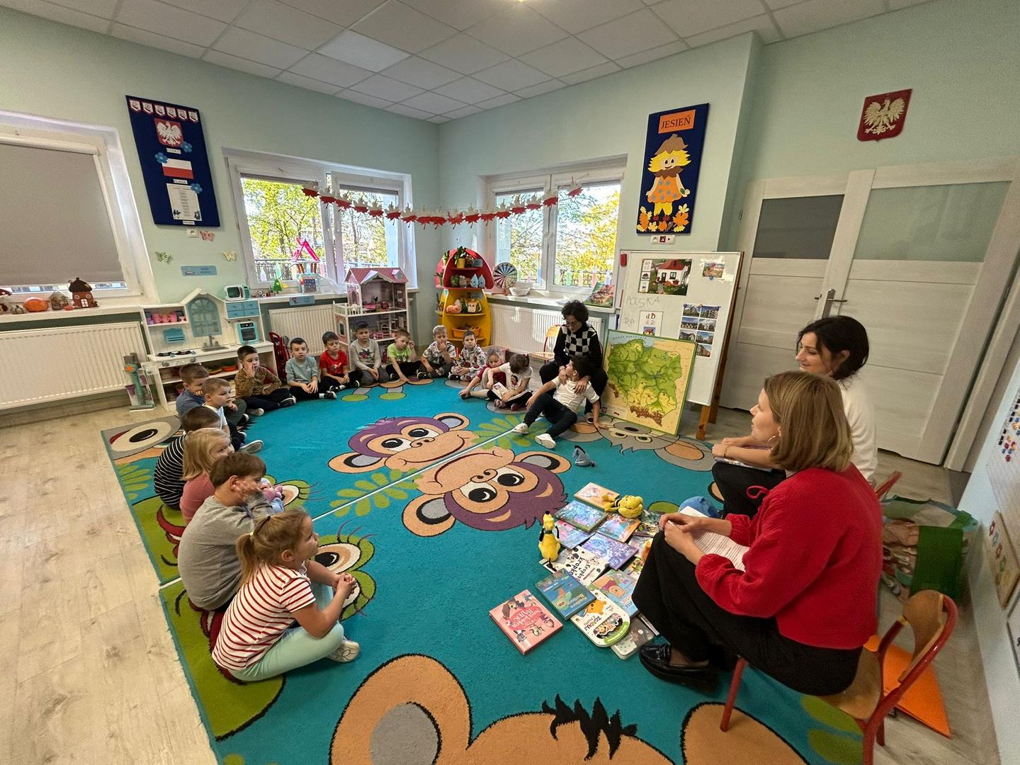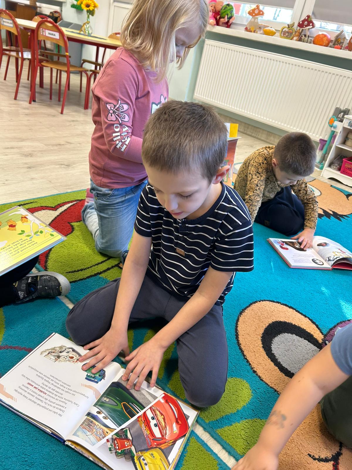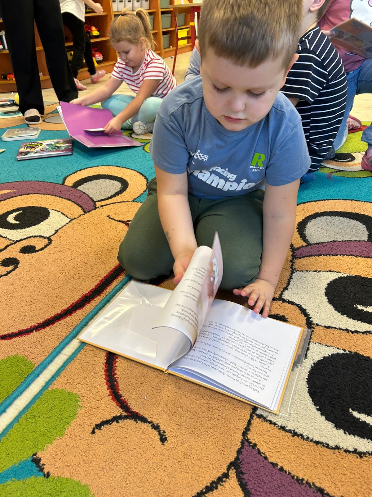 Naszą grupę odwiedziły dziś Panie pracujące w bibliotece. Przygotowały dla dzieci ciekawe zagadki, zabawy oraz rozmowy na temat bajek i ulubionych bohaterów książkowych. Przedszkolaki aktywnie uczestniczyły w spotkaniu, chętnie odpowiadały na pytania i dzieliły się swoimi spostrzeżeniami. Dzieci spędziły miło czas, a wizyta zachęciła je do sięgania po książki i poznawania nowych bajkowych historii.