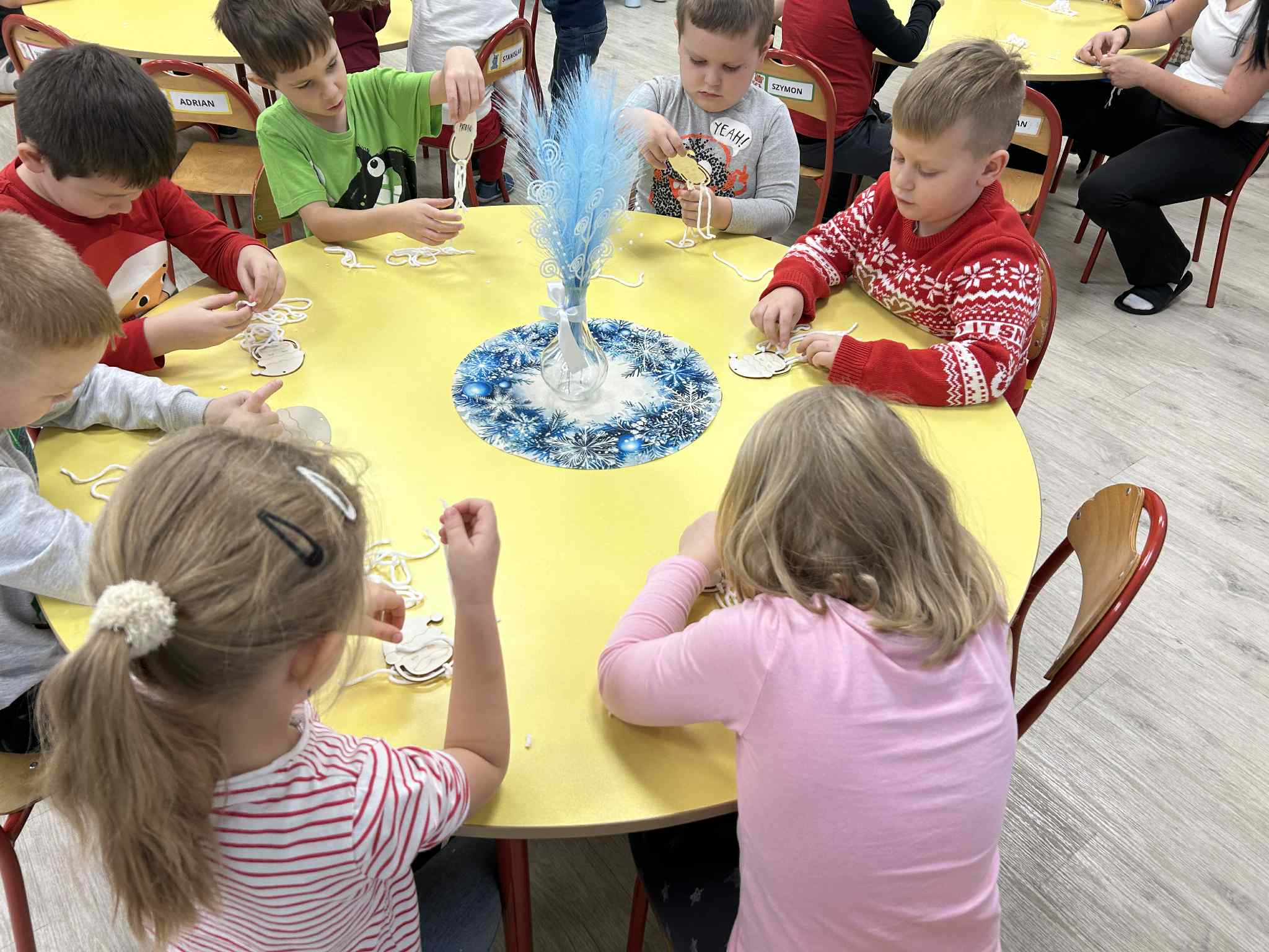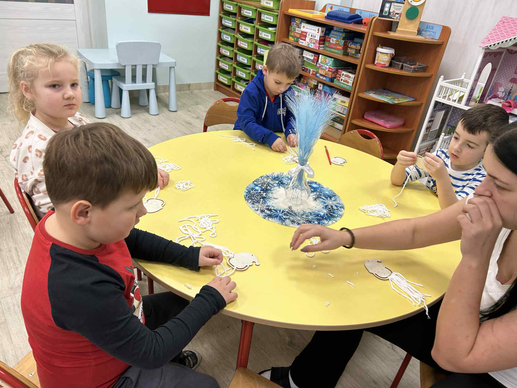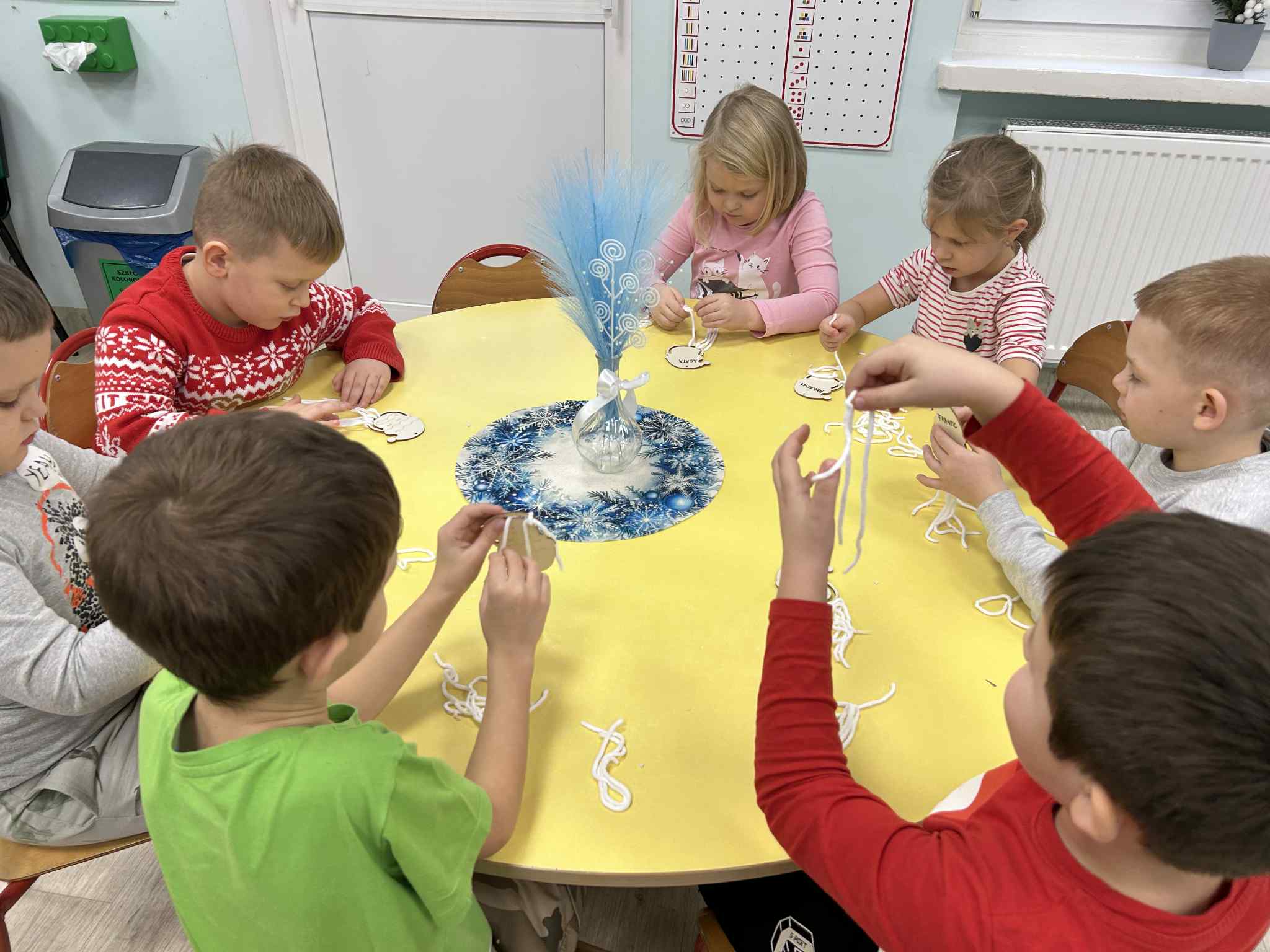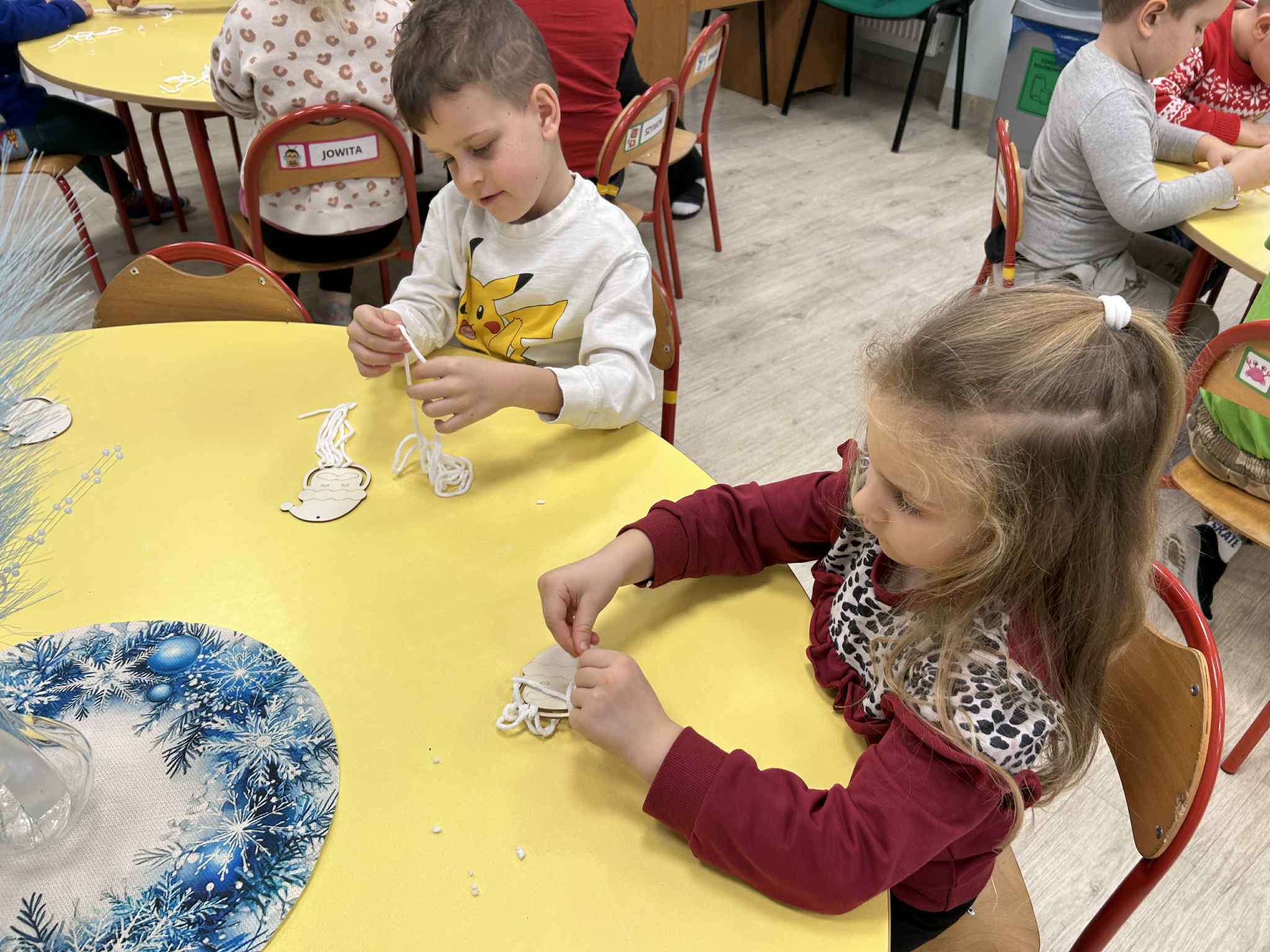 Wykonaliśmy ozdobę świąteczną, ćwicząc motorykę małą oraz skupienie.