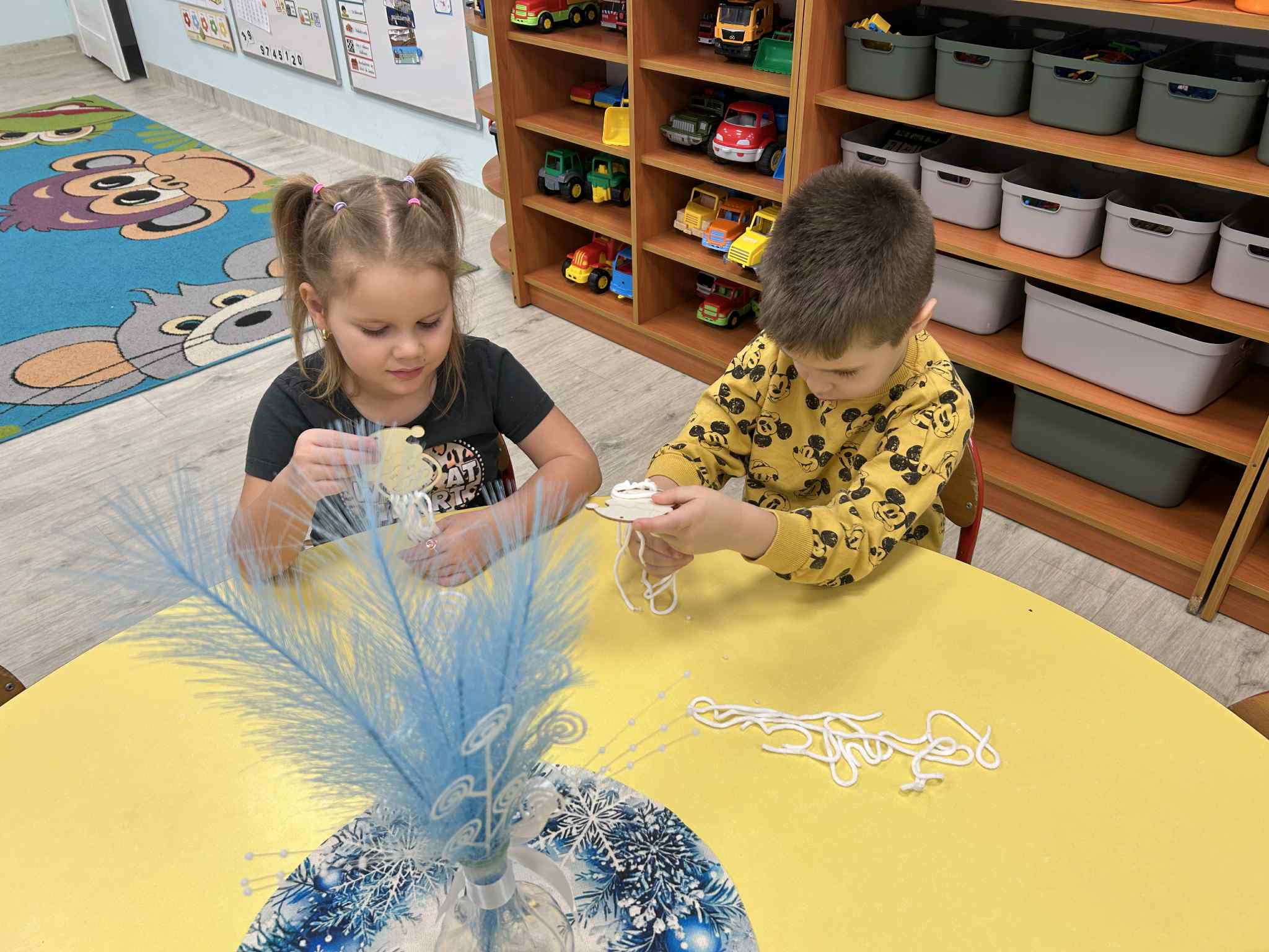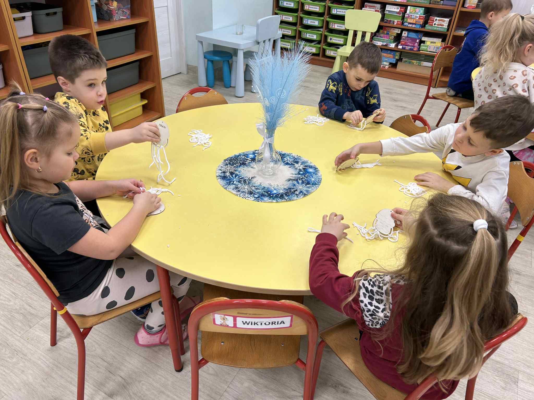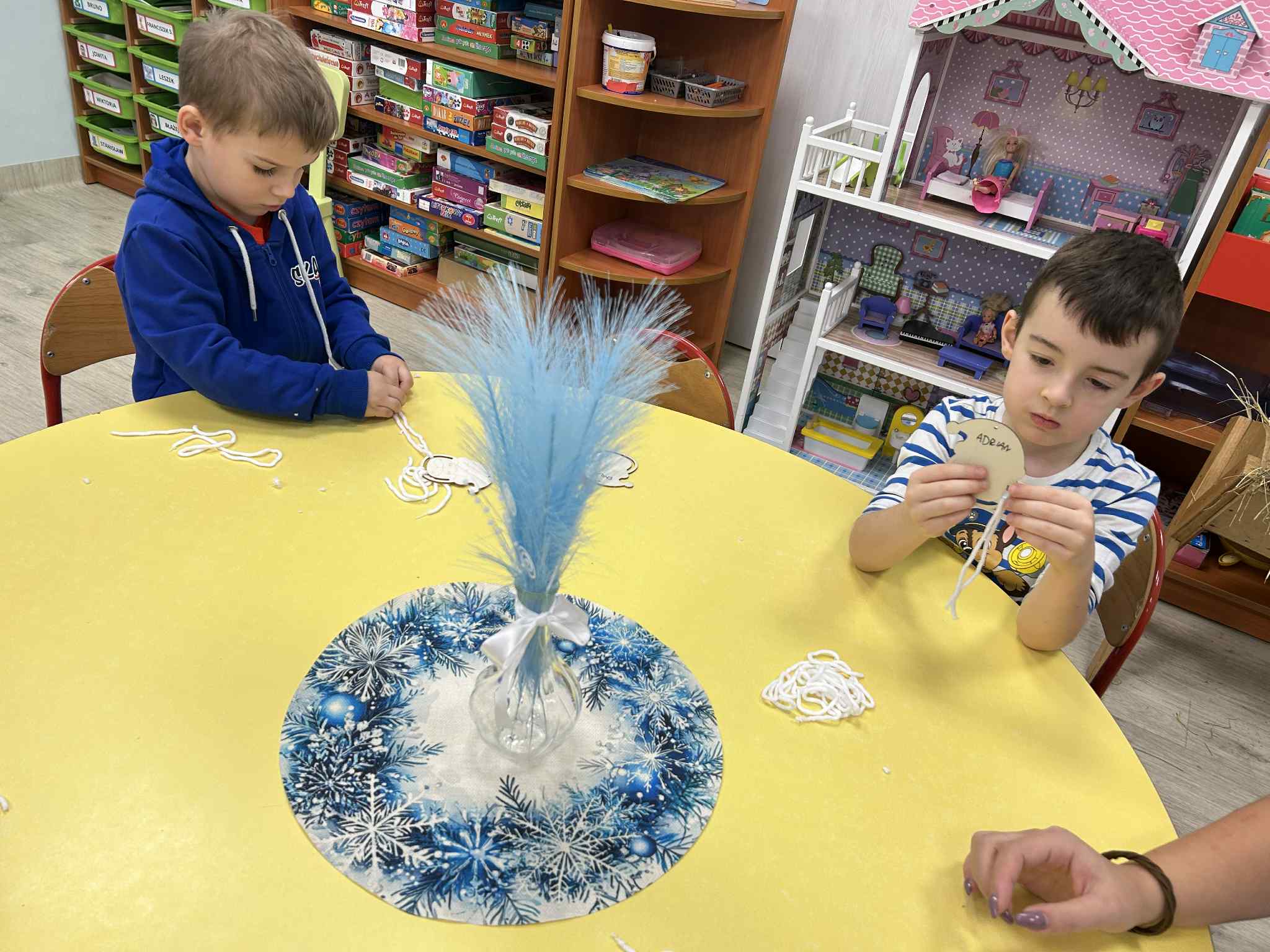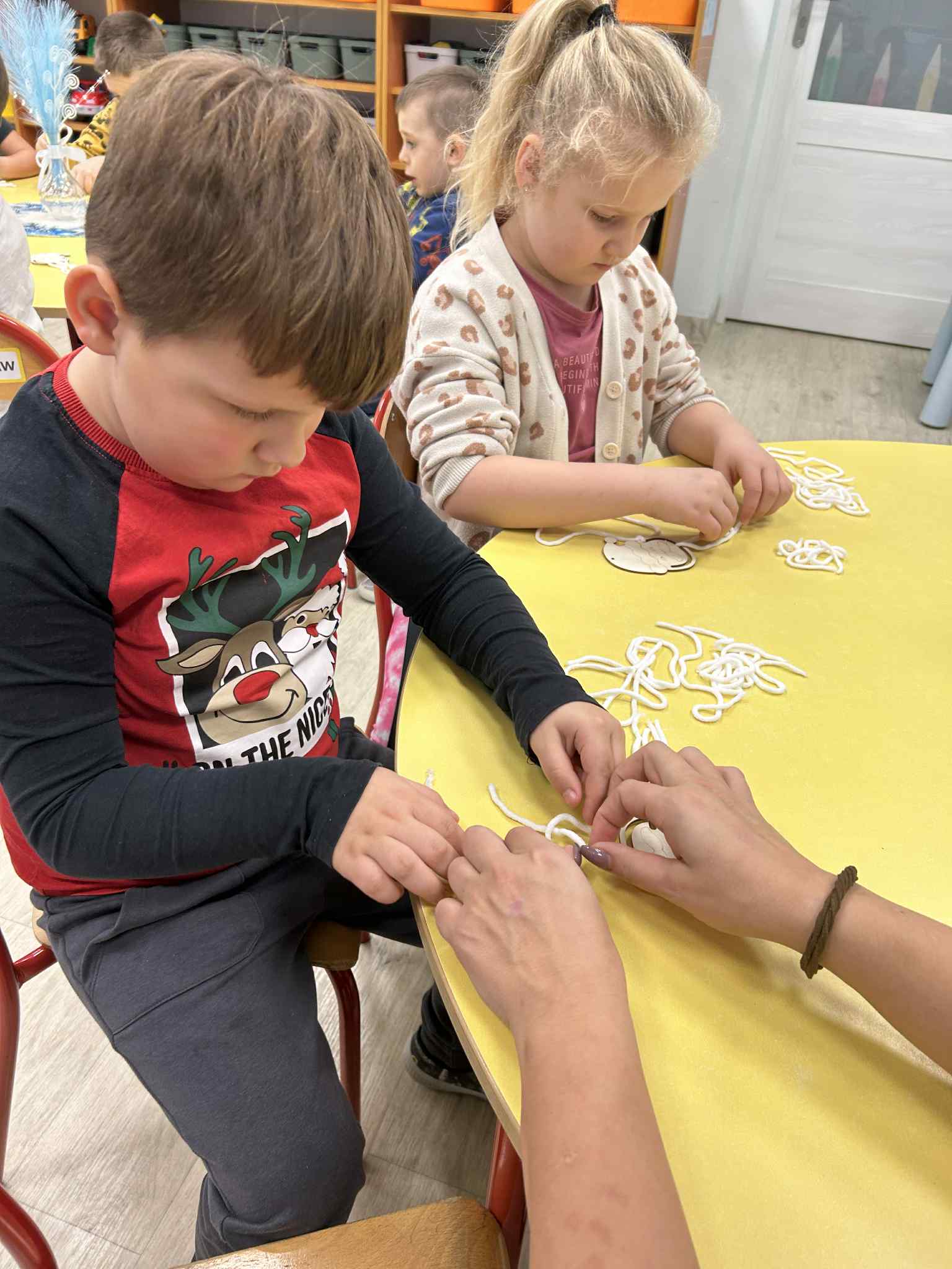 Wykonaliśmy ozdobę świąteczną, ćwicząc motorykę małą oraz skupienie.