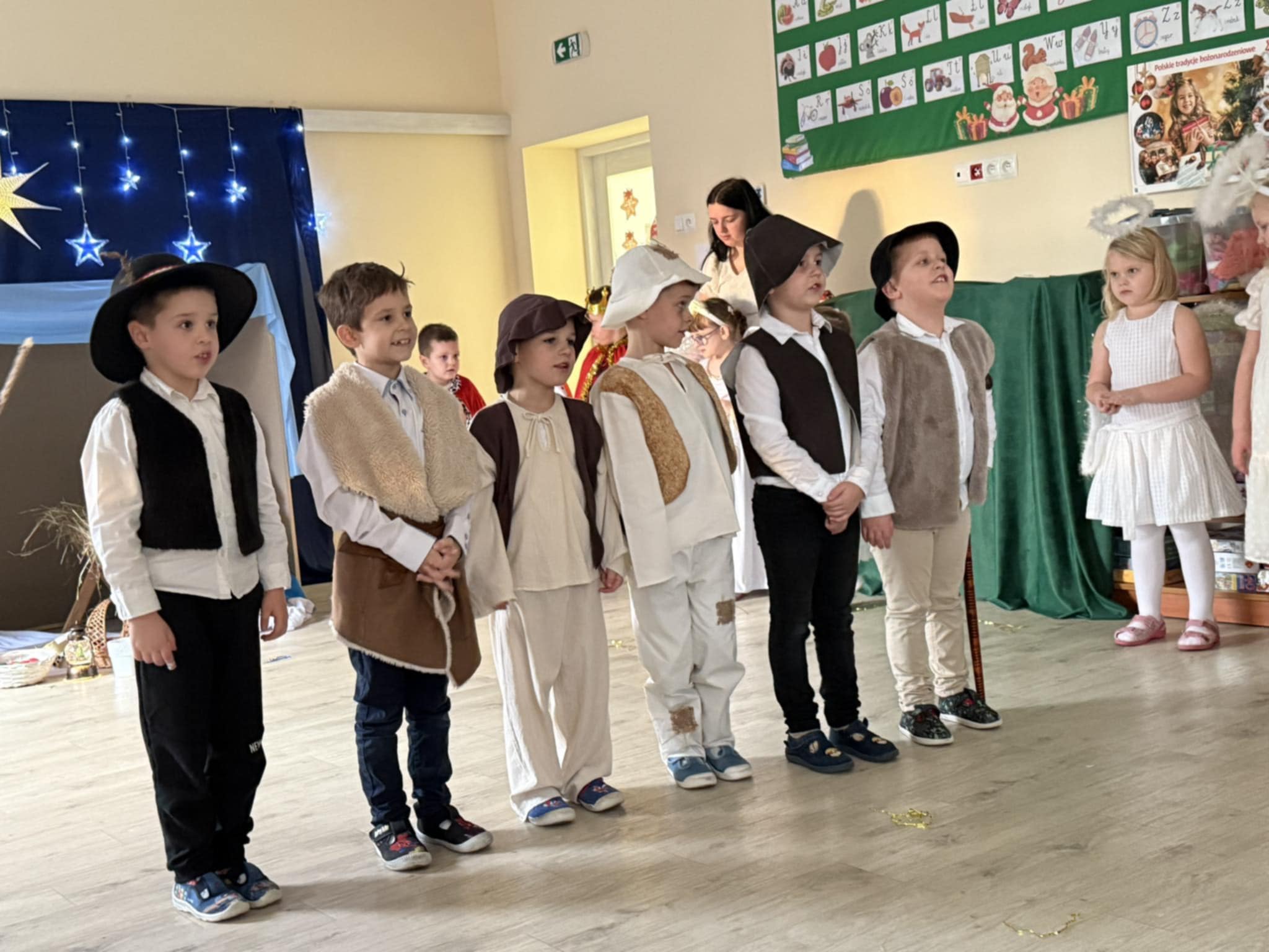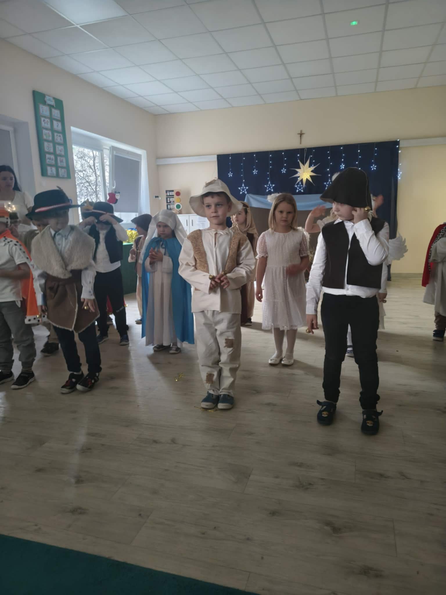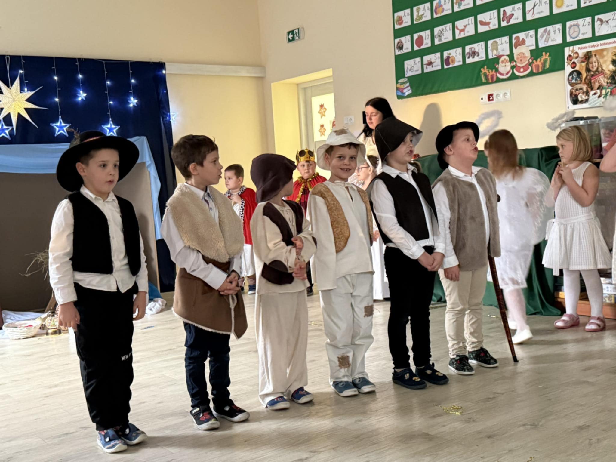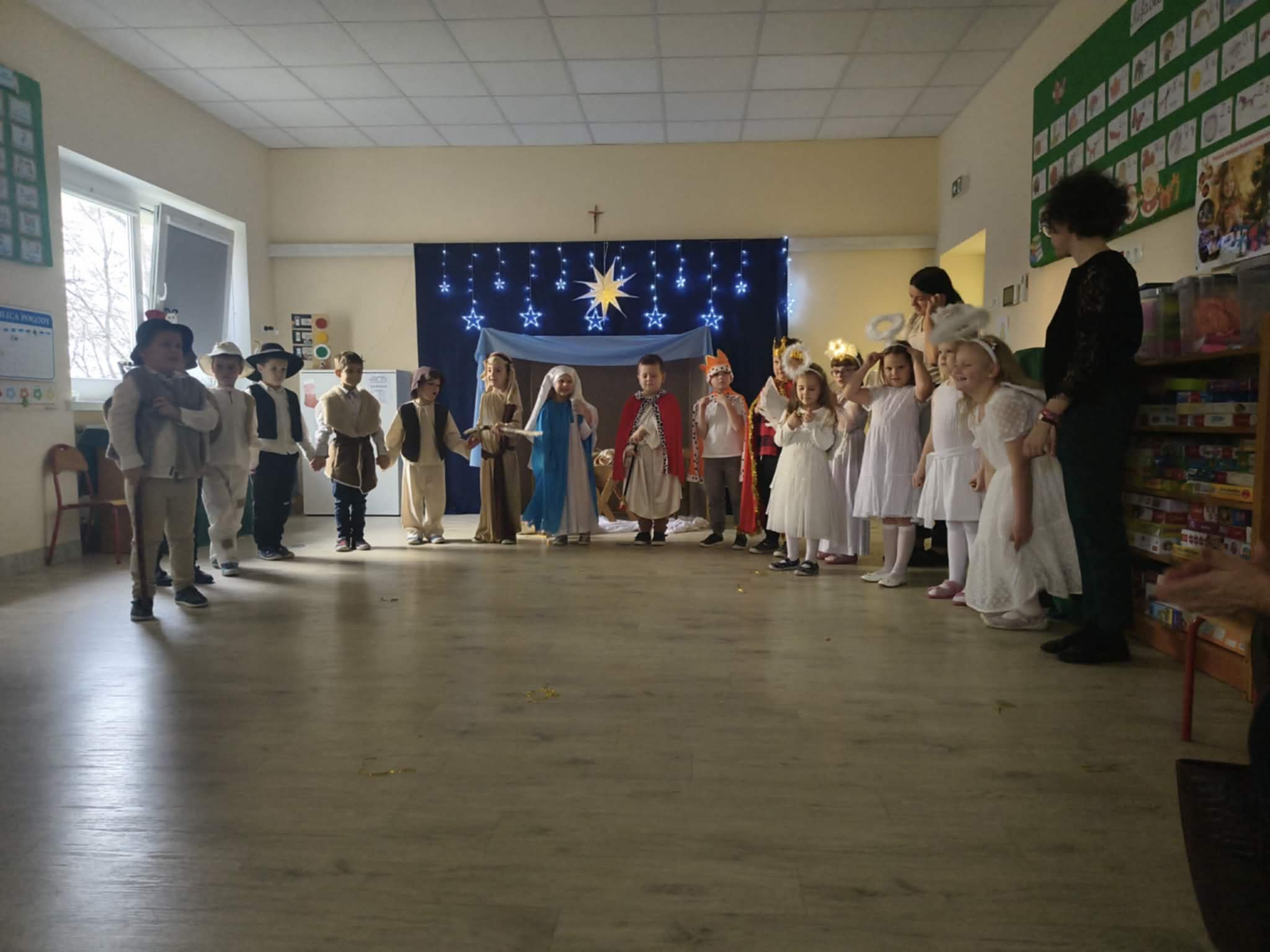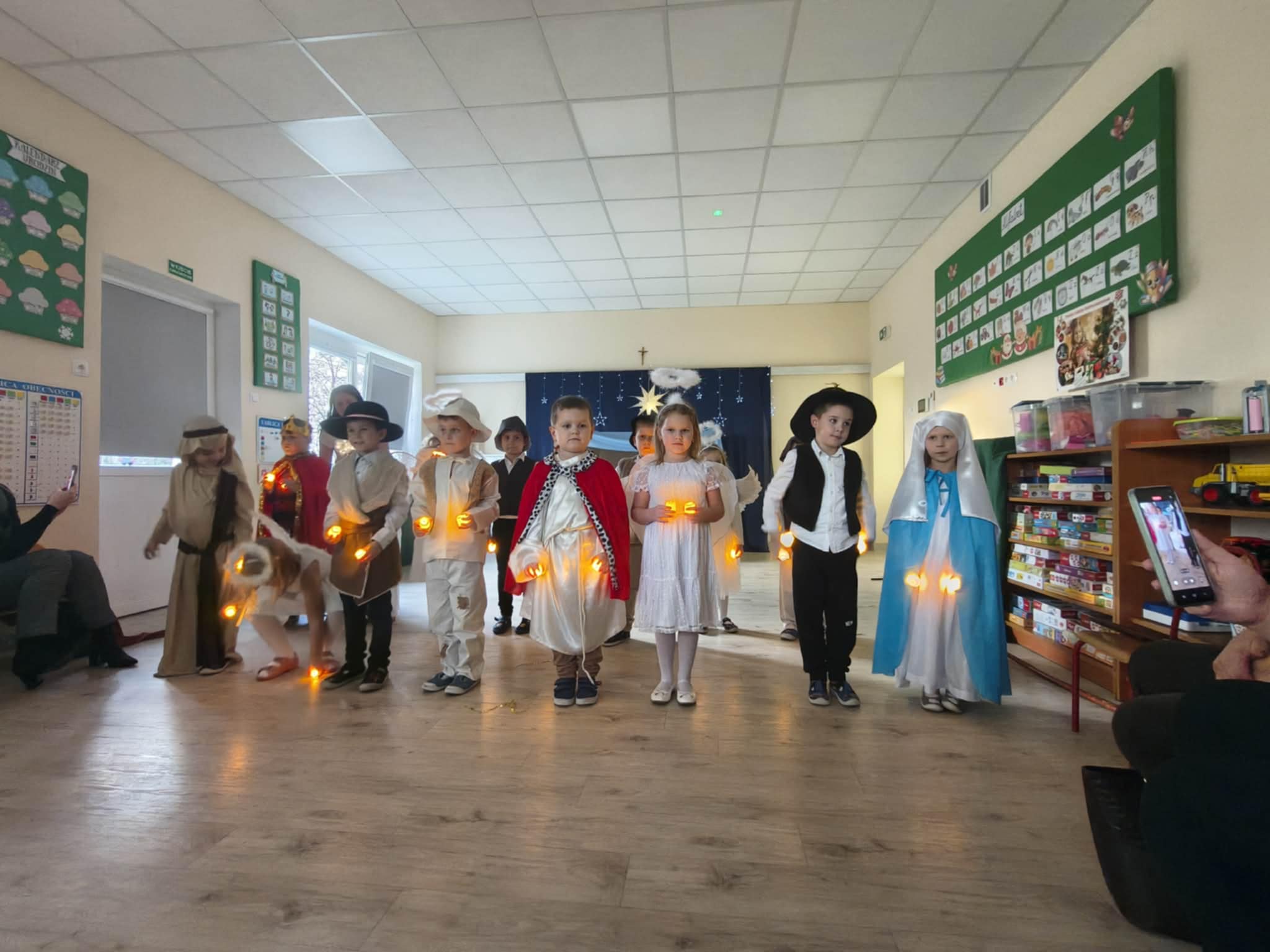 Wczoraj w naszej grupie odbyło się wyjątkowe, pełne wzruszeń i radości świąteczne wydarzenie, które na długo pozostanie w pamięci dzieci i rodziców. Spotkanie rozpoczęły Jasełka, podczas których mali artyści zaprezentowali piękne role, kolędy i pastorałki, wprowadzając wszystkich w magiczny klimat Bożego Narodzenia. Dzieci z ogromnym zaangażowaniem wcieliły się w swoje postacie, a ich występ został nagrodzony gromkimi brawami.