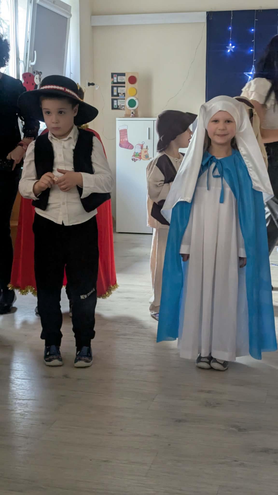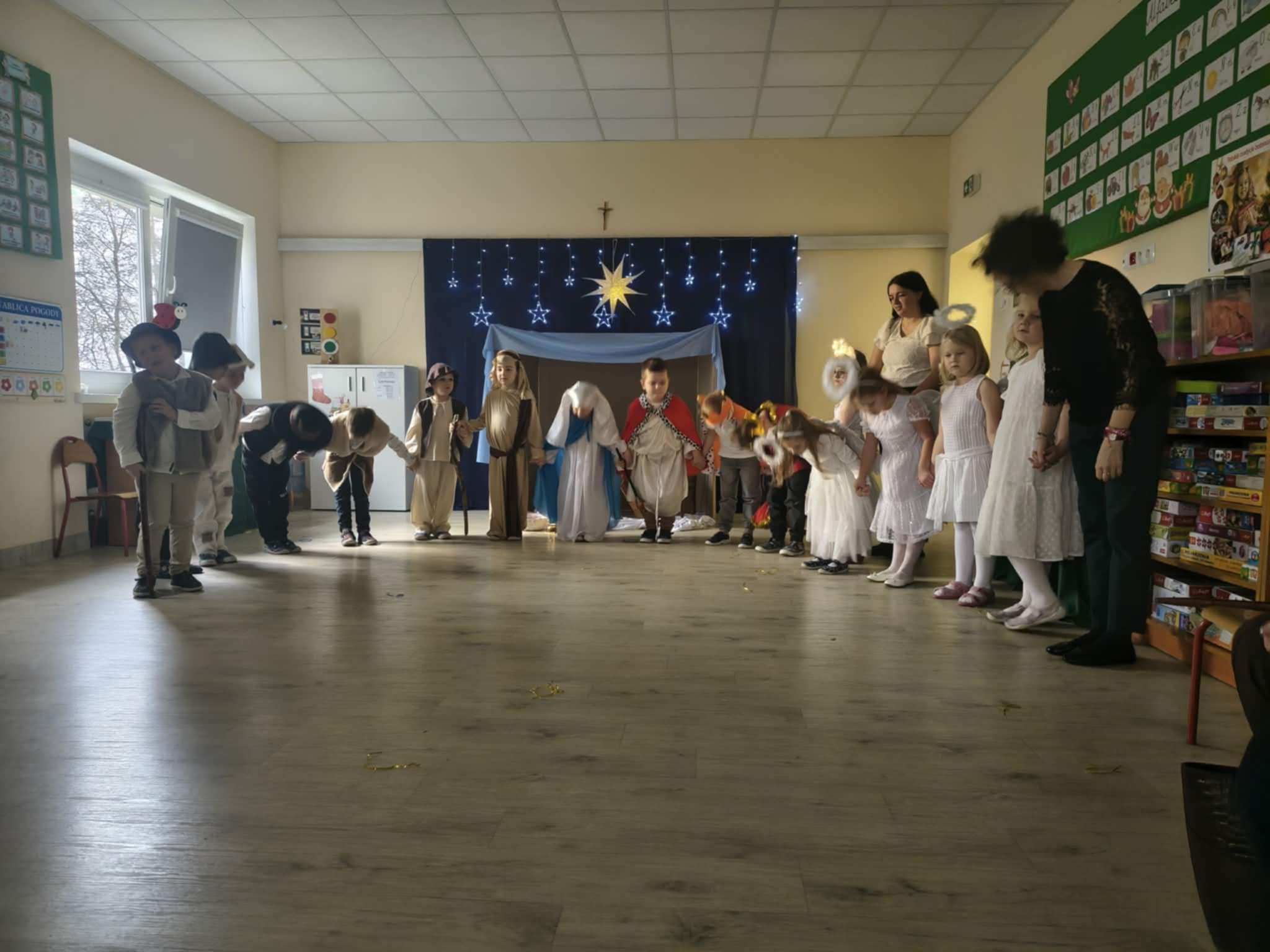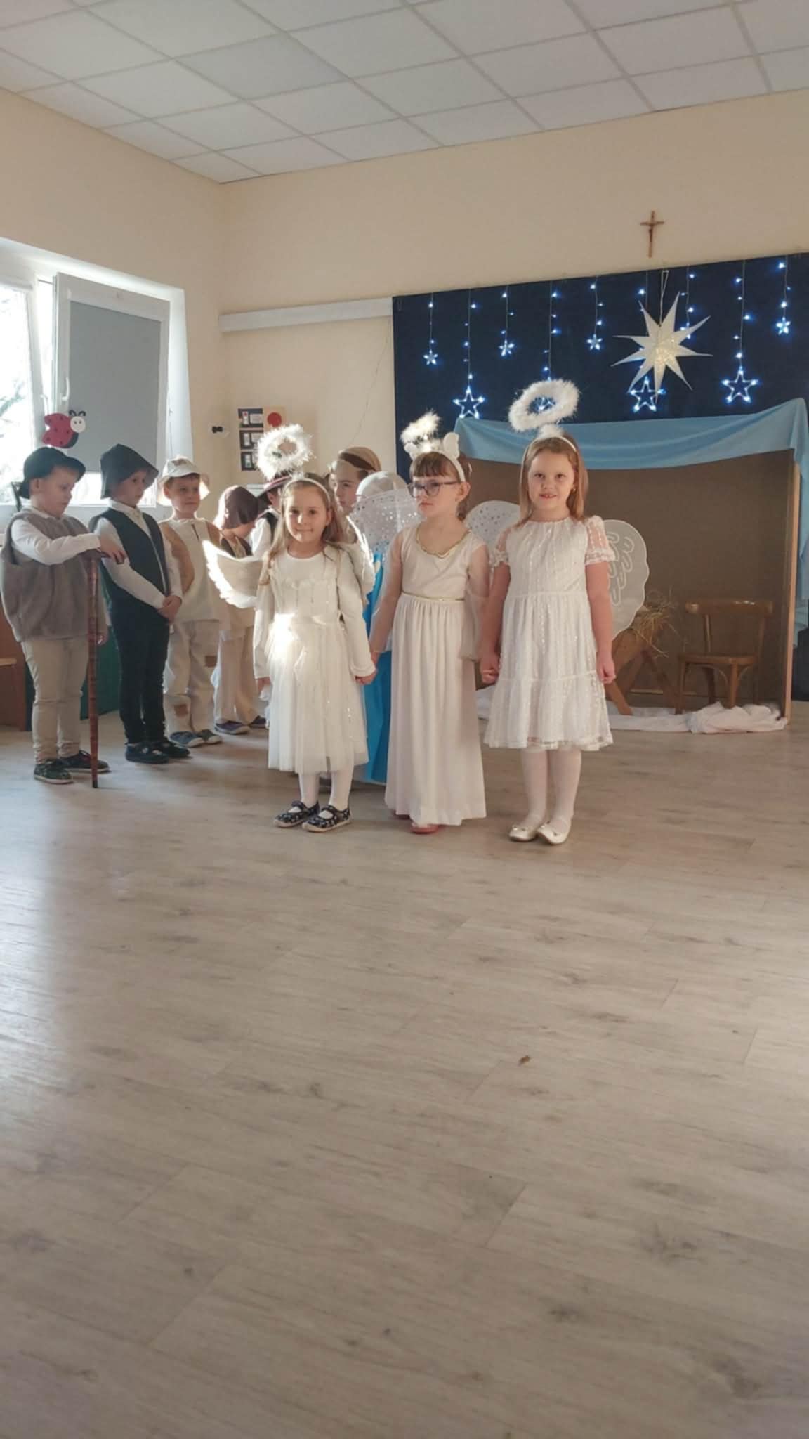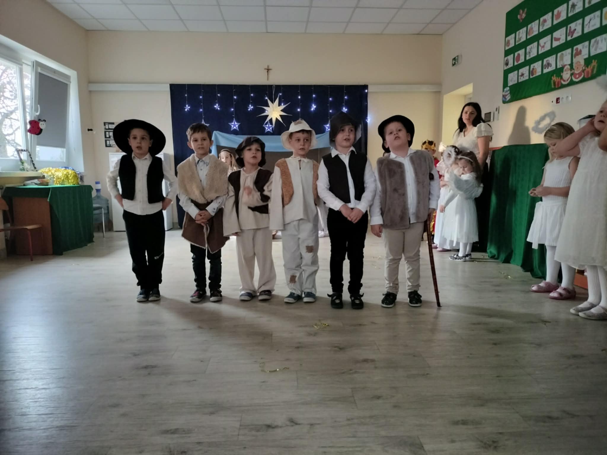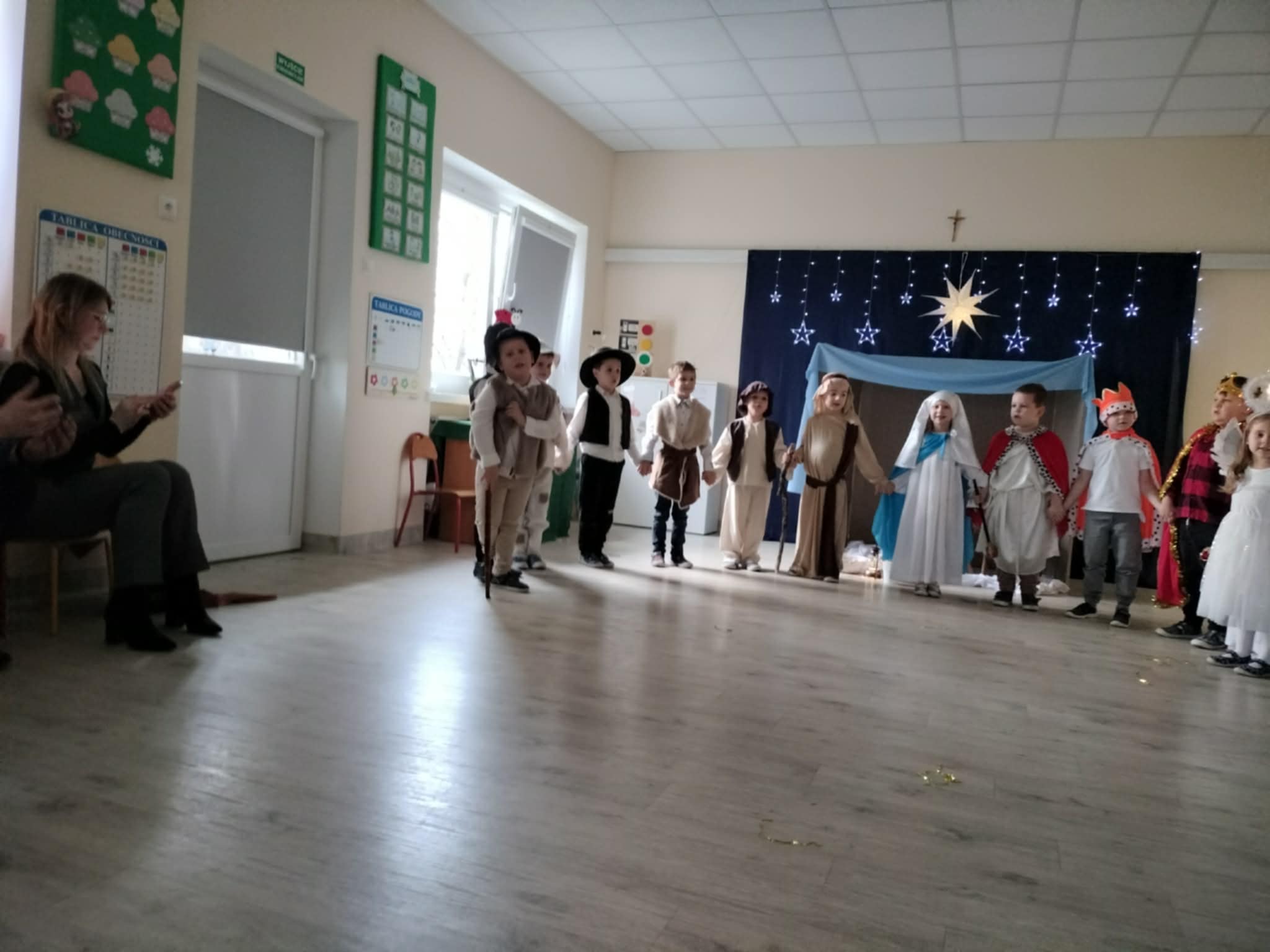 Wczoraj w naszej grupie odbyło się wyjątkowe, pełne wzruszeń i radości świąteczne wydarzenie, które na długo pozostanie w pamięci dzieci i rodziców. Spotkanie rozpoczęły Jasełka, podczas których mali artyści zaprezentowali piękne role, kolędy i pastorałki, wprowadzając wszystkich w magiczny klimat Bożego Narodzenia. Dzieci z ogromnym zaangażowaniem wcieliły się w swoje postacie, a ich występ został nagrodzony gromkimi brawami.
