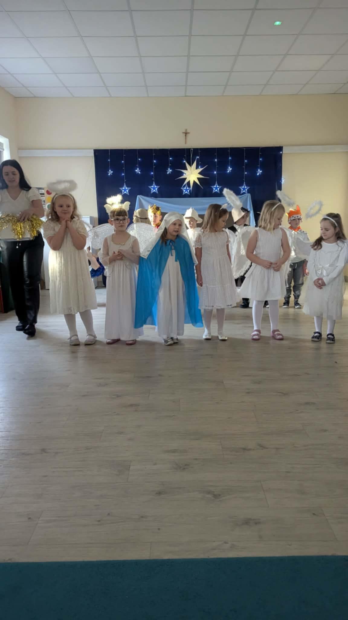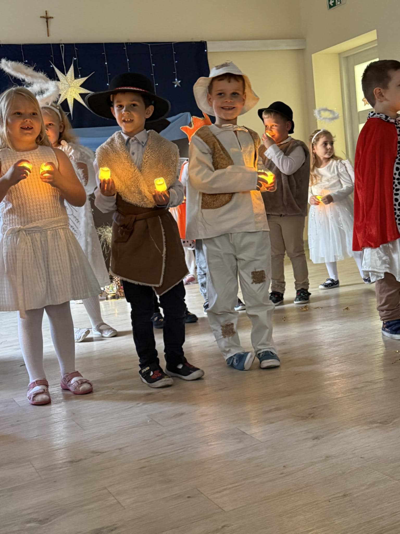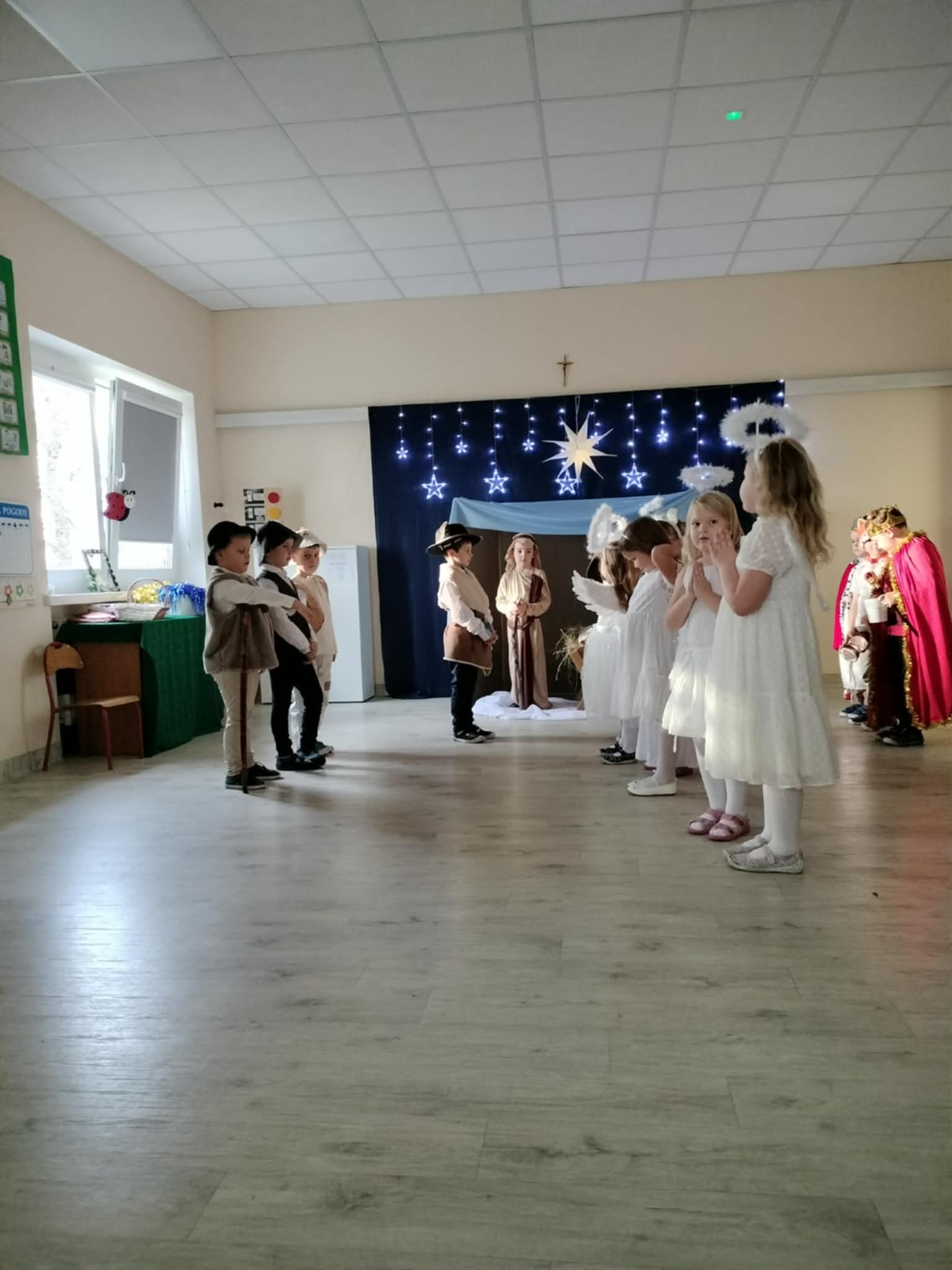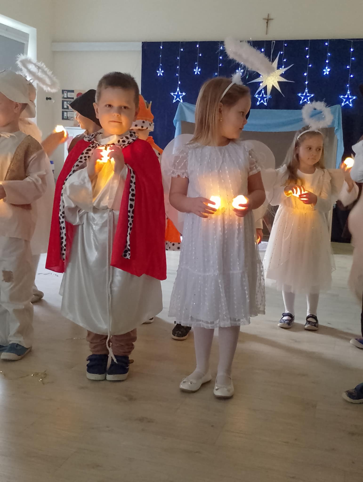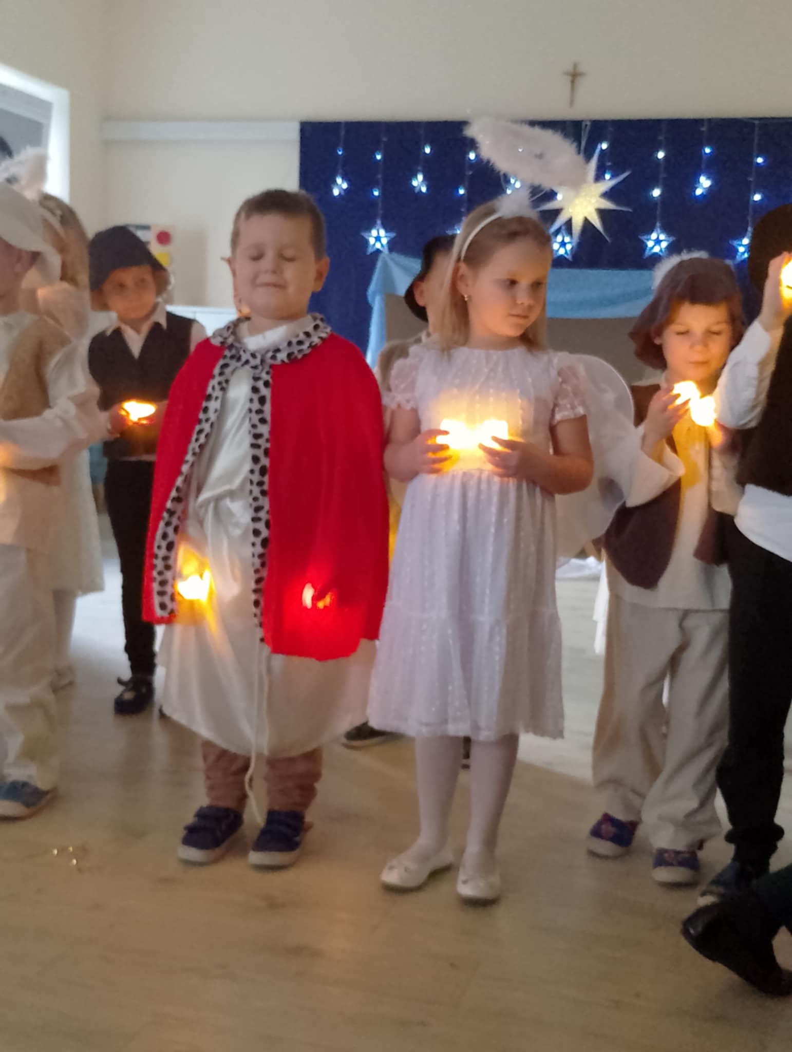 Wczoraj w naszej grupie odbyło się wyjątkowe, pełne wzruszeń i radości świąteczne wydarzenie, które na długo pozostanie w pamięci dzieci i rodziców. Spotkanie rozpoczęły Jasełka, podczas których mali artyści zaprezentowali piękne role, kolędy i pastorałki, wprowadzając wszystkich w magiczny klimat Bożego Narodzenia. Dzieci z ogromnym zaangażowaniem wcieliły się w swoje postacie, a ich występ został nagrodzony gromkimi brawami.