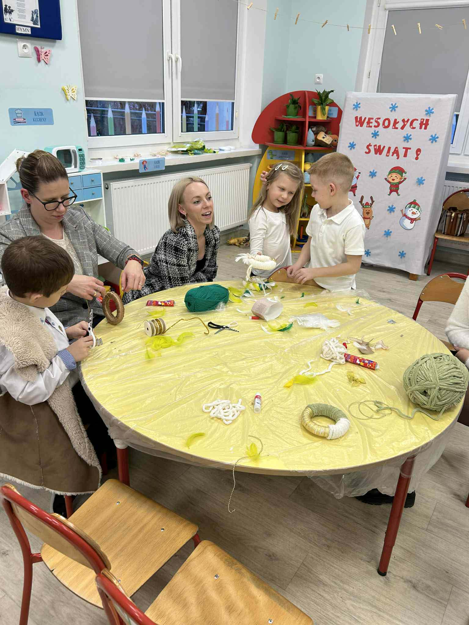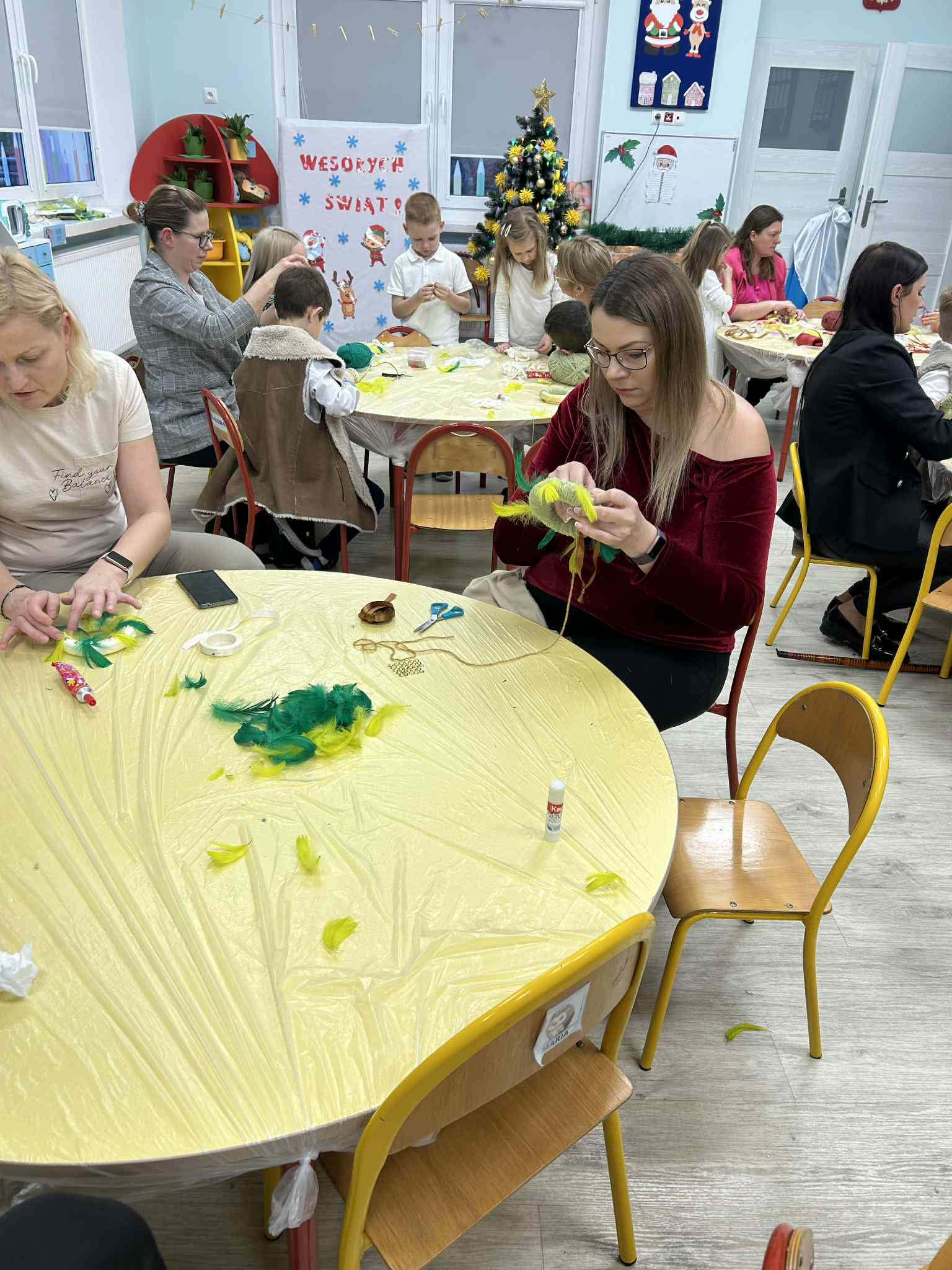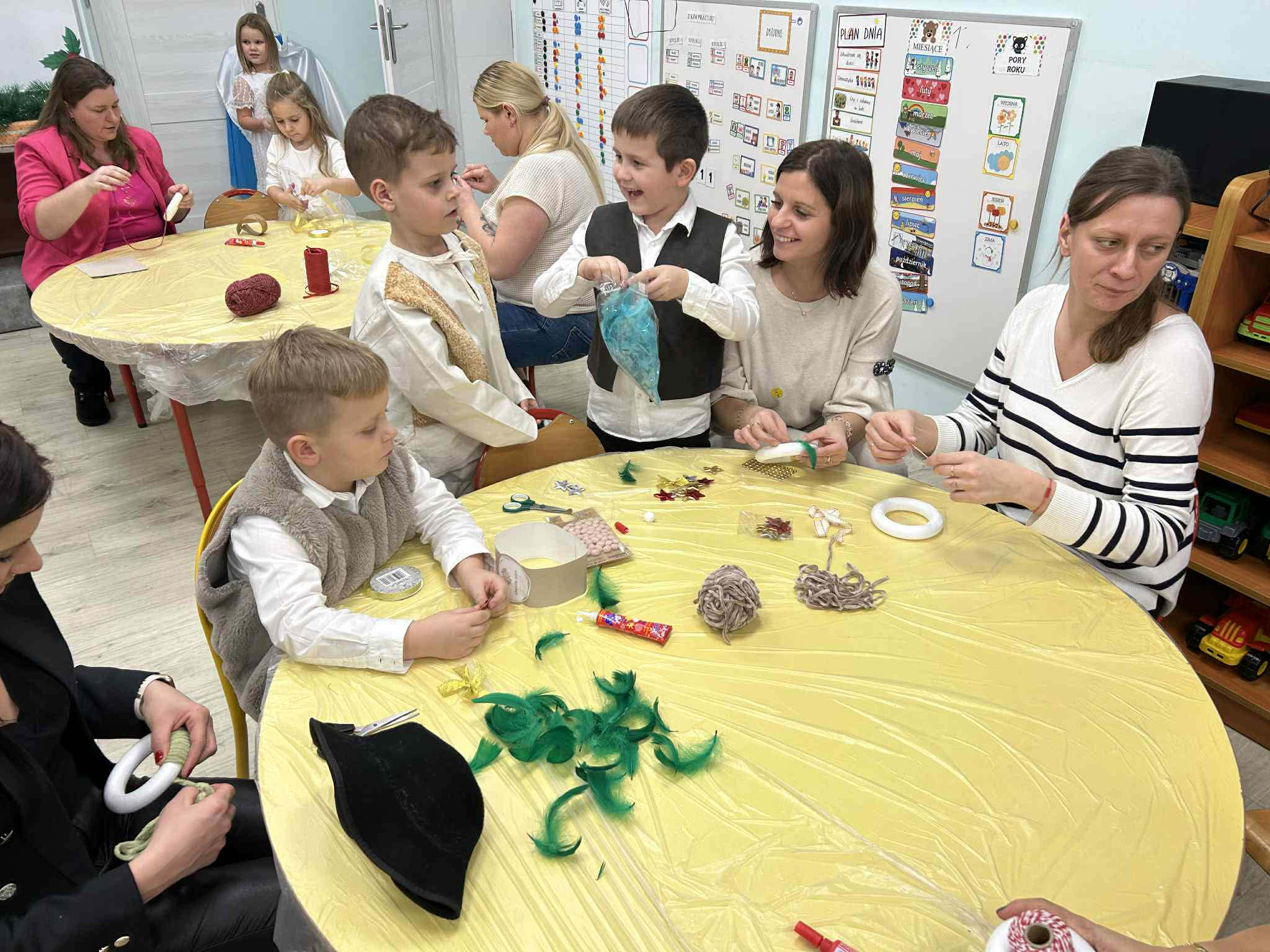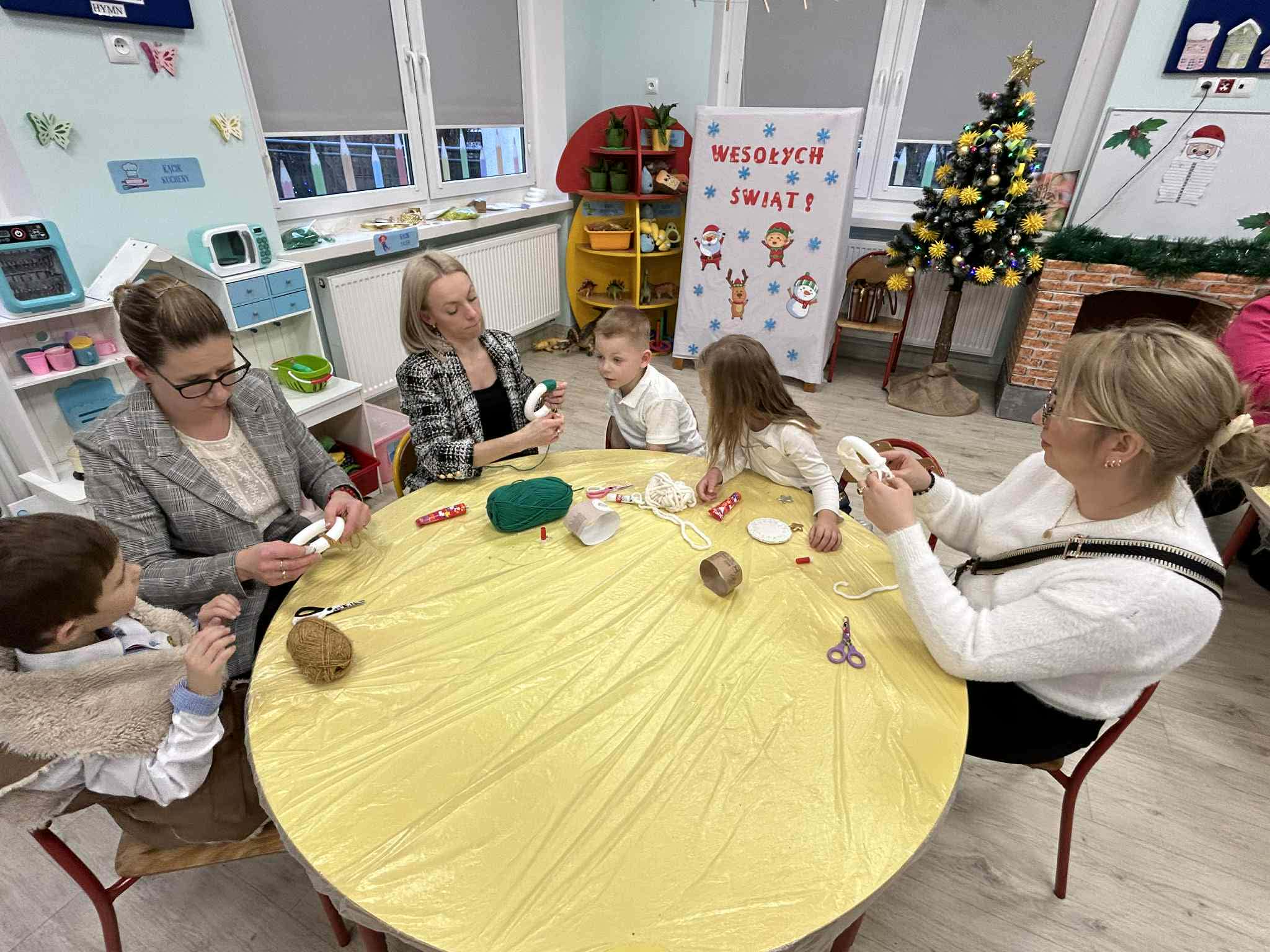 Po części artystycznej zaprosiliśmy rodziców do udziału w rodzinnych warsztatach świątecznych. W miłej, twórczej atmosferze powstawały świąteczne ozdoby choinkowe, które dzieci wykonywały wspólnie z rodzicami. Był to wspaniały czas rozmów, współpracy i radości z wspólnego tworzenia.