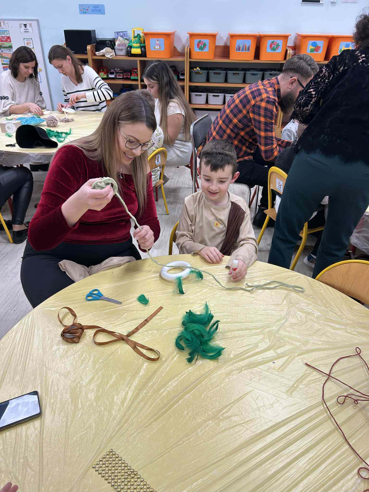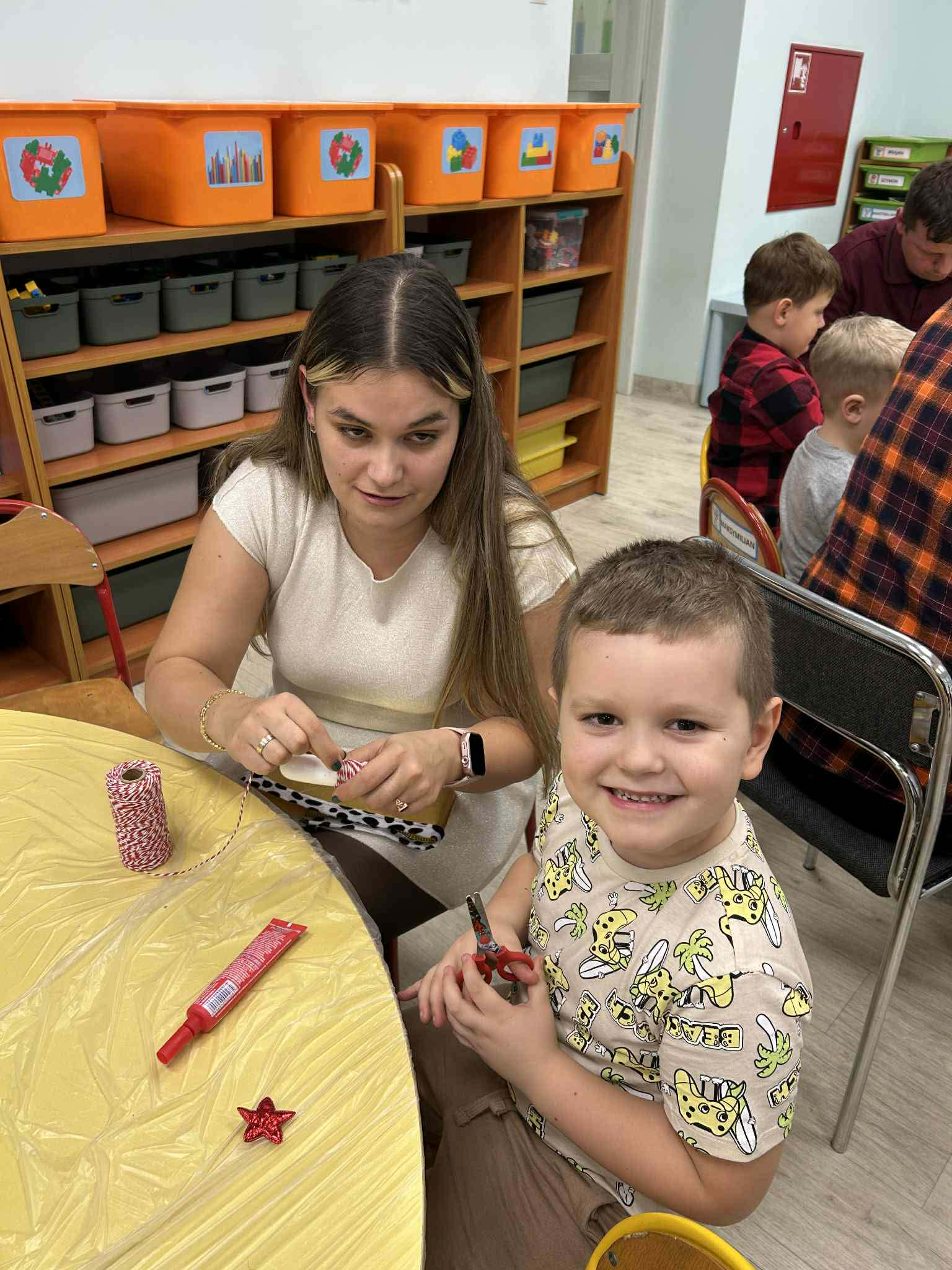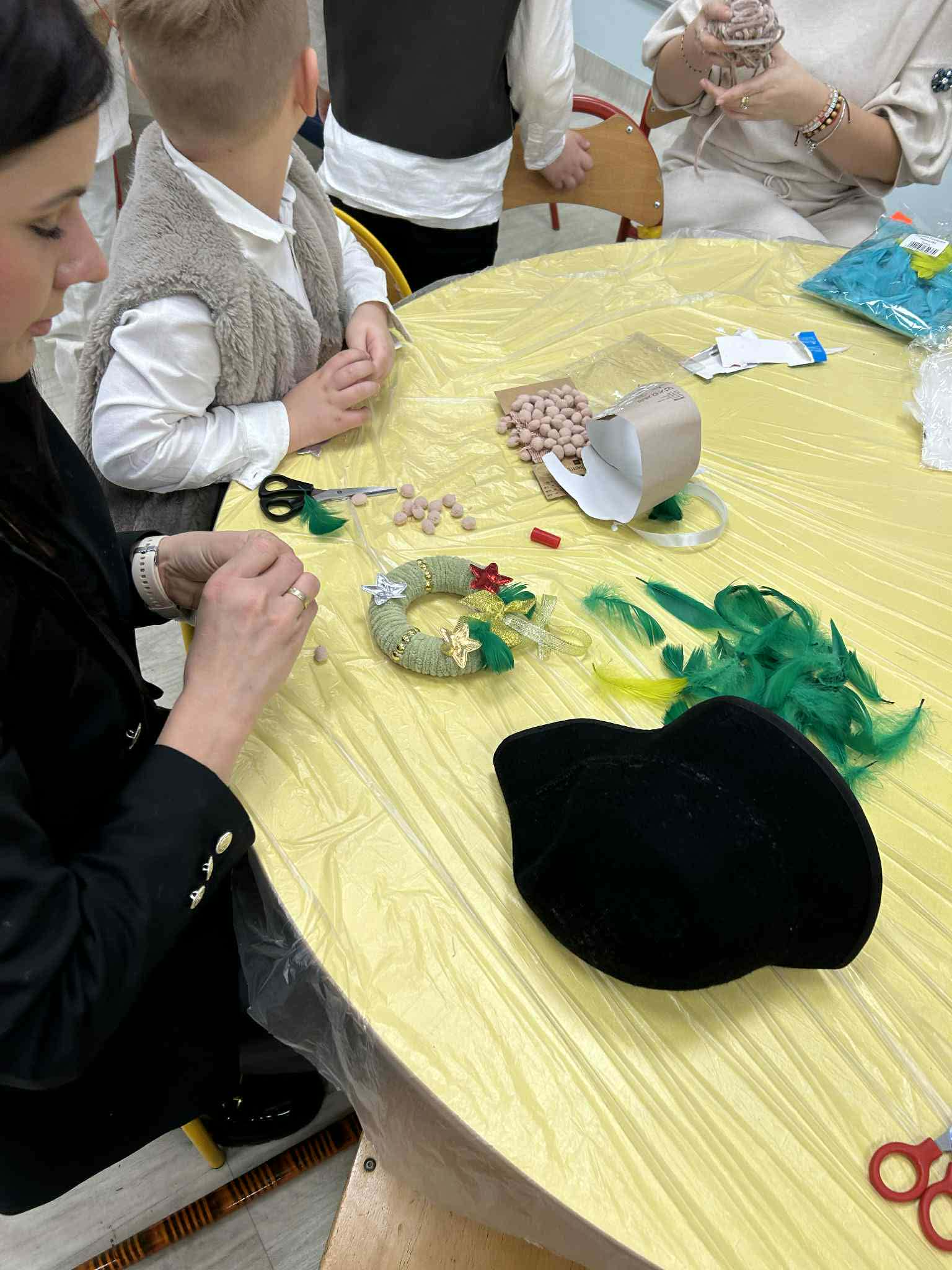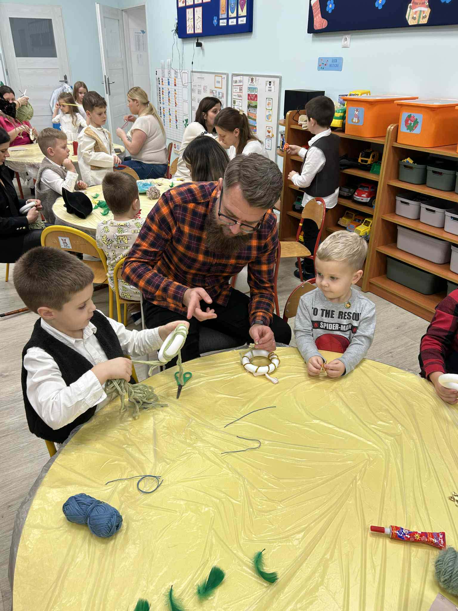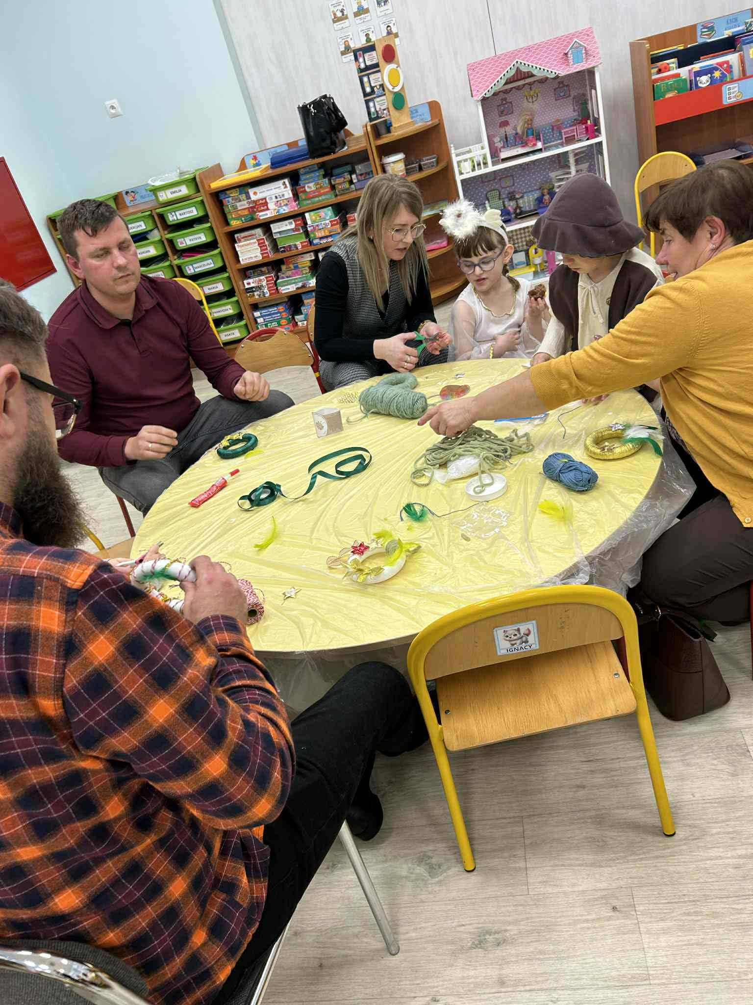 Po części artystycznej zaprosiliśmy rodziców do udziału w rodzinnych warsztatach świątecznych. W miłej, twórczej atmosferze powstawały świąteczne ozdoby choinkowe, które dzieci wykonywały wspólnie z rodzicami. Był to wspaniały czas rozmów, współpracy i radości z wspólnego tworzenia.