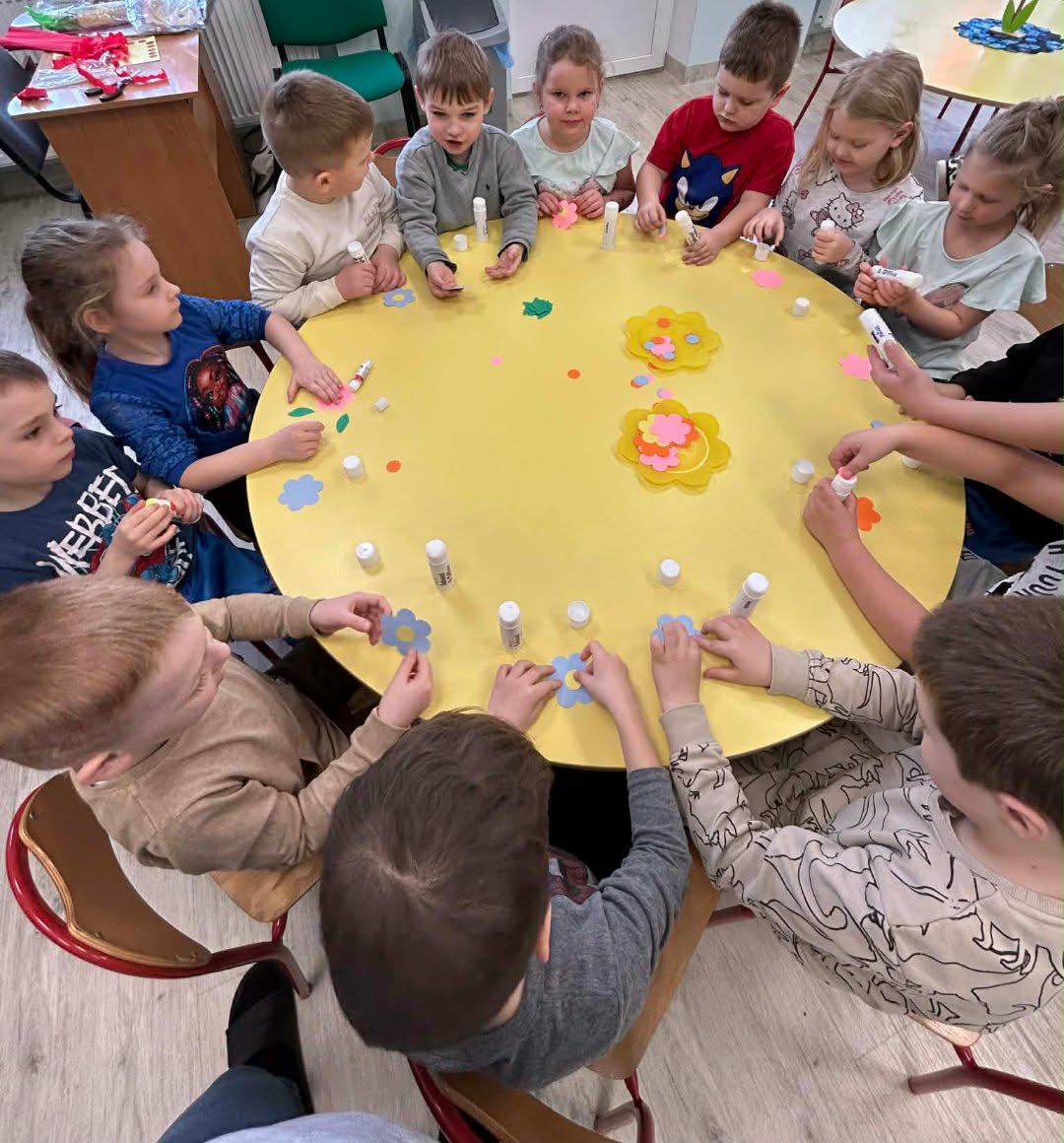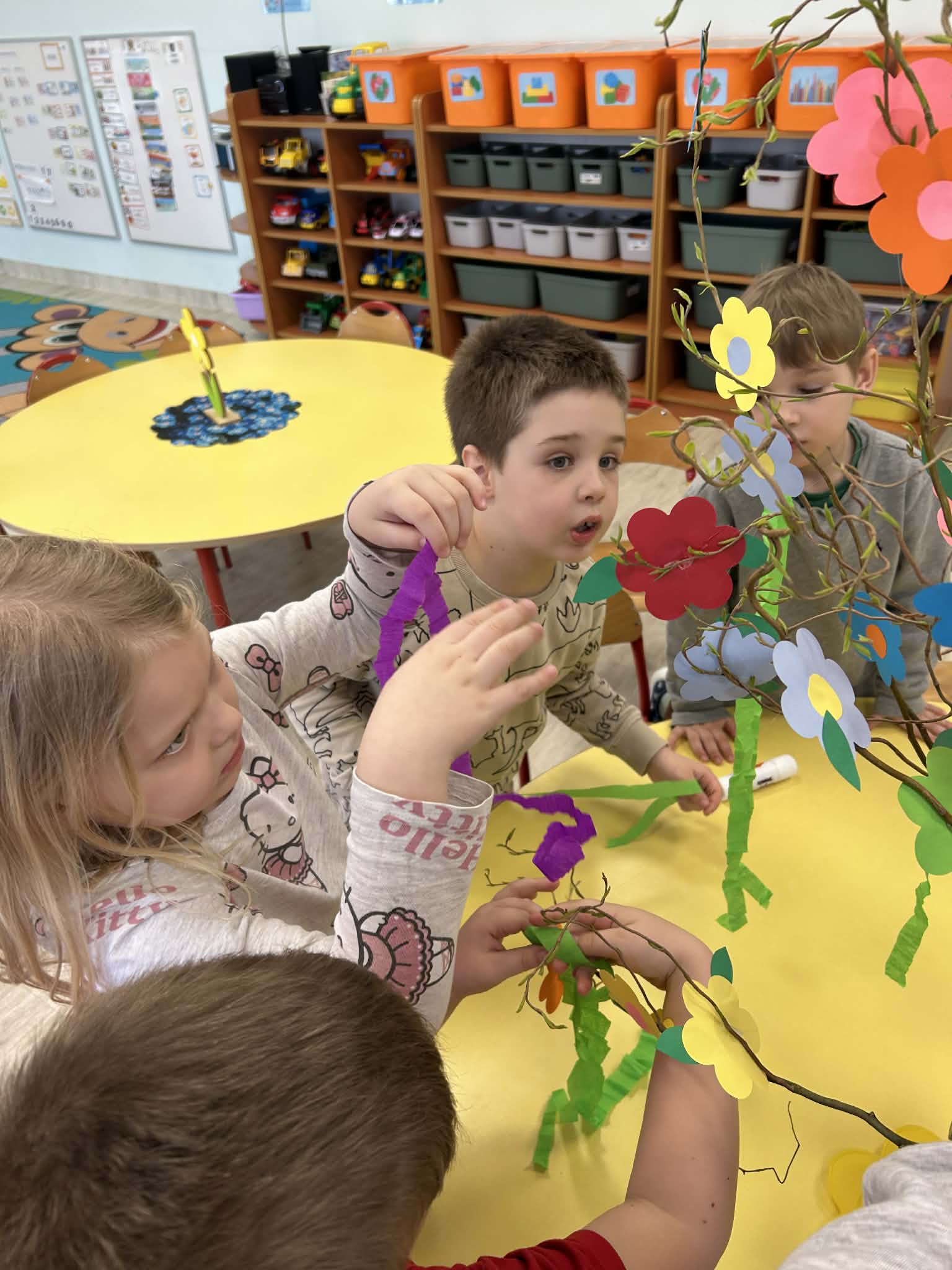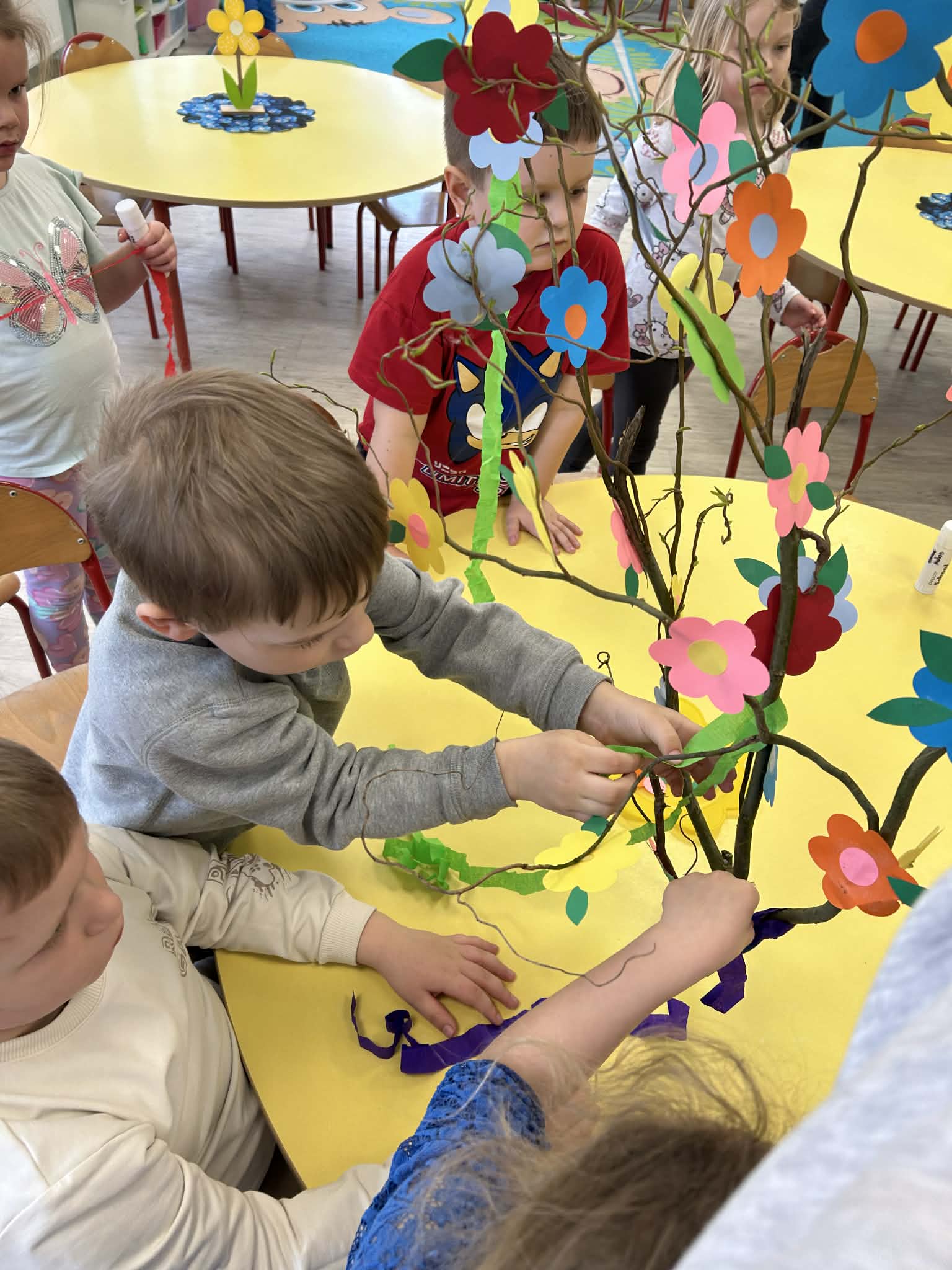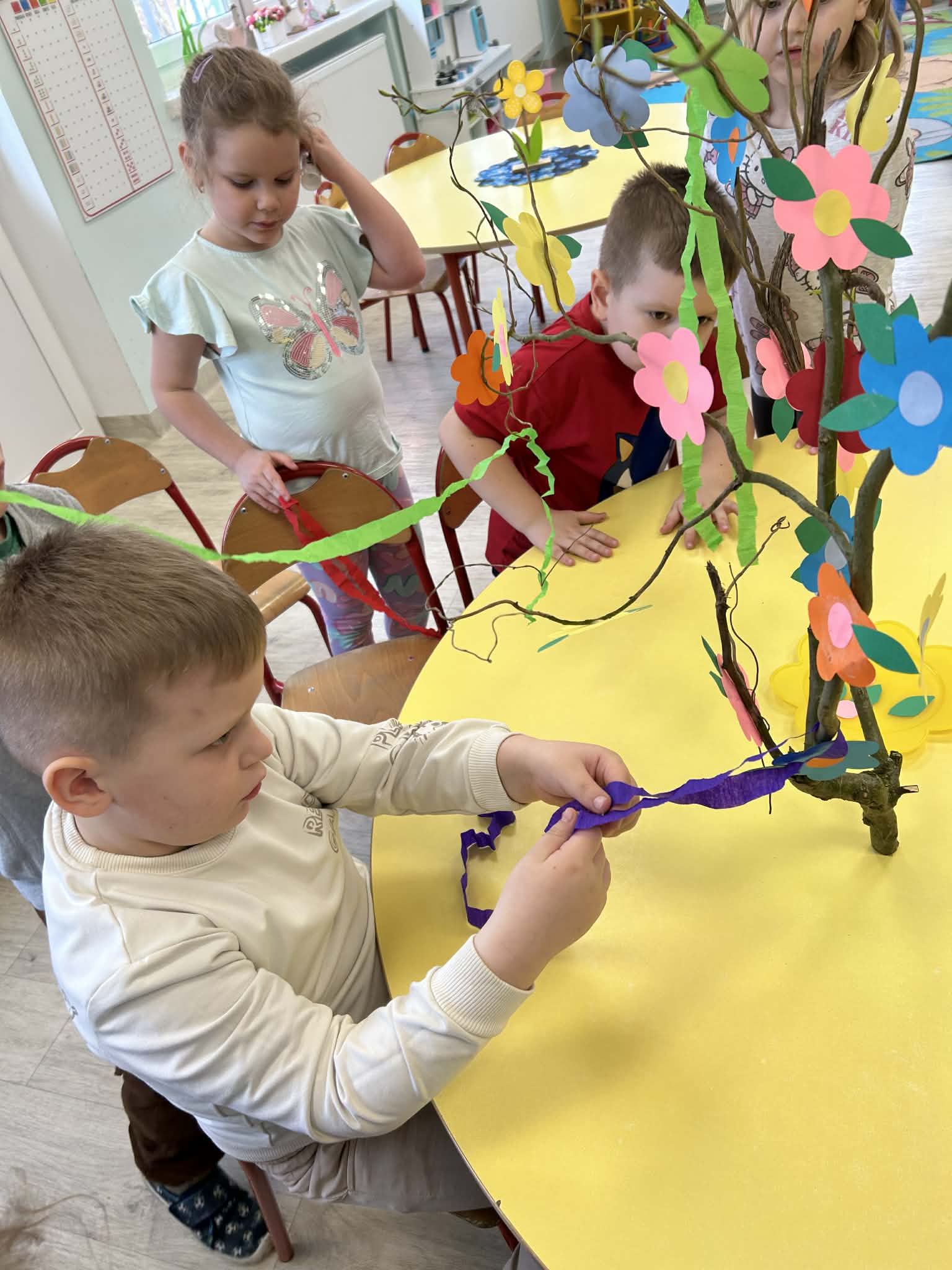 Niezapominajki samodzielnie stworzyły piękny, kolorowy gaik. Wykonały go z ogromnym zaangażowaniem, ozdabiając kwiatkami oraz barwną bibułą. Każdy element to efekt ich pracy, pomysłowości i kreatywności. Już jutro wspólnie przywitamy wiosnę, a nasz wyjątkowy gaik będzie towarzyszył nam podczas tego radosnego wydarzenia.