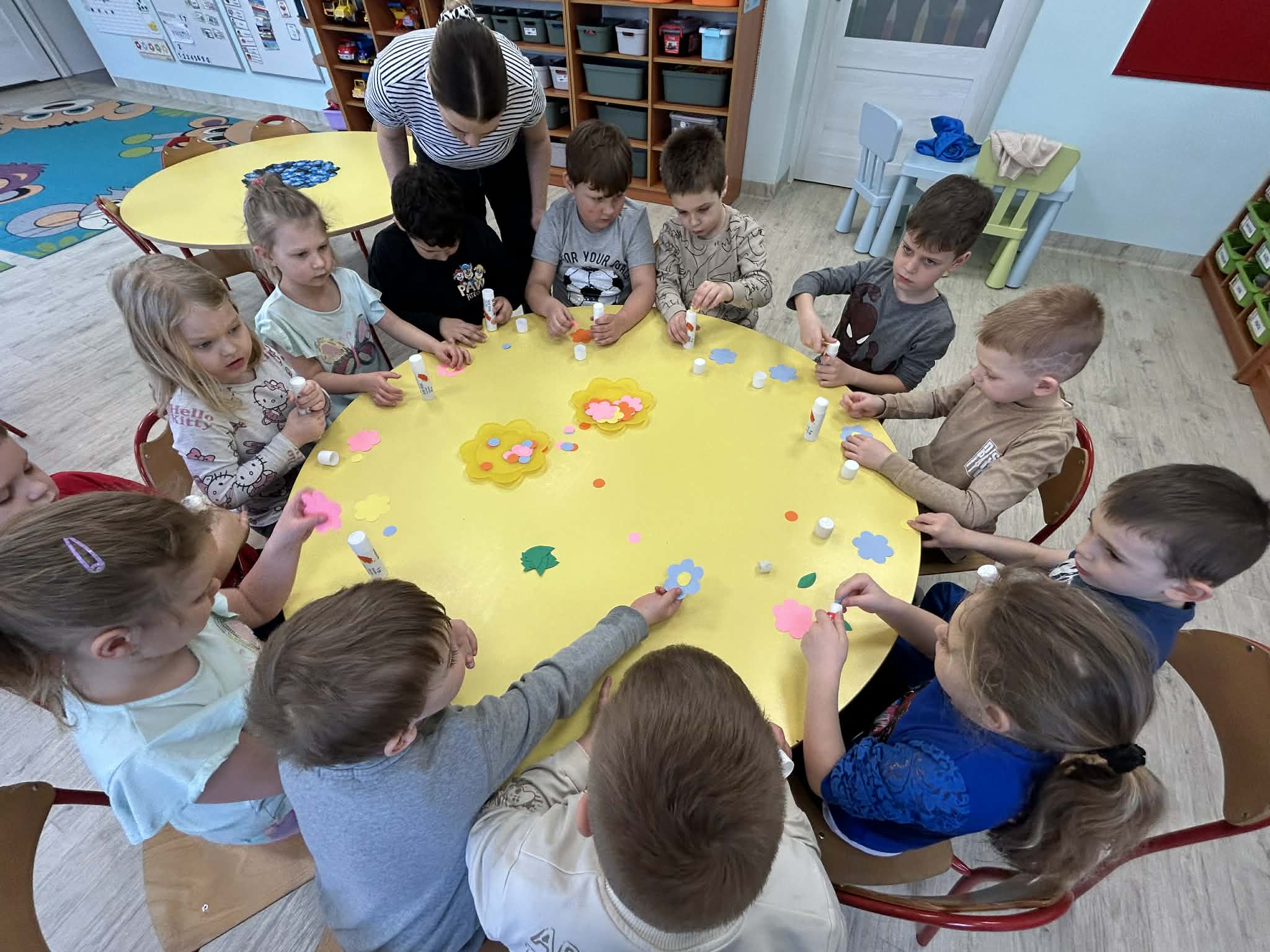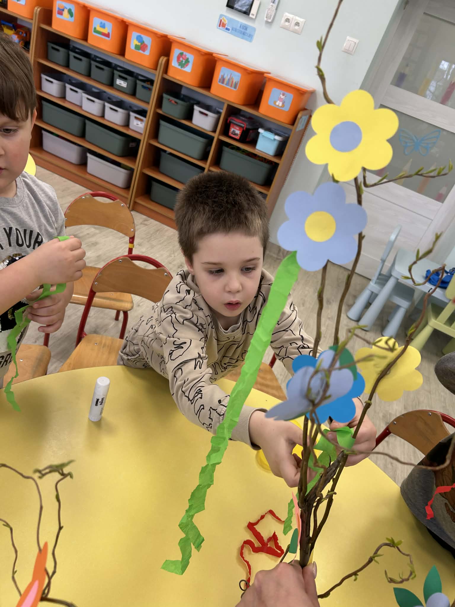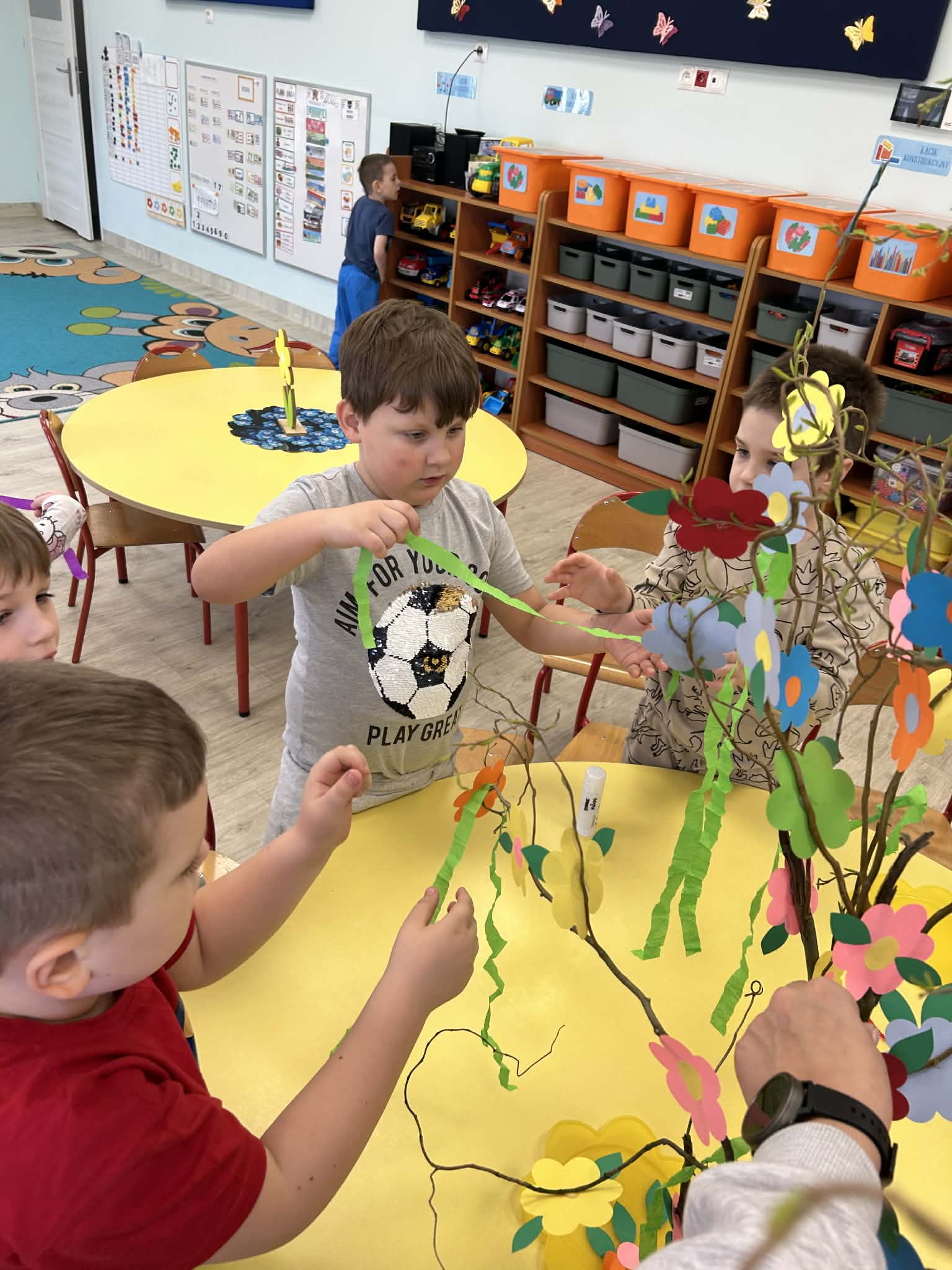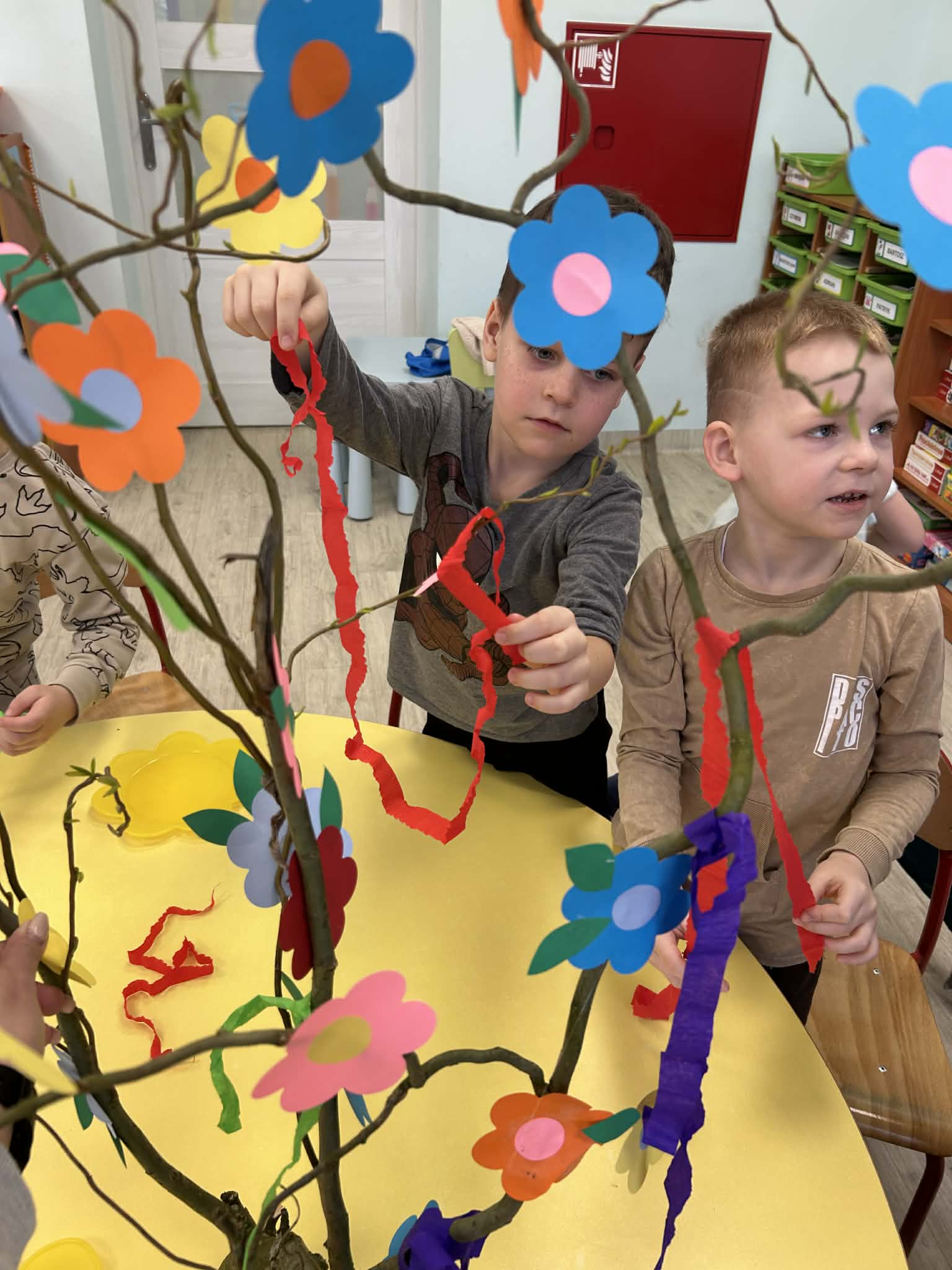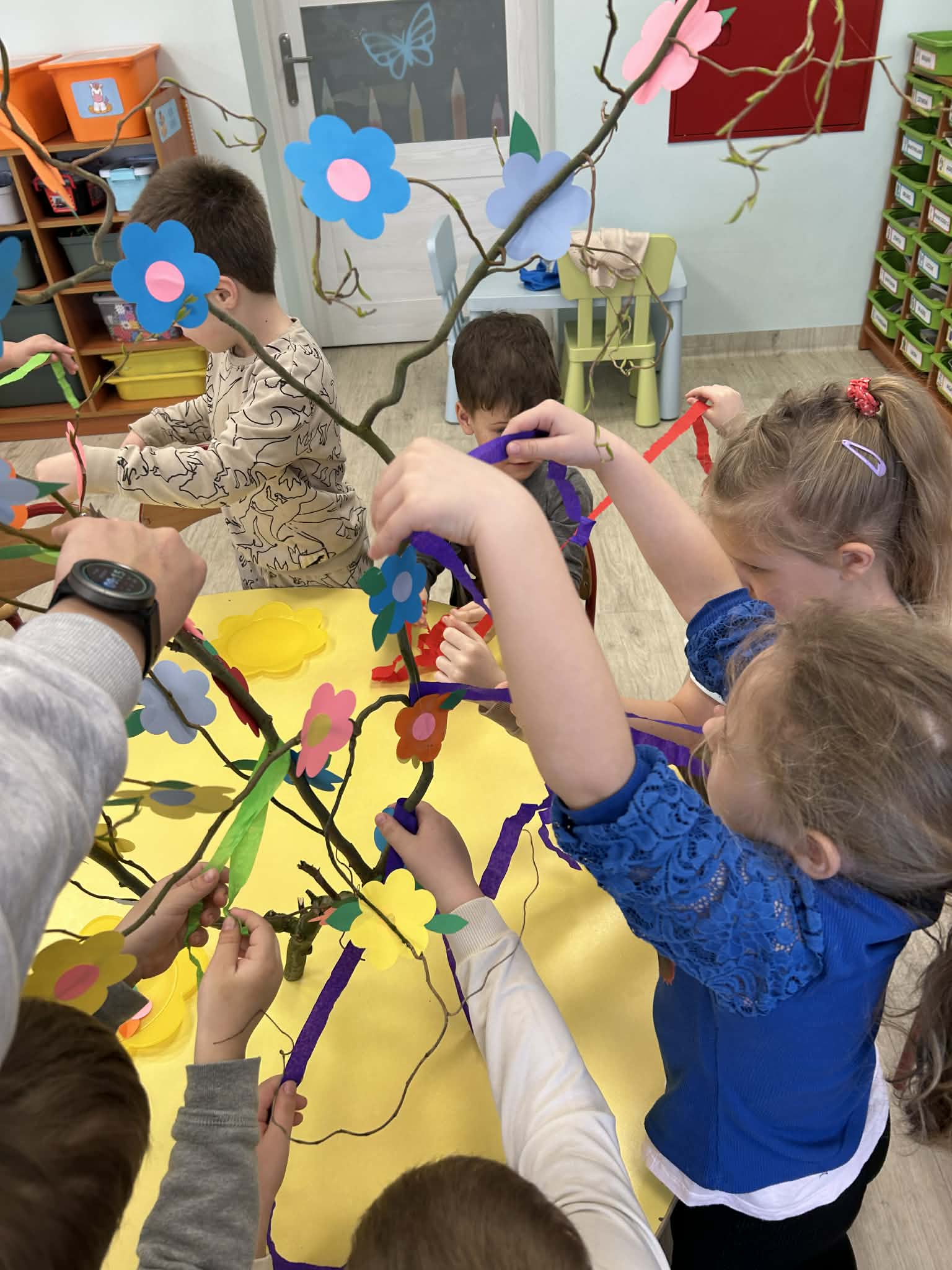 Niezapominajki samodzielnie stworzyły piękny, kolorowy gaik. Wykonały go z ogromnym zaangażowaniem, ozdabiając kwiatkami oraz barwną bibułą. Każdy element to efekt ich pracy, pomysłowości i kreatywności. Już jutro wspólnie przywitamy wiosnę, a nasz wyjątkowy gaik będzie towarzyszył nam podczas tego radosnego wydarzenia.