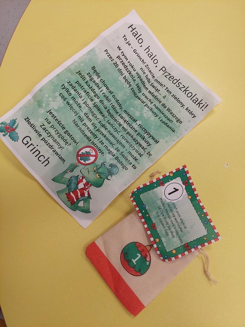 Zaczął się najbardziej magiczny czas oczekiwań. Przygotowując się do świąt dzieci będą miały zadania do wykonania w przedszkolnym kalendarzu adwentowym, jednak nie będzie łatwo bo psocić będzie zielona postać o imieniu Grinch.