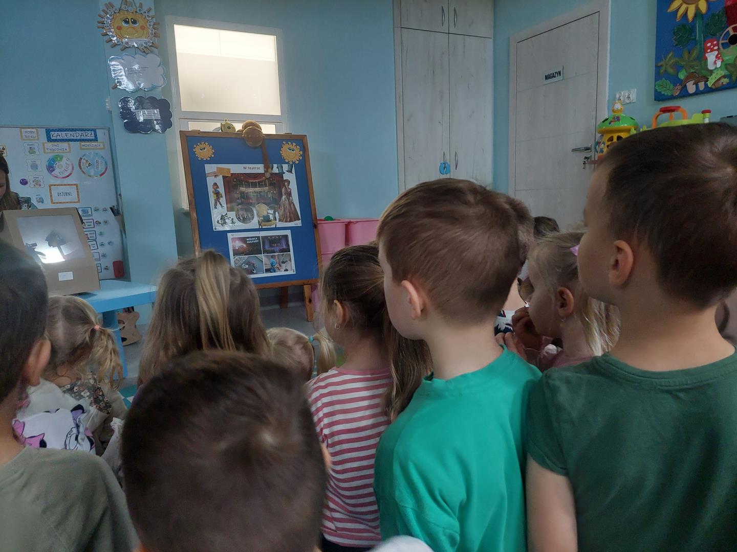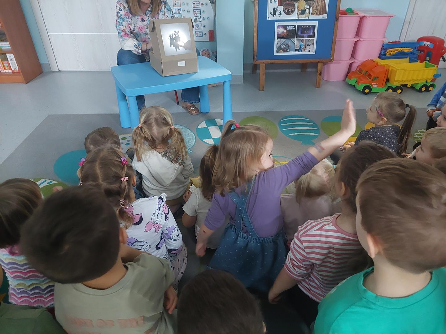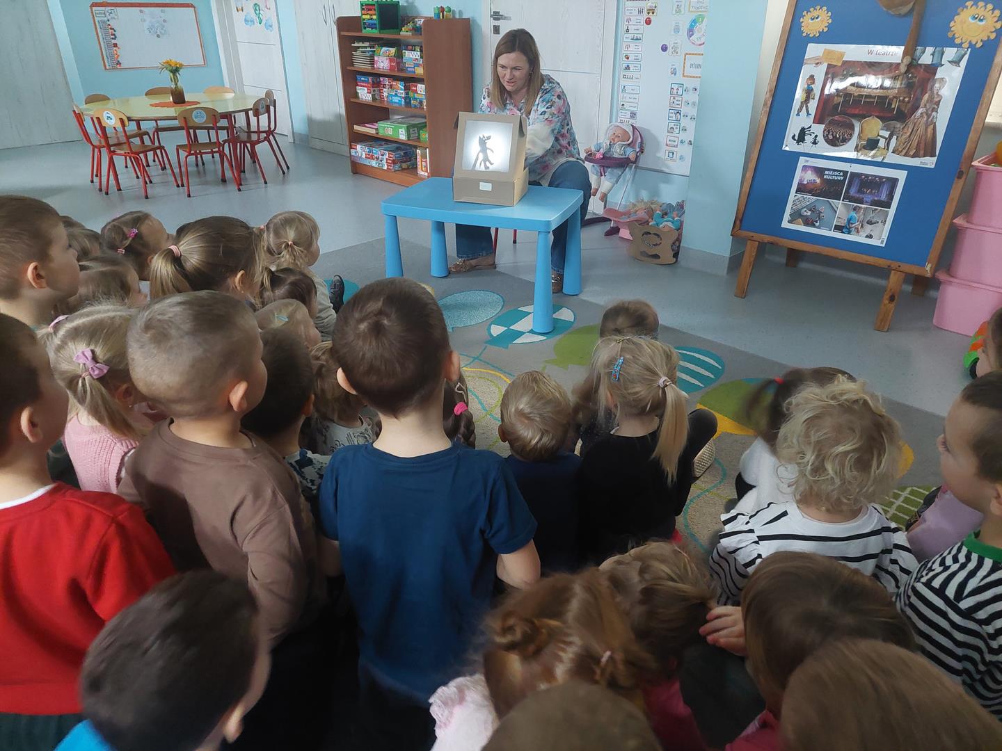 W ubiegłym tygodniu rozmawialiśmy i poznawaliśmy miejsca kultury. Przypomnieliśmy sobie jak powinniśmy się w nich zachować. Zapoznaliśmy się z wieloma postaciami z bajki, wspólnie poznaliśmy też kilka baśni. Mieliśmy okazję zrobić teatrzyk cieni oraz przedstawić bajkę za pomocą pacynek.