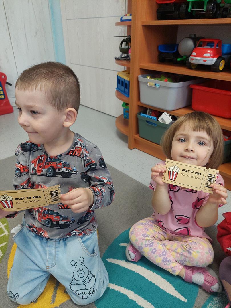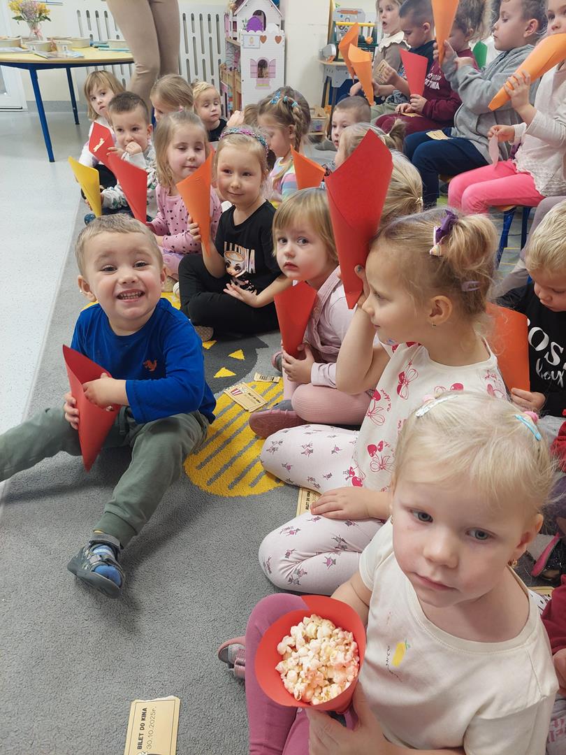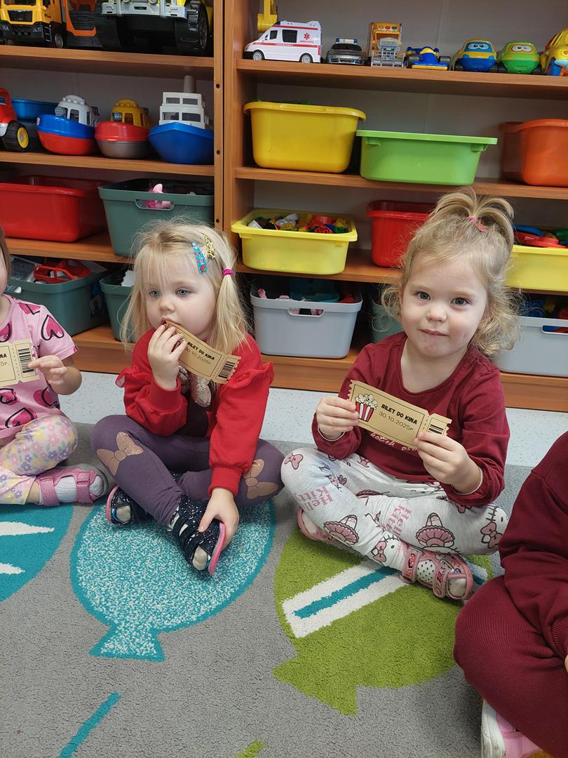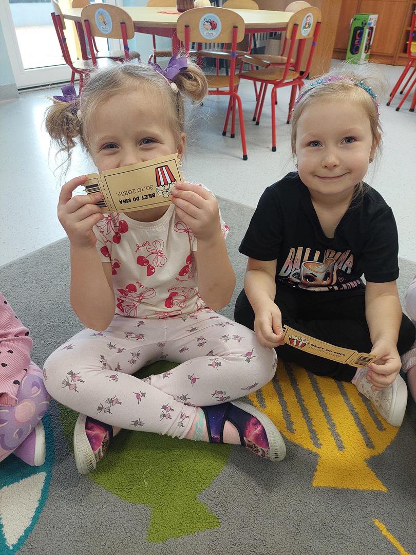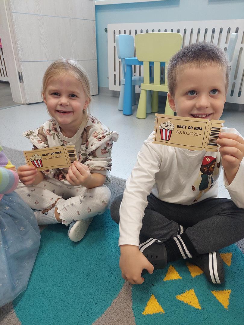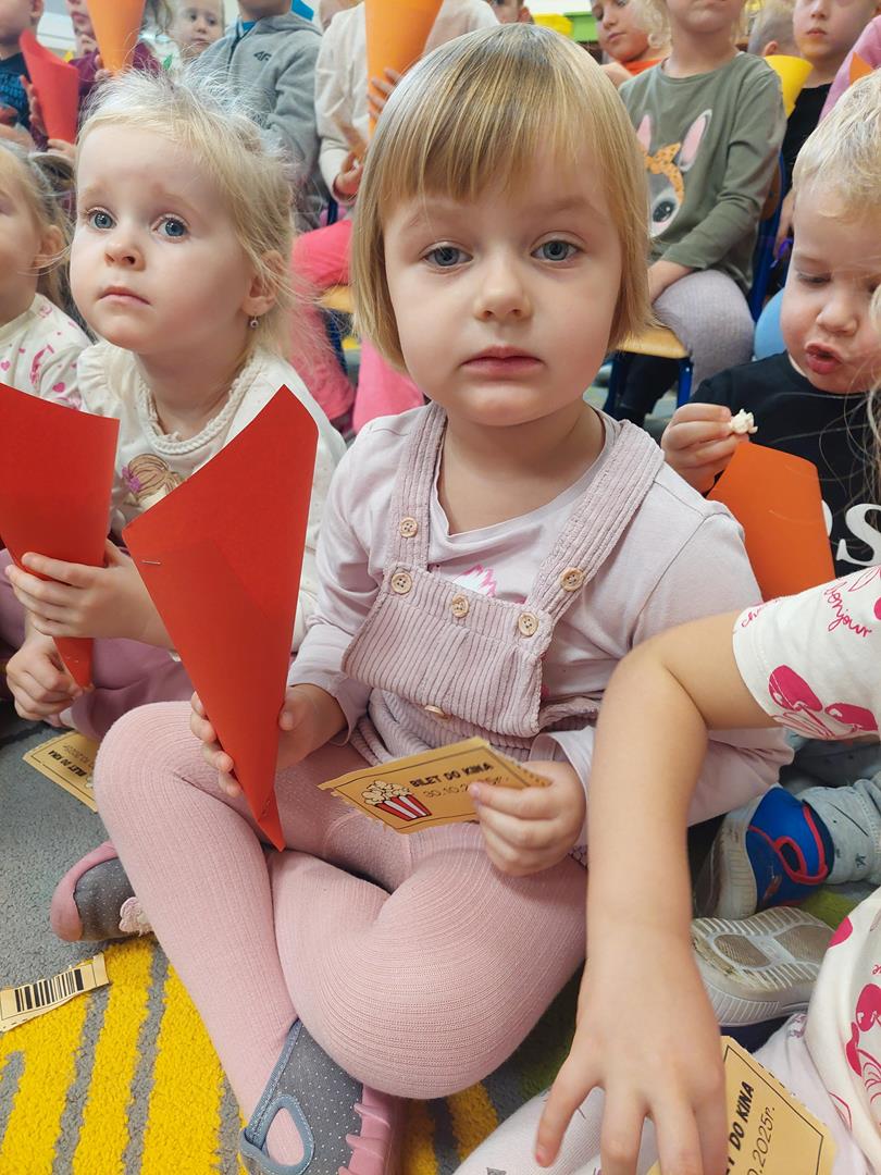 Wraz z grupą sąsiadującą wzięliśmy udział w seansie kinowym, oczywiście nie mogło zabraknąć biletów do kina i pysznego świeżego popcornu.