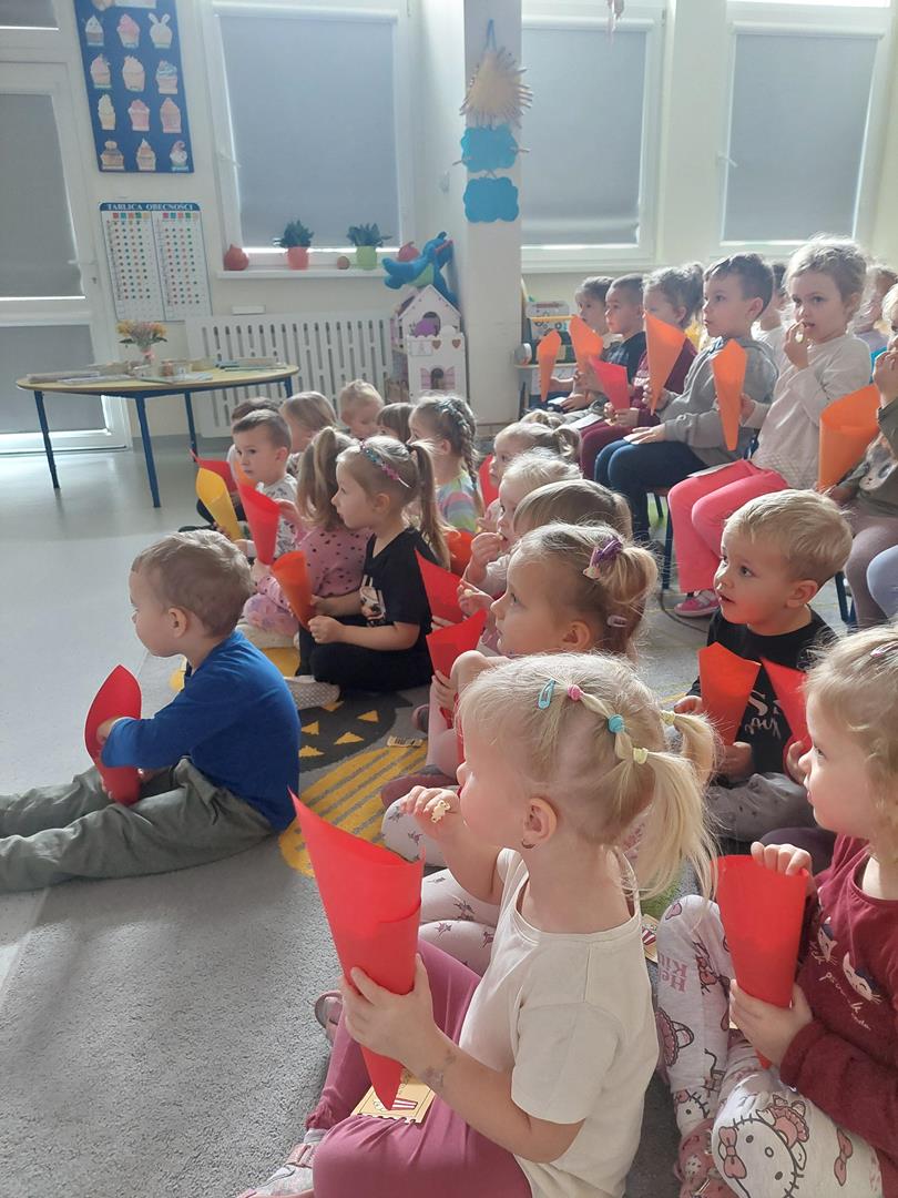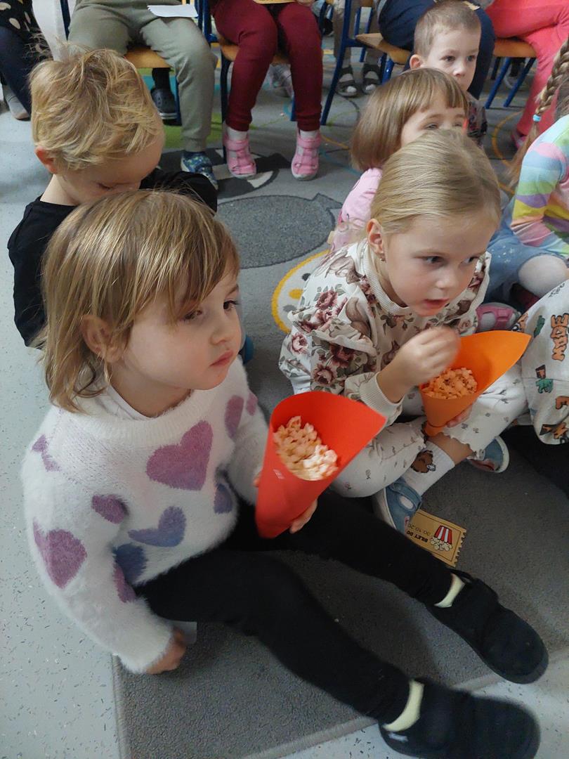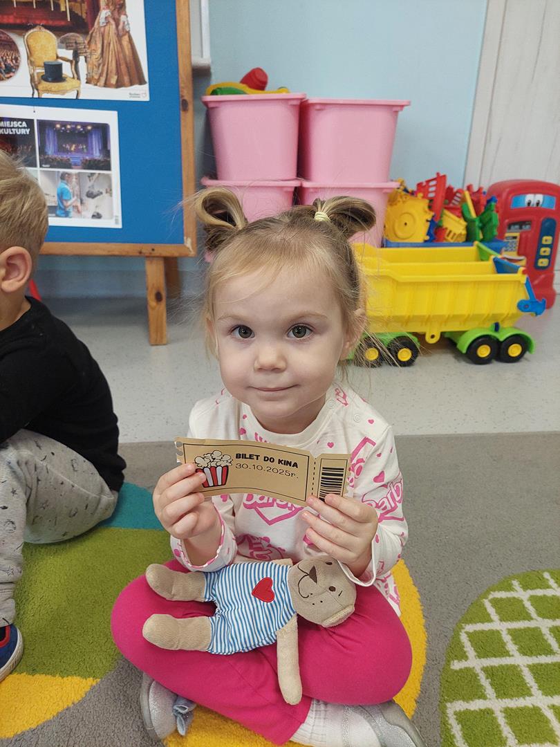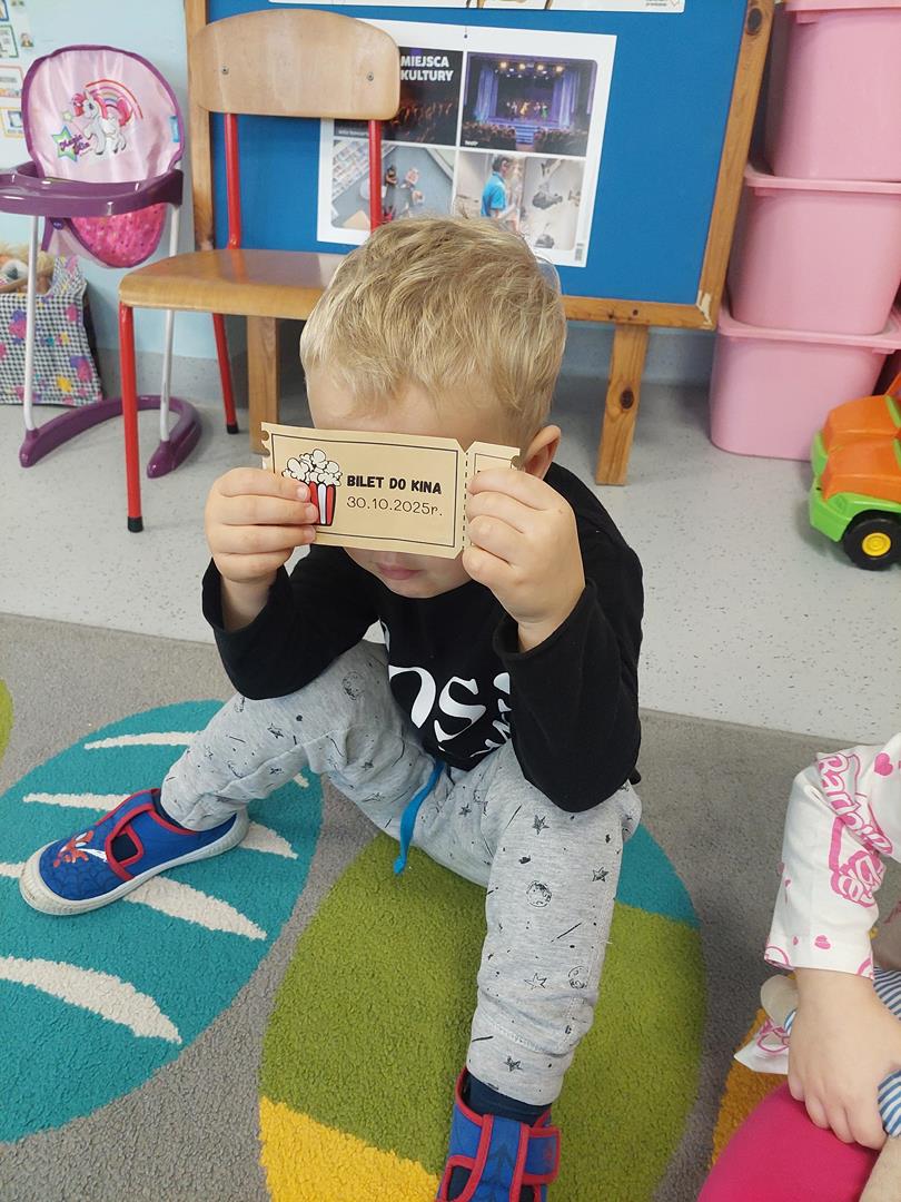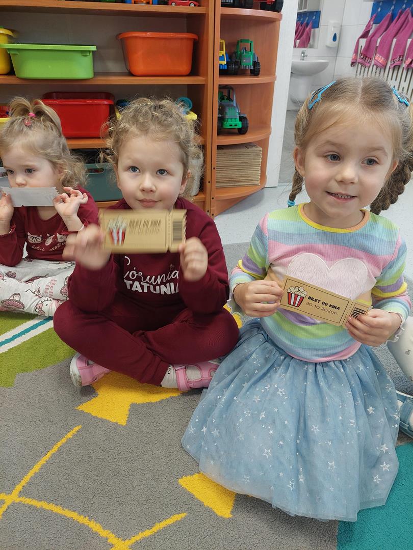 Wraz z grupą sąsiadującą wzięliśmy udział w seansie kinowym, oczywiście nie mogło zabraknąć biletów do kina i pysznego świeżego popcornu.