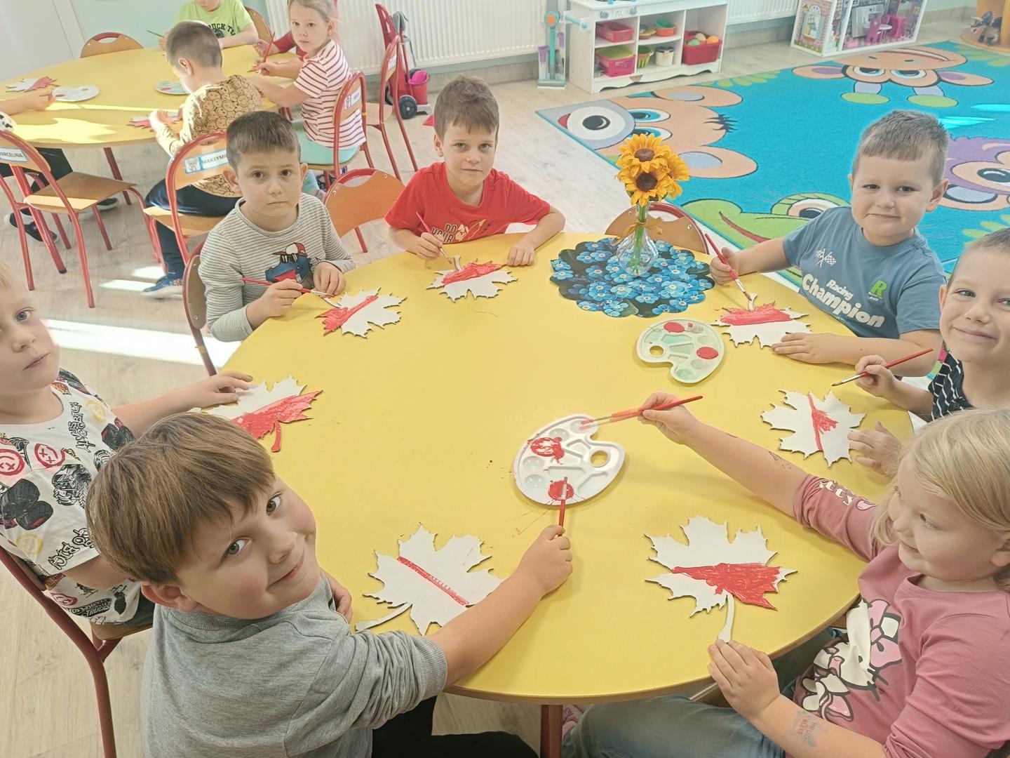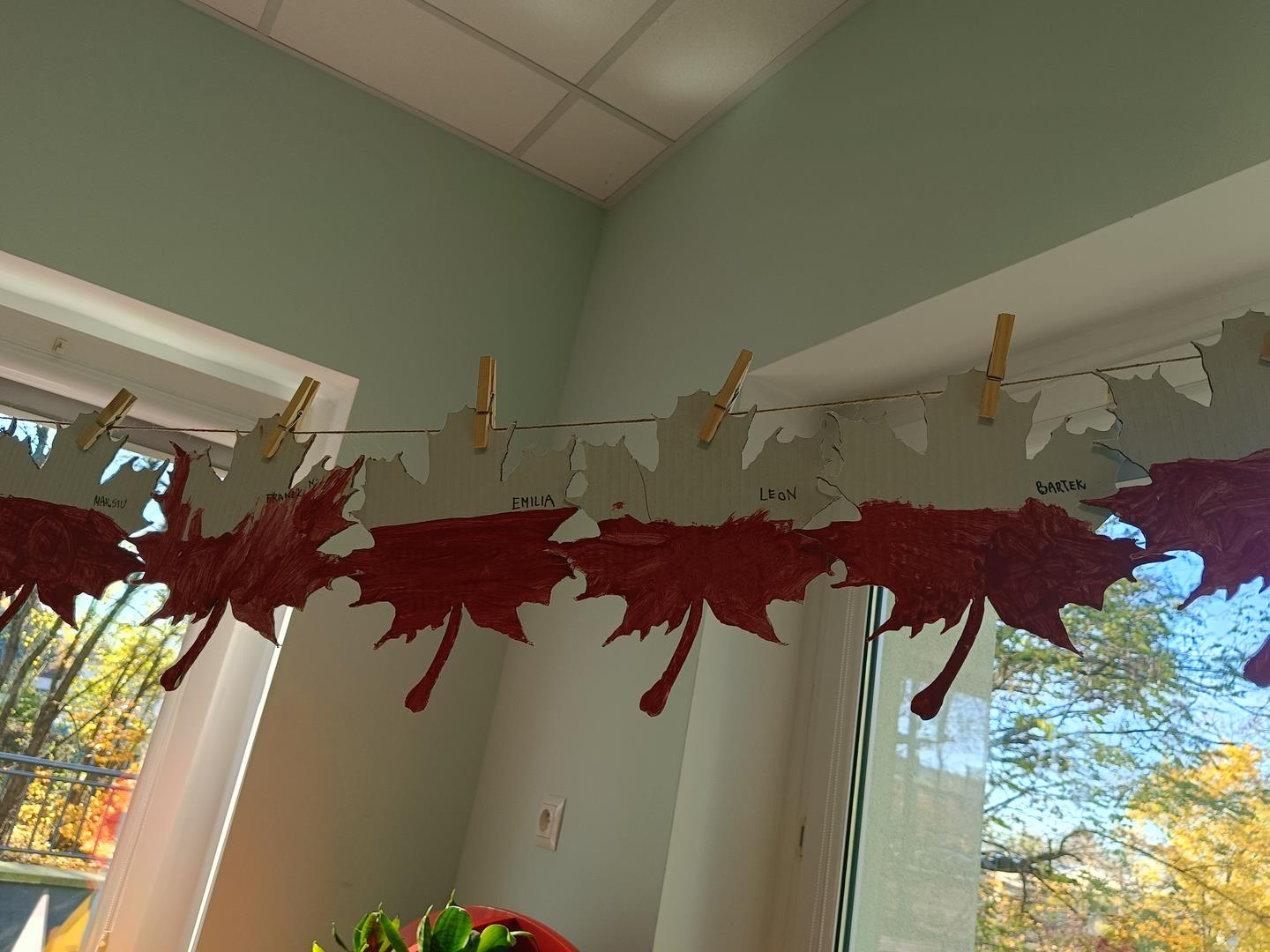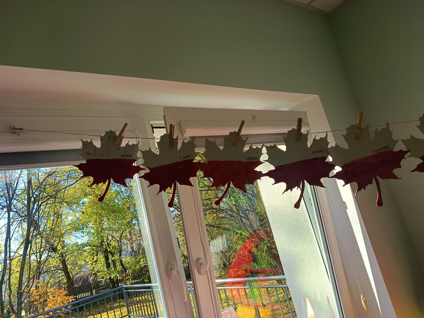 W naszej grupie odbywają się zajęcia dotyczące Polski. Dzieci poznały historię związaną z dniem 11 listopada. Pani pokazywała dzieciom na mapie, gdzie znajdują się góry, morze, niziny i wyżyny, a także opowiadała o naszych sąsiadach. Przedszkolaki z dużym zainteresowaniem słuchały i wskazywały poznane miejsca na mapie. Na zakończenie zajęć dzieci wykonały pracę plastyczną – pomalowały tekturowe liście w barwach biało-czerwonych, nawiązując do flagi naszego państwa. Zdobią naszą salę i przypominają nam, że jesteśmy patriotami i musimy pamiętać o wszystkich, którzy oddali życie za nasz kraj.