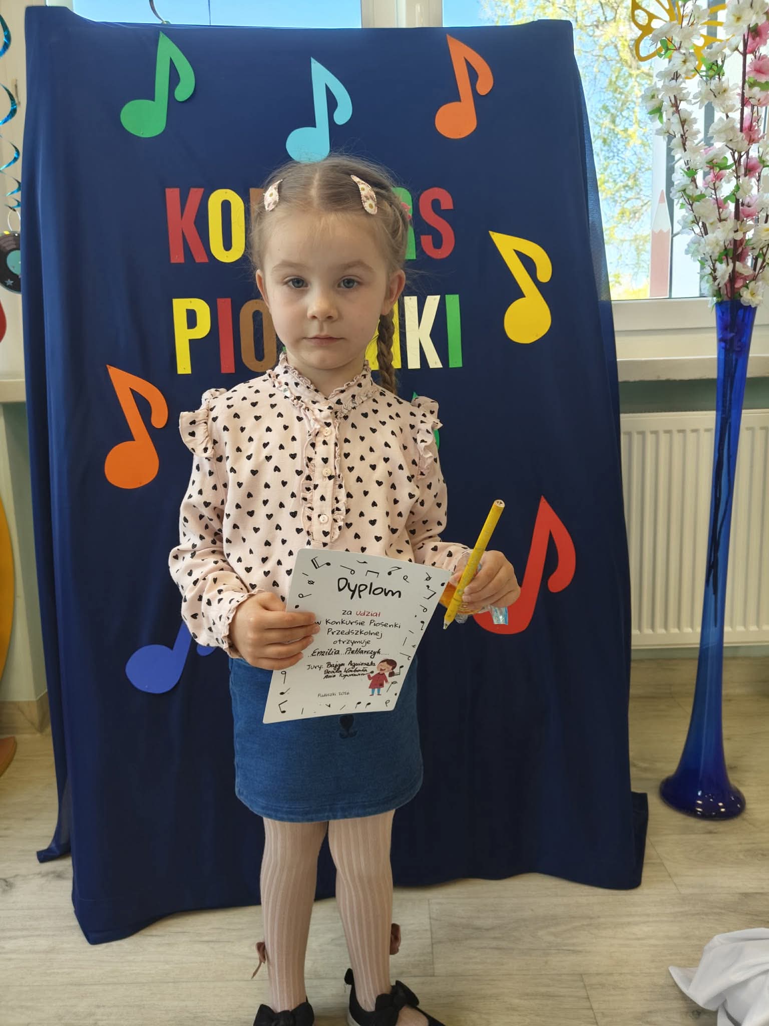 Wszystkie występy były wyjątkowe i pełne zaangażowania. Mali artyści wykazali się ogromną odwagą, a także radością ze wspólnego śpiewania. Każde dziecko zostało nagrodzone brawami, a uczestnicy konkursu otrzymali dyplomy oraz drobne upominki.