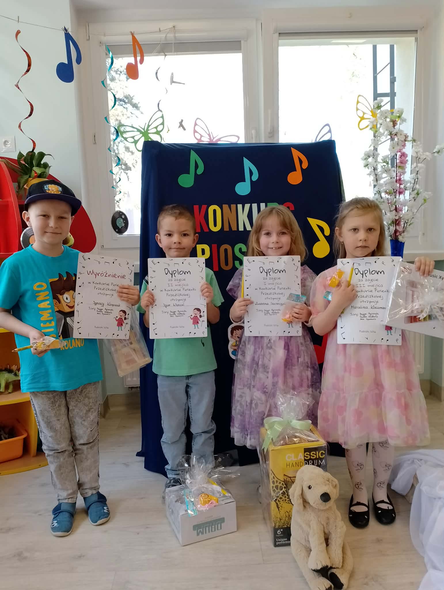 Serdecznie dziękujemy Państwu za wsparcie, przygotowanie dzieci do występu oraz zaangażowanie w życie przedszkola. Dziękujemy również komisji za wyłonienie zwycięzców, gdyż nie było to łatwe zadanie.