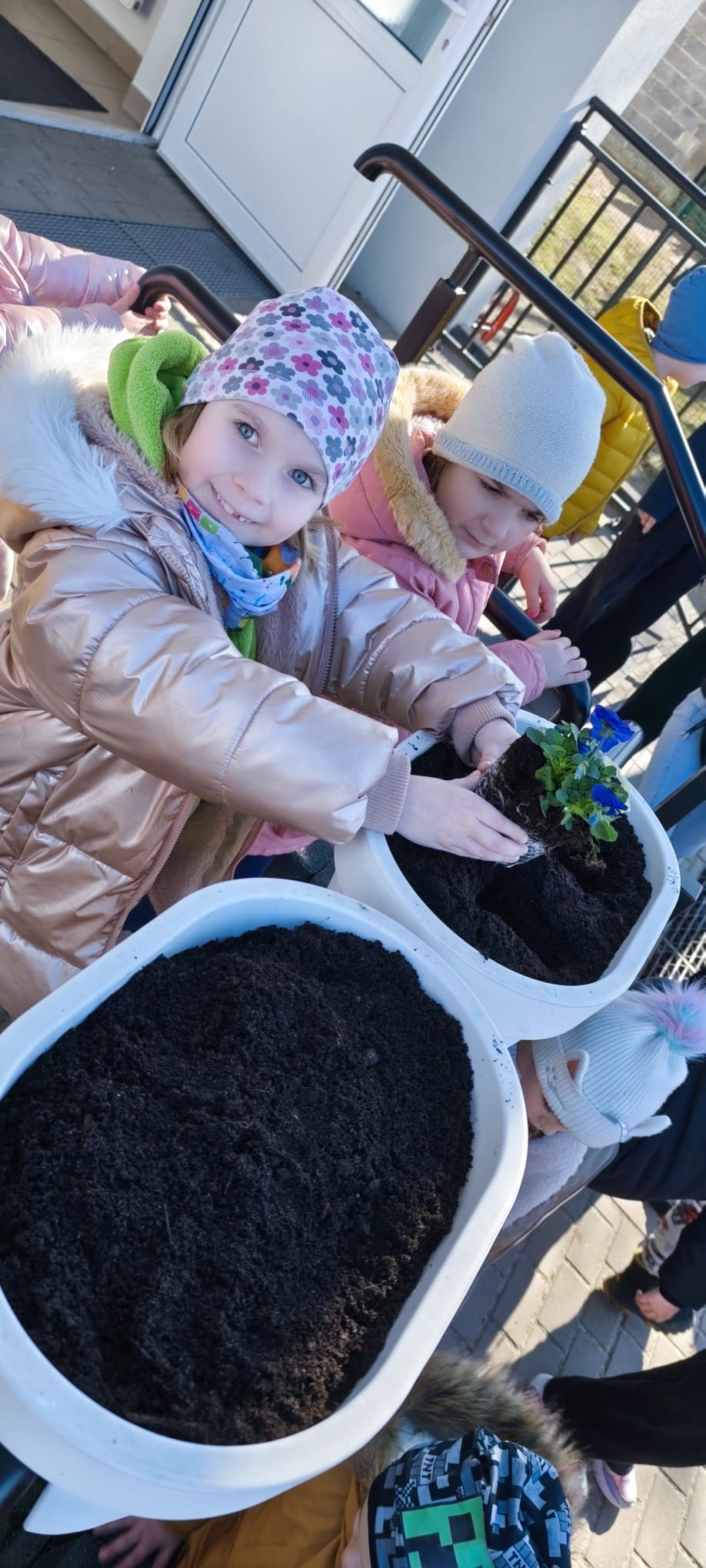 We wtorek dzieci chętnie pomagały Pani Martynie przy sadzeniu kwiatów. Dziękujemy za możliwość obserwacji i obiecujemy pomagać dbać o kwiatki. ?