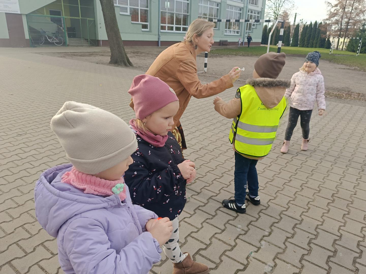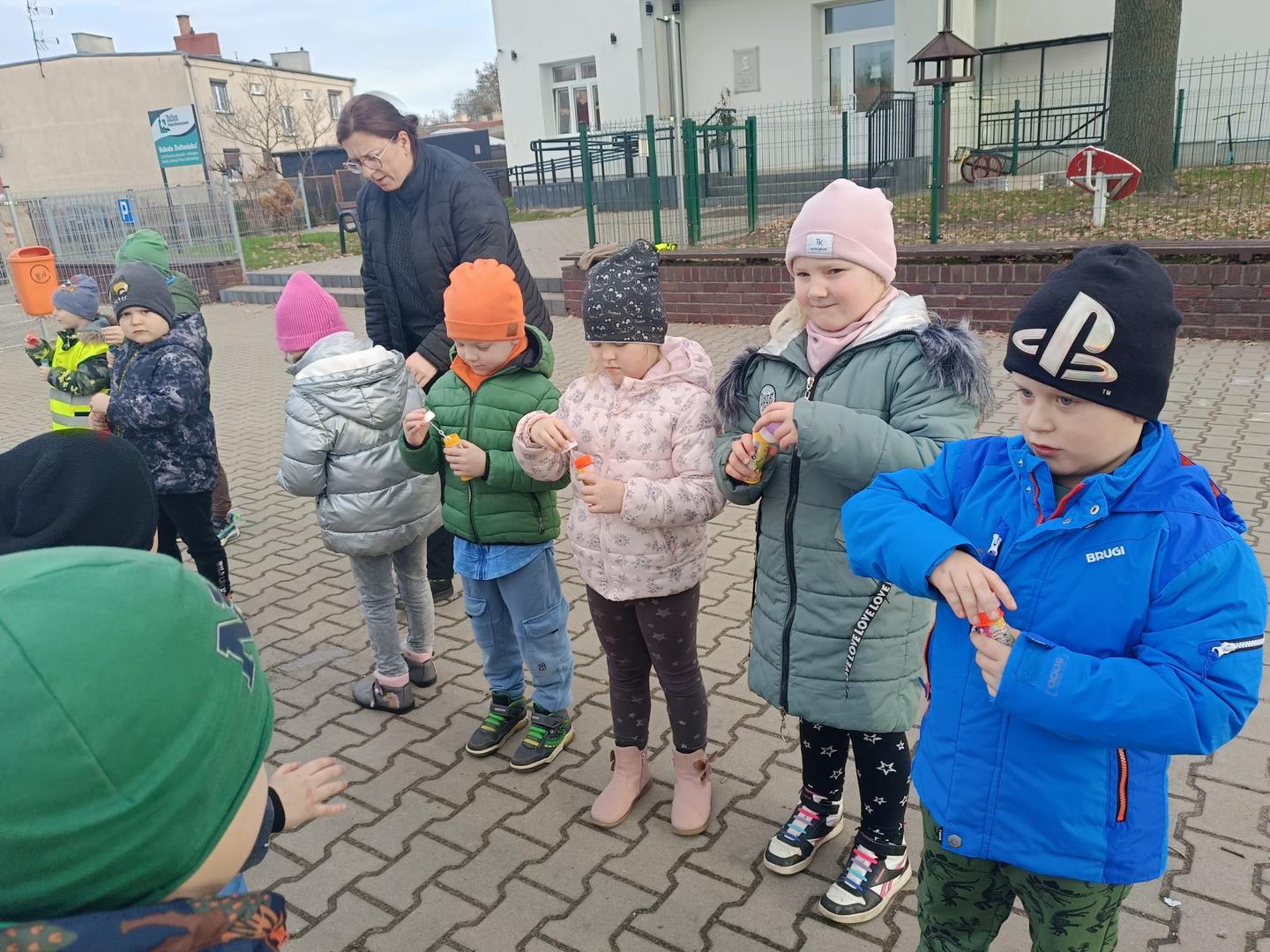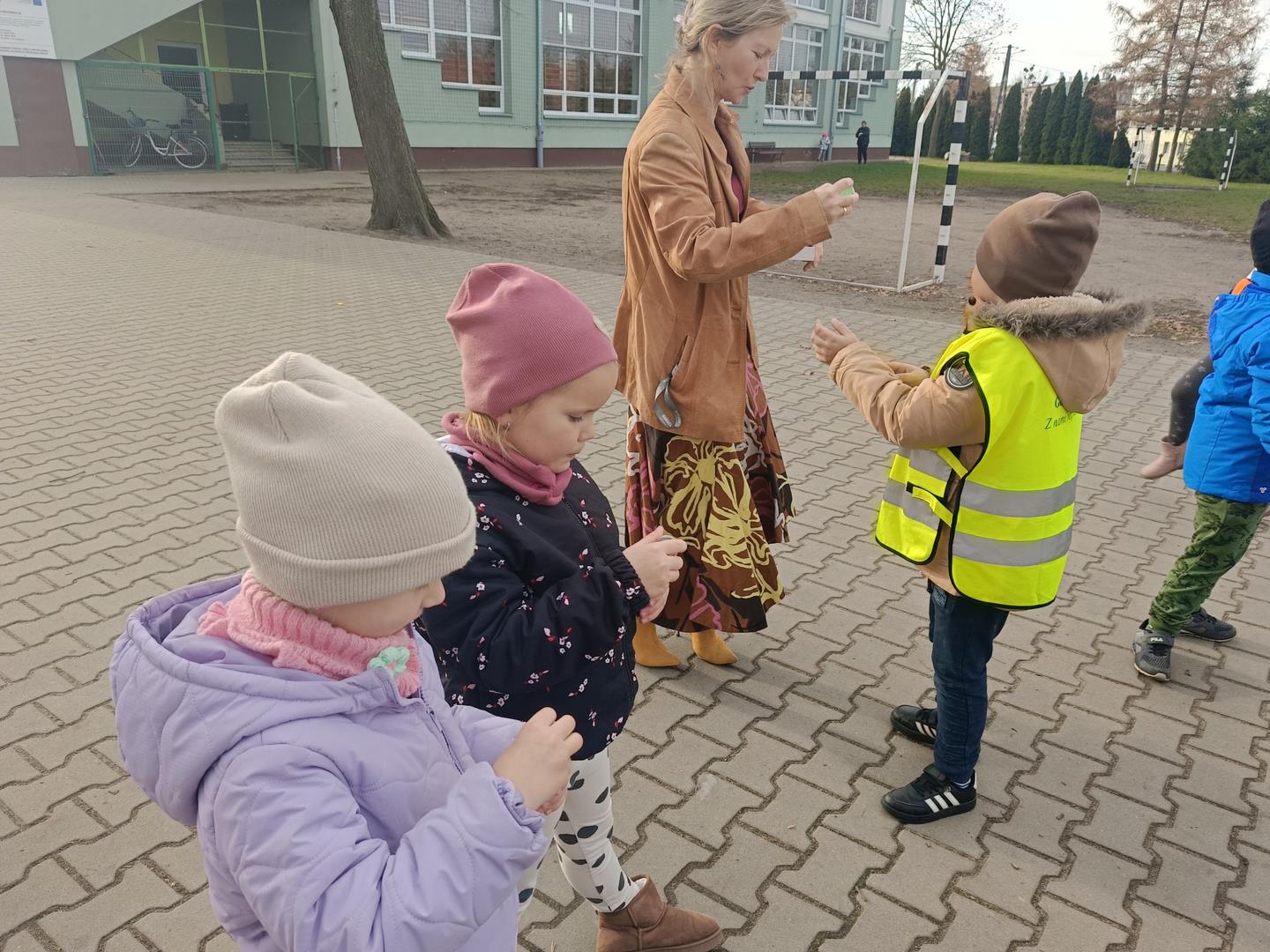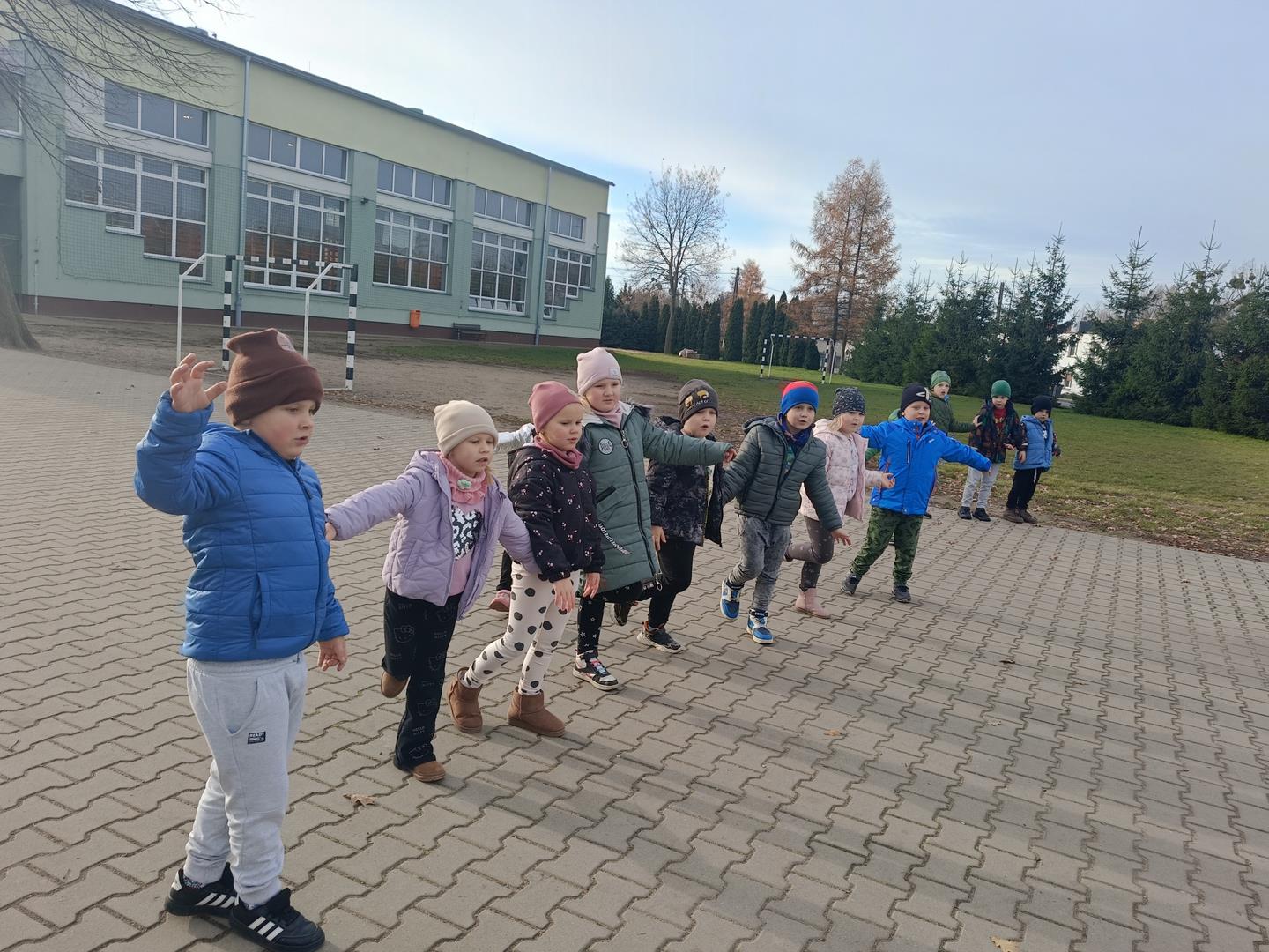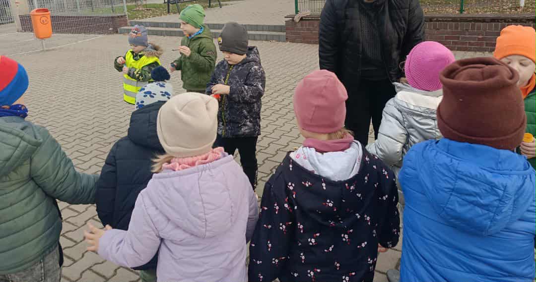 Dziś nasze przedszkolaki uczestniczyły w wyjątkowych zajęciach logopedycznych prowadzonych przez szkolnego logopedę — tym razem na dworze!