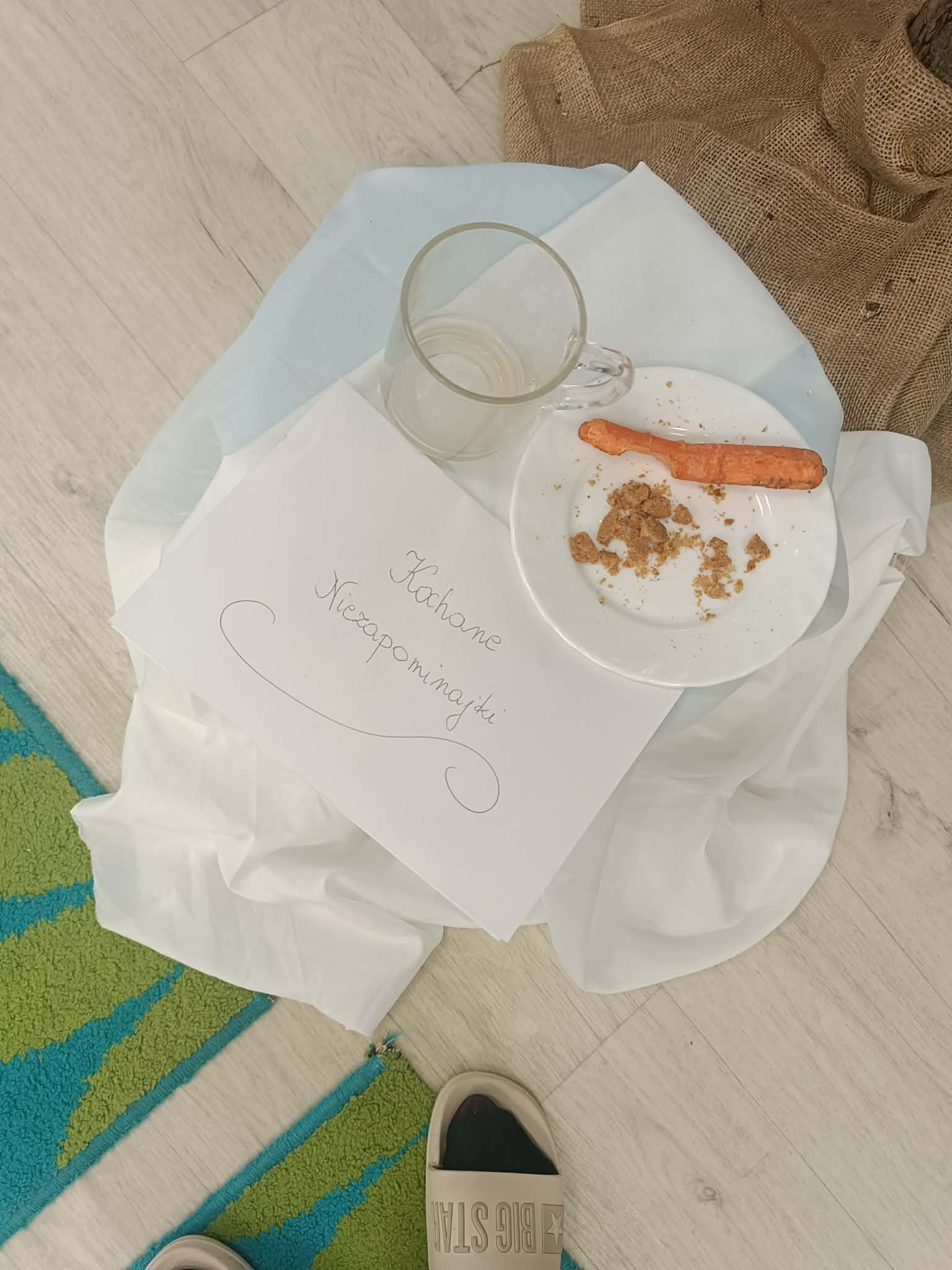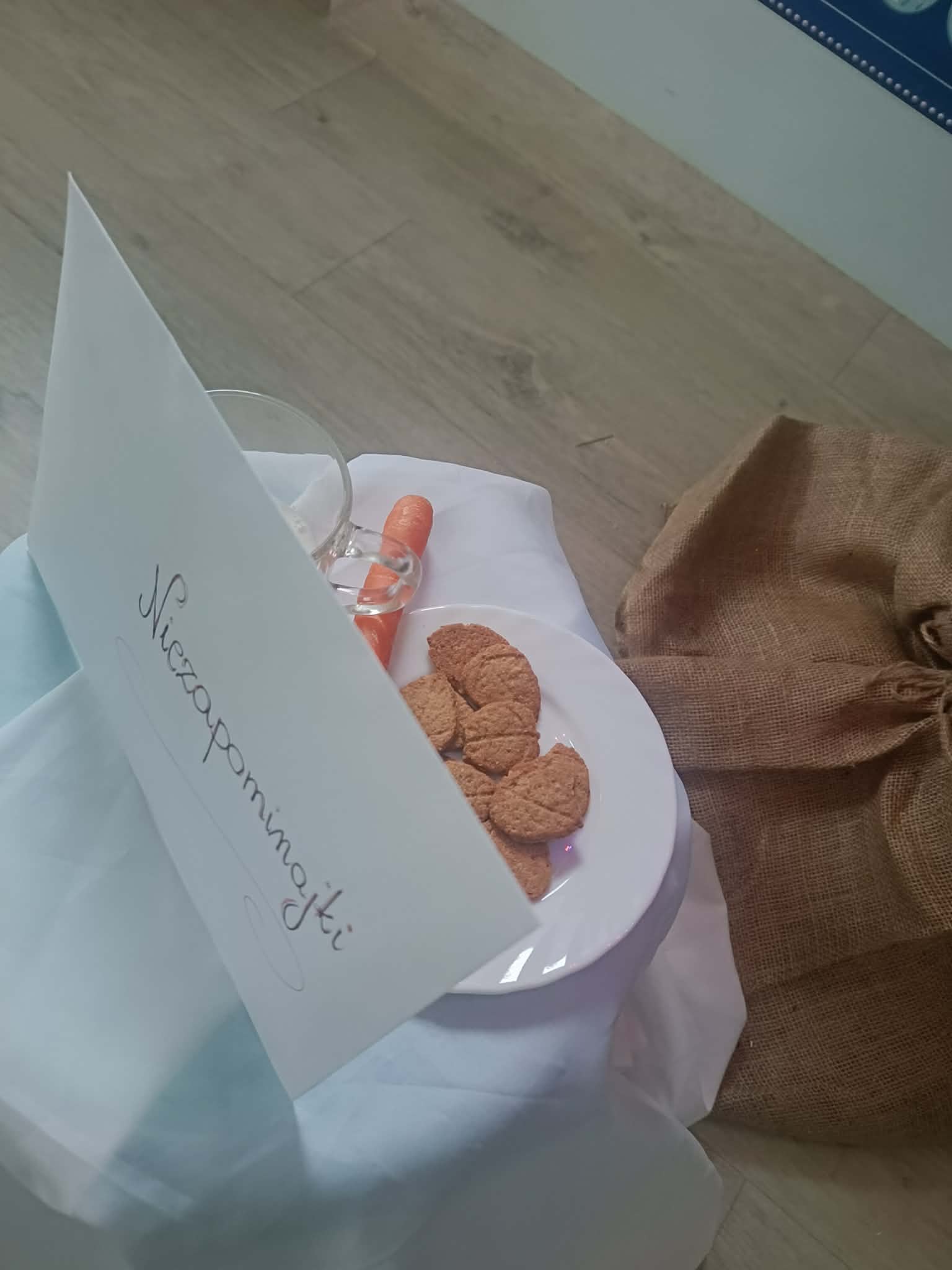 Wczoraj po południu, przed zamknięciem przedszkola, dzieci przygotowały dla wyjątkowych gości niespodziankę — zostawiły mleko, ciastko oraz marchewkę dla Mikołaja i jego dzielnego renifera Rudolfa.