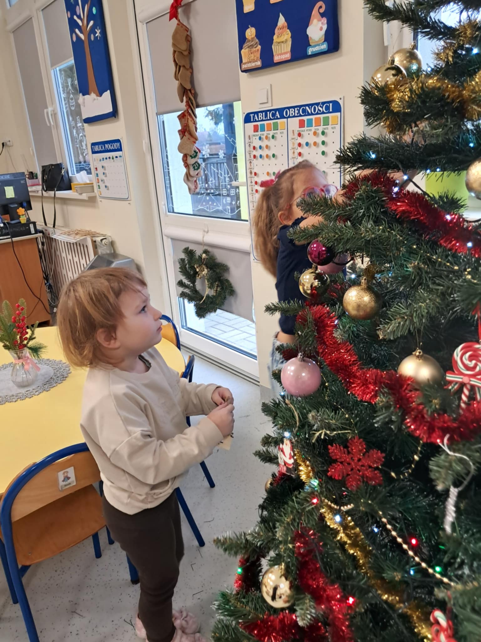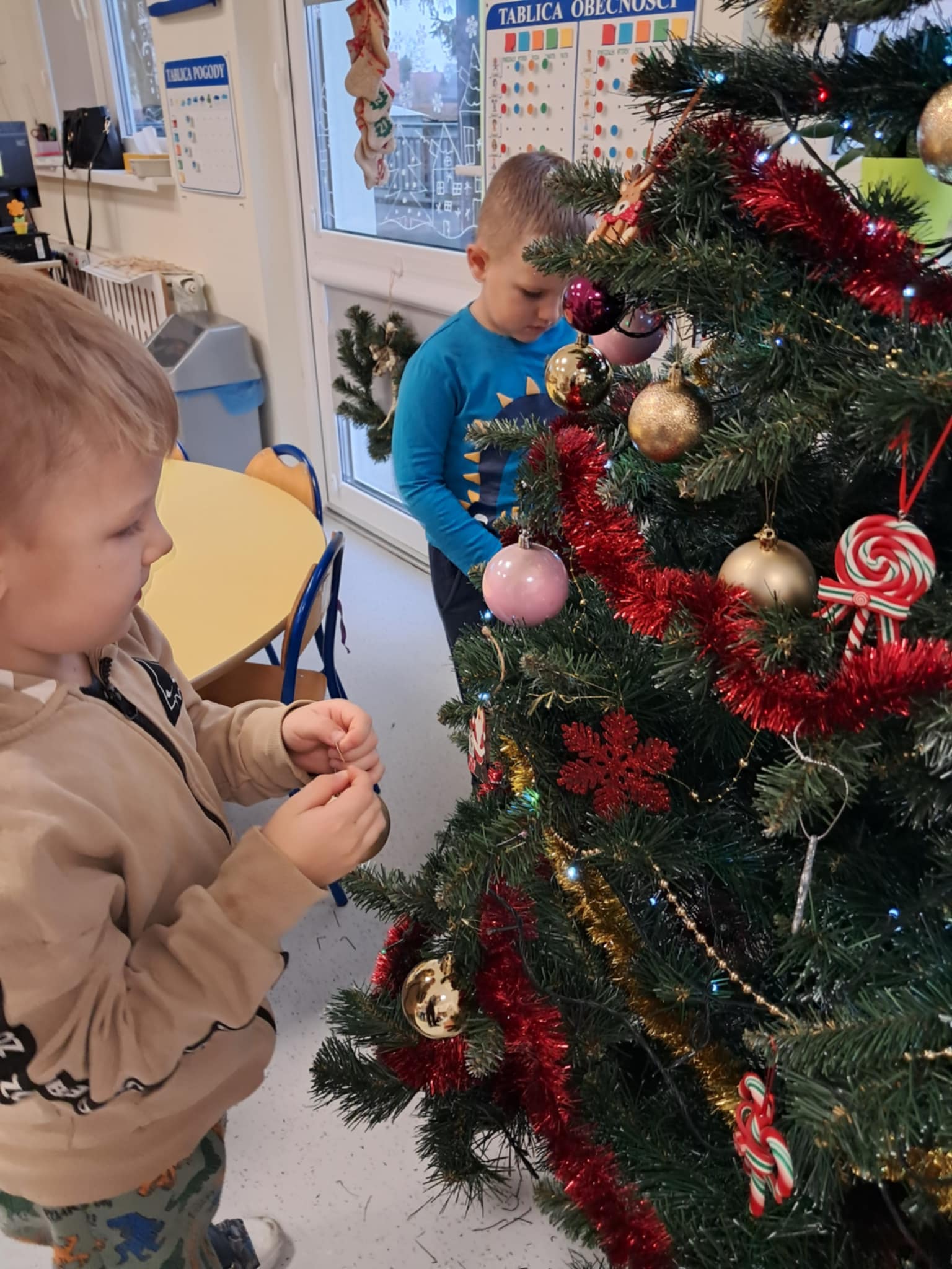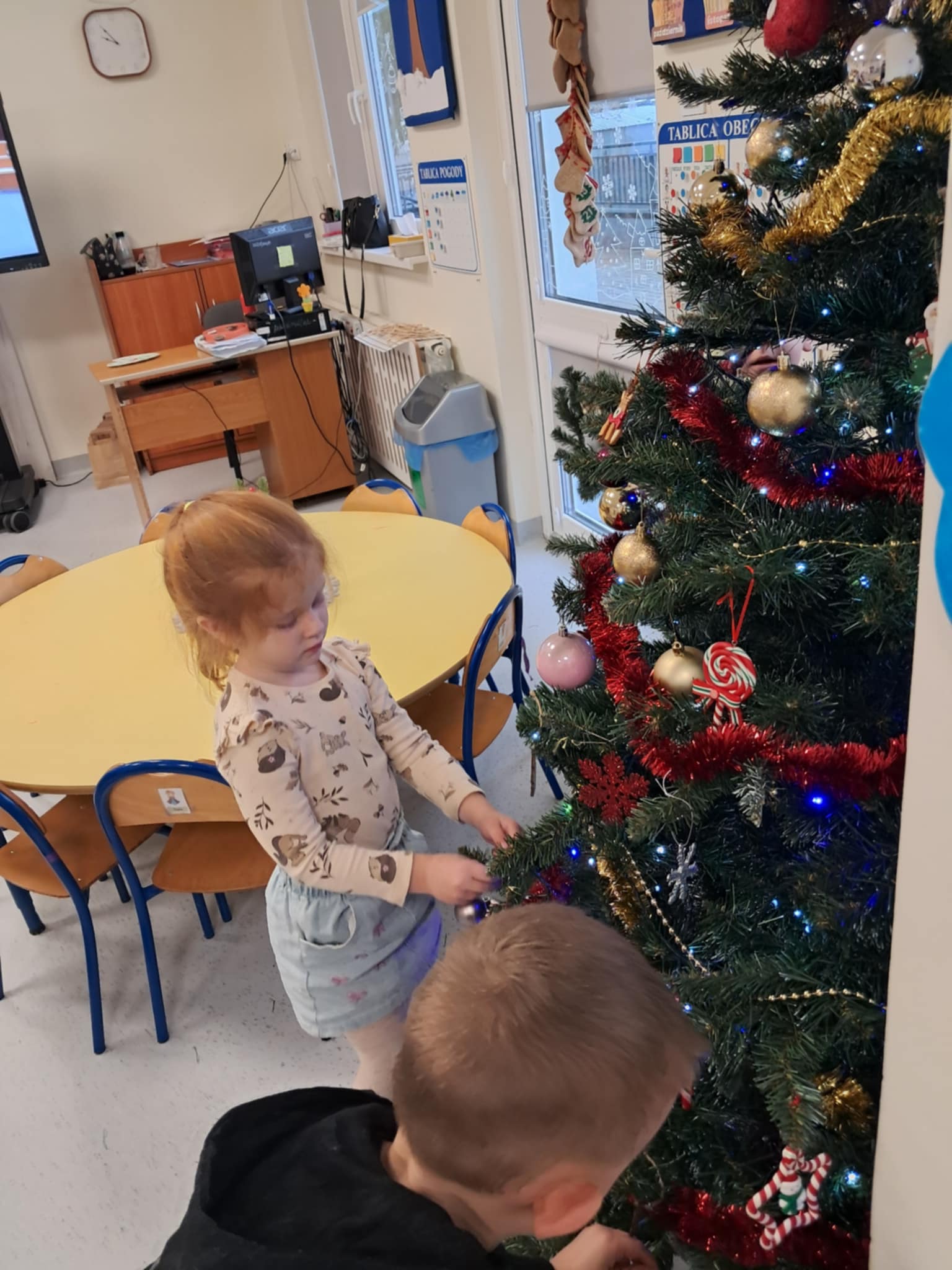 Odbyły się w naszej grupie Mikołajki, podczas których dzieci zaśpiewały piosenkę o Mikołaju i otrzymały upominki. Dzień wcześniej wspólnie ubrały piękną choinkę, która nadała sali wyjątkowy, świąteczny nastrój.