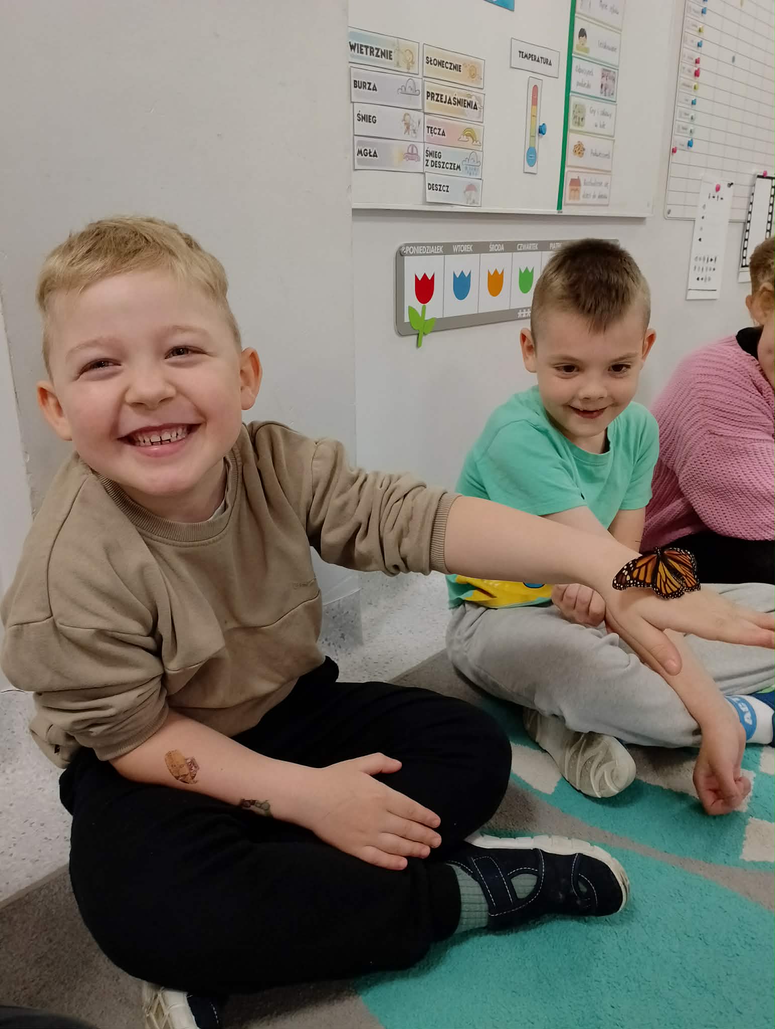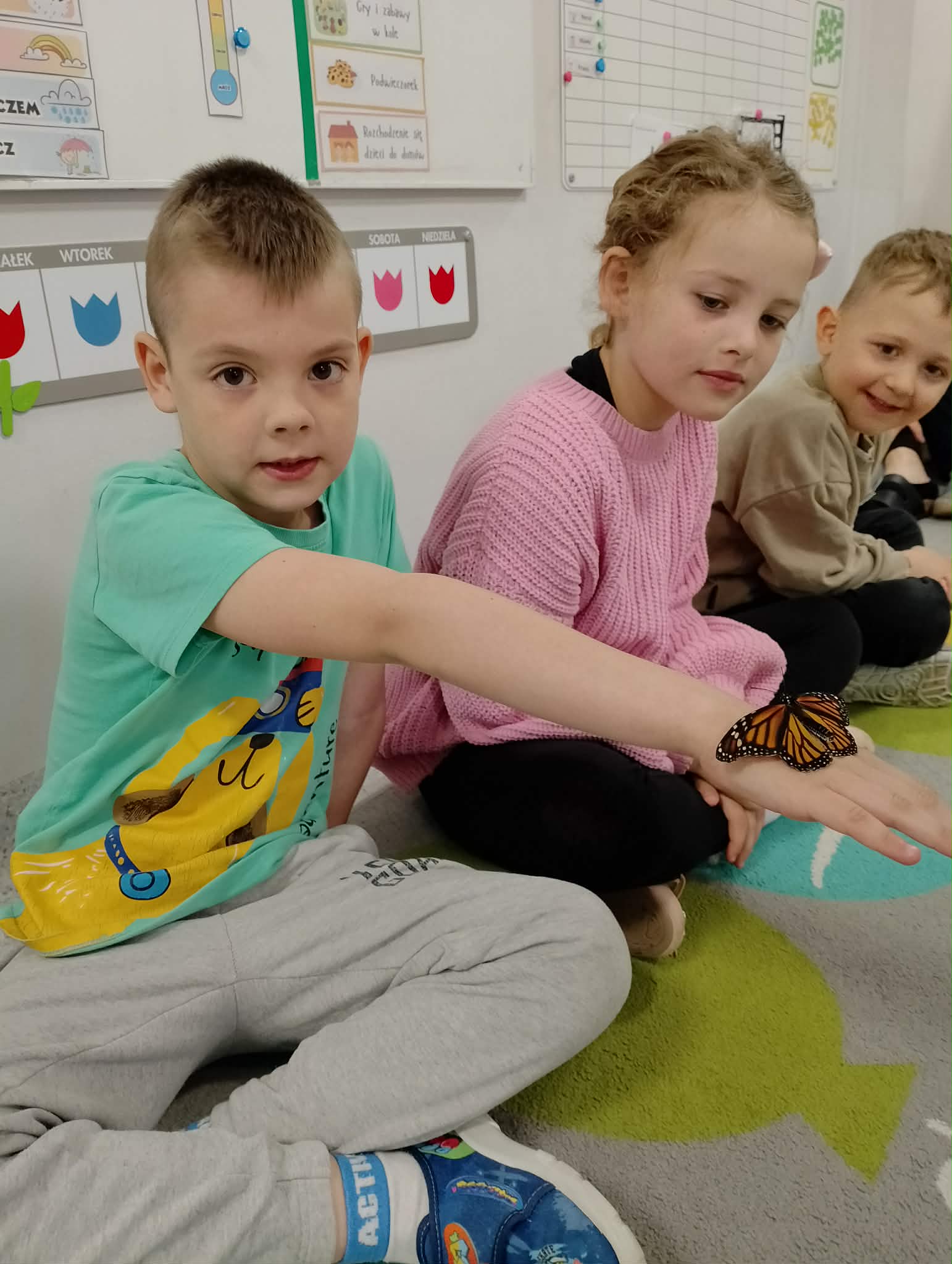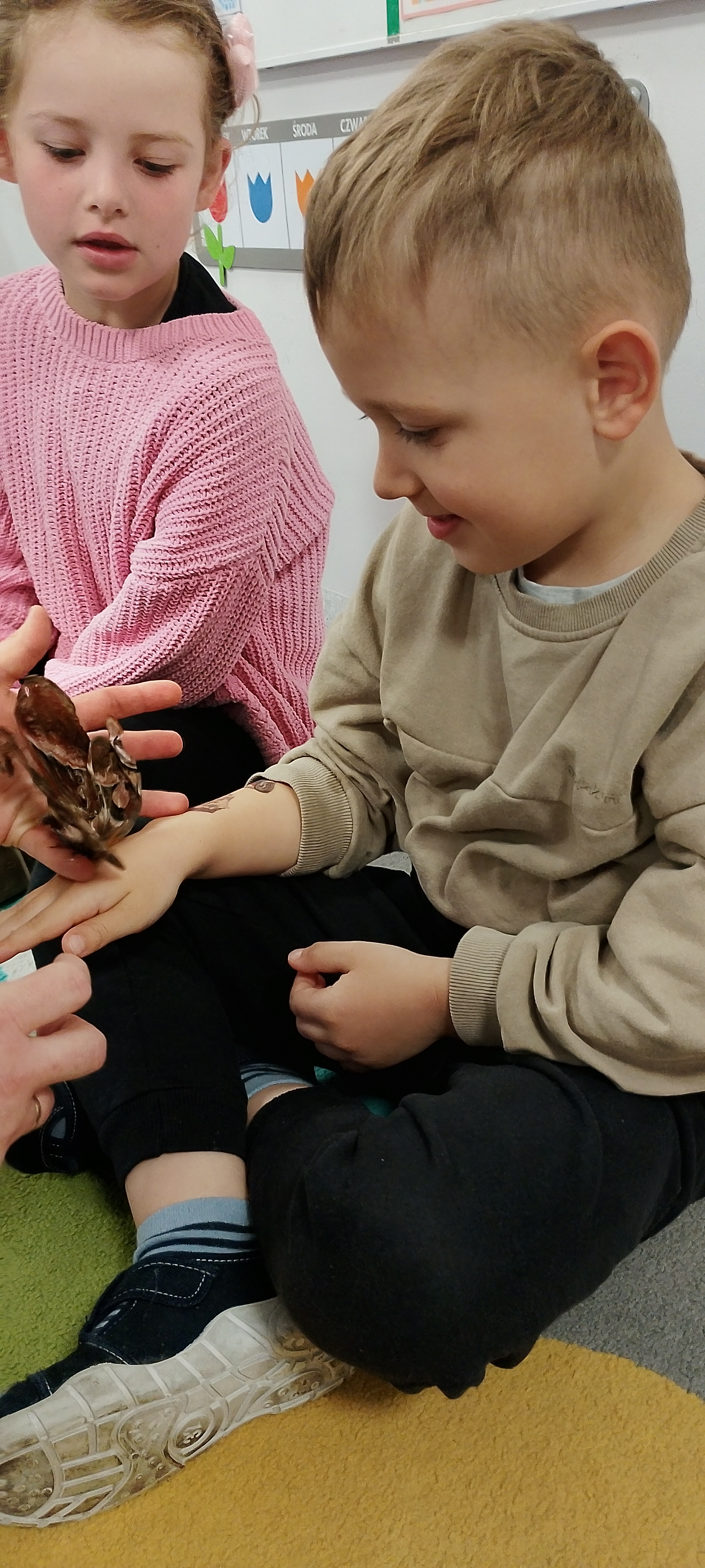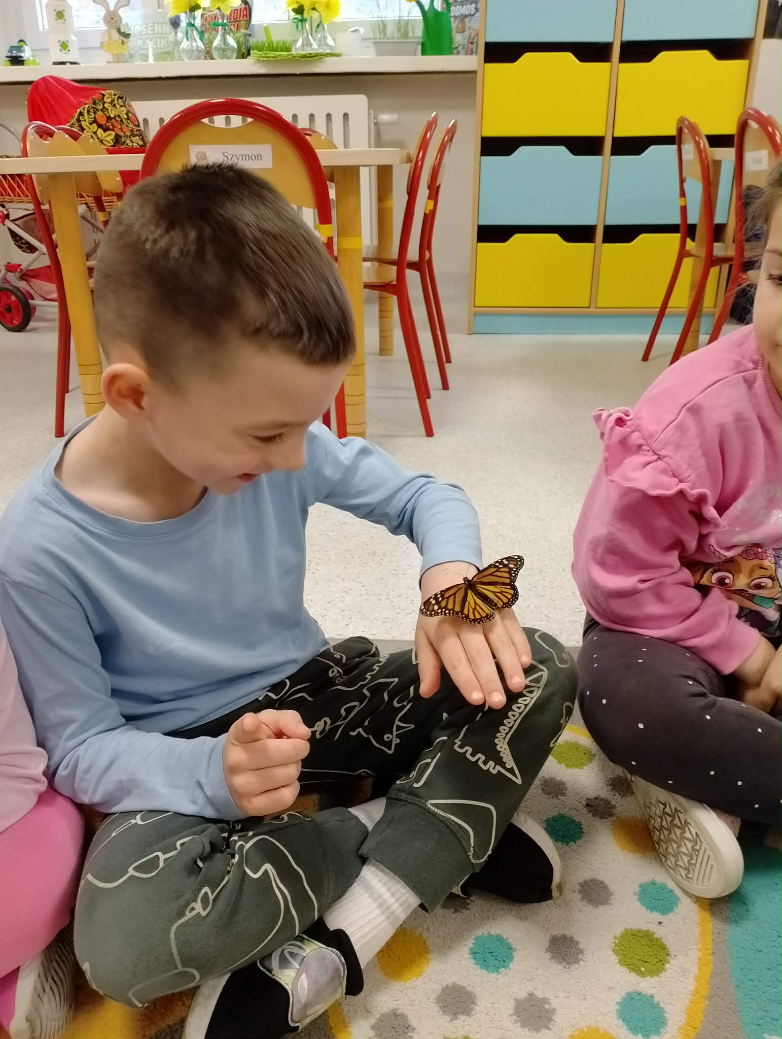 Stokrotki miały przyjemność uczestniczyć w warsztatach motylkowych. Poznały cykl życia motyla, widziały wiele owadów i co najważniejsze, każdy miał szansę dotknąć prawdziwego motyla.