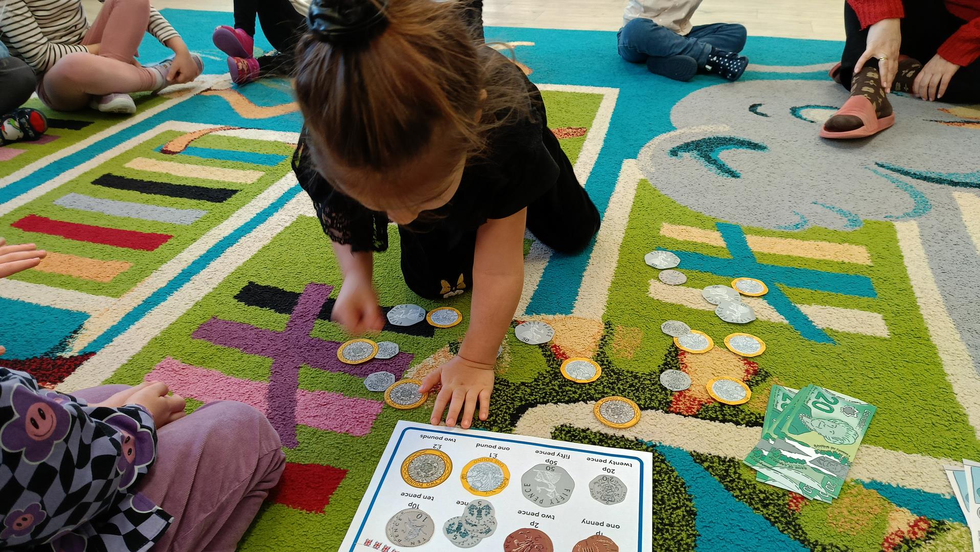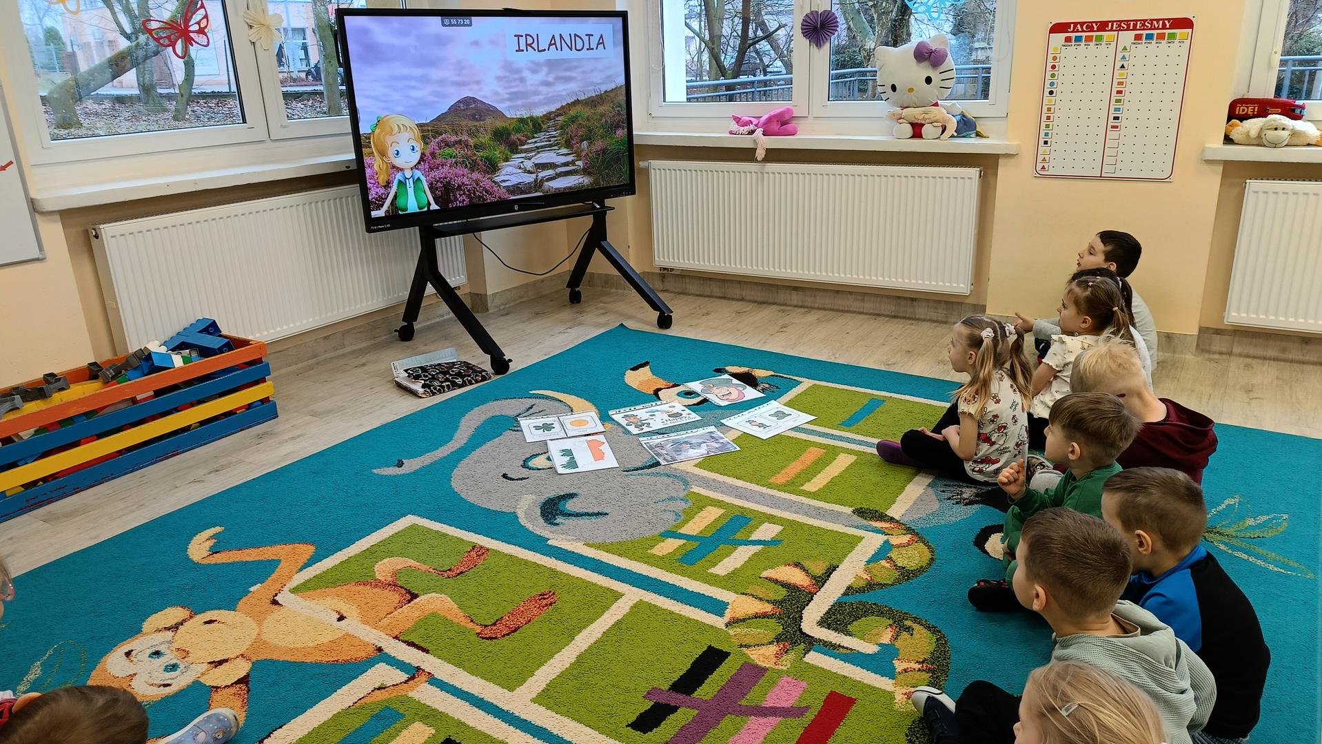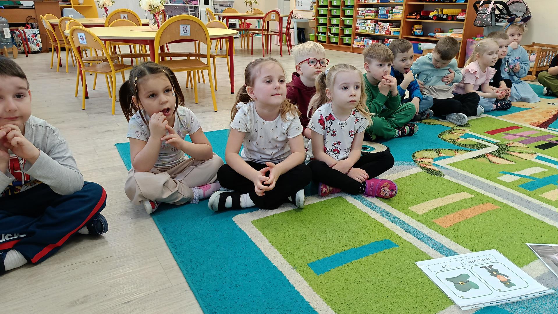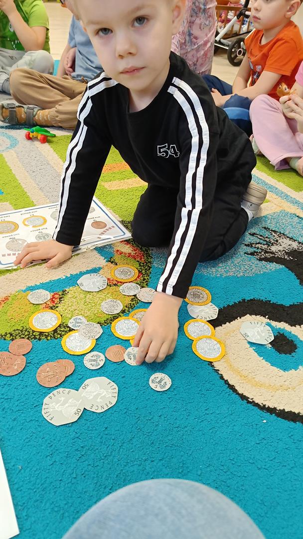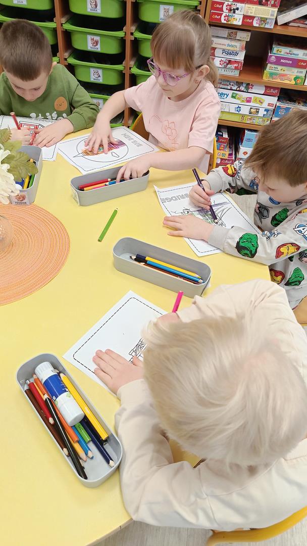 Podczas zajęć z języka angielskiego Przedszkolacy wykonują zadania z projektu "Mali Odkrywcy Wielkiej Brytanii": British Landmarks Coloring - stworzenie gazetki przedstawiającej znane brytyjskie zabytki, British Coins - zabawy z brytyjskimi monetami i banknotami, British Festiwal - poznanie zwyczaju Dnia Świętego Patryka.
