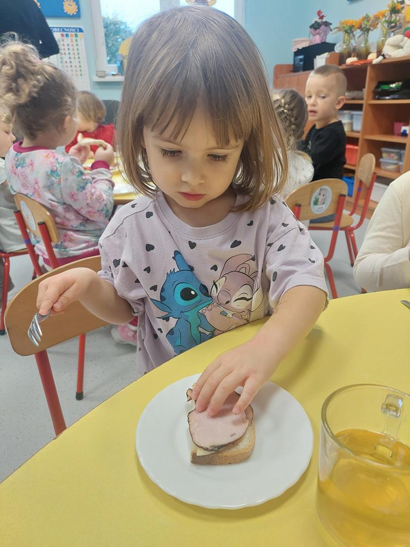 Dzieci ćwiczyły dzisiaj samodzielnośc. Wykonały swoją własną kanapkę na śniadanko.