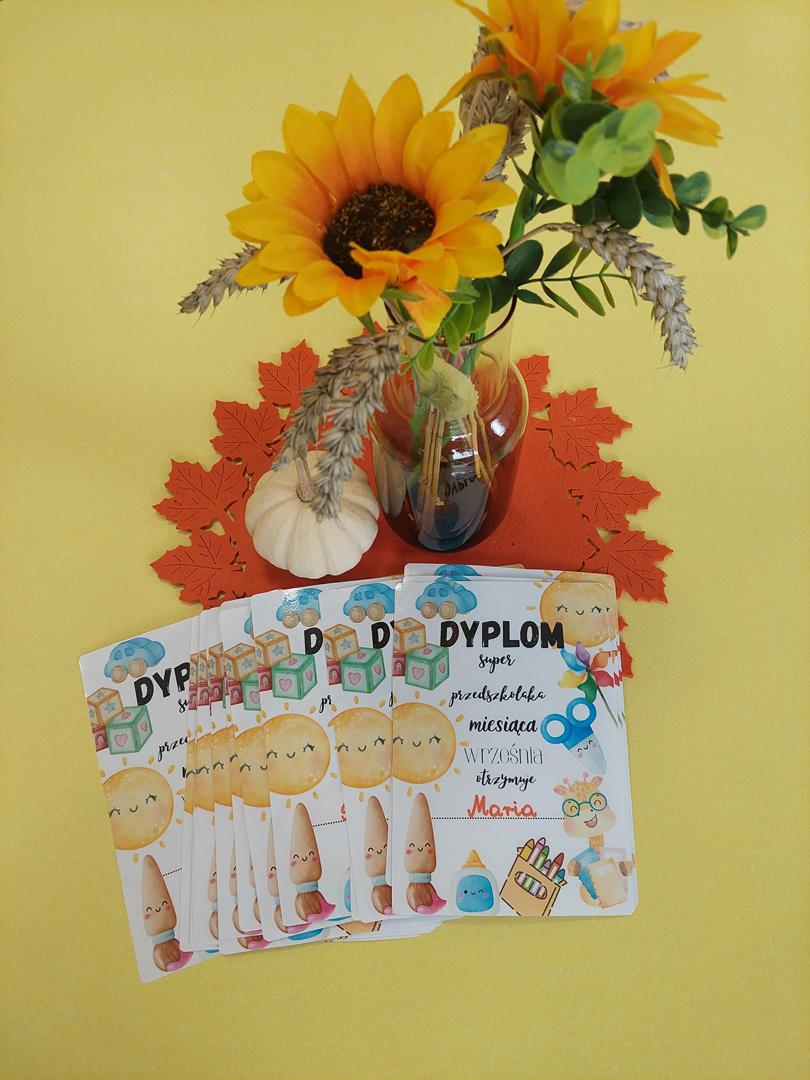 Podsumowaliśmy miesiąc wrzesień. Dzieci otrzymały dyplomy za przestrzeganie zasad, aktywność na zajęciach oraz wypełnianie obowiązków przedszkolnych.
