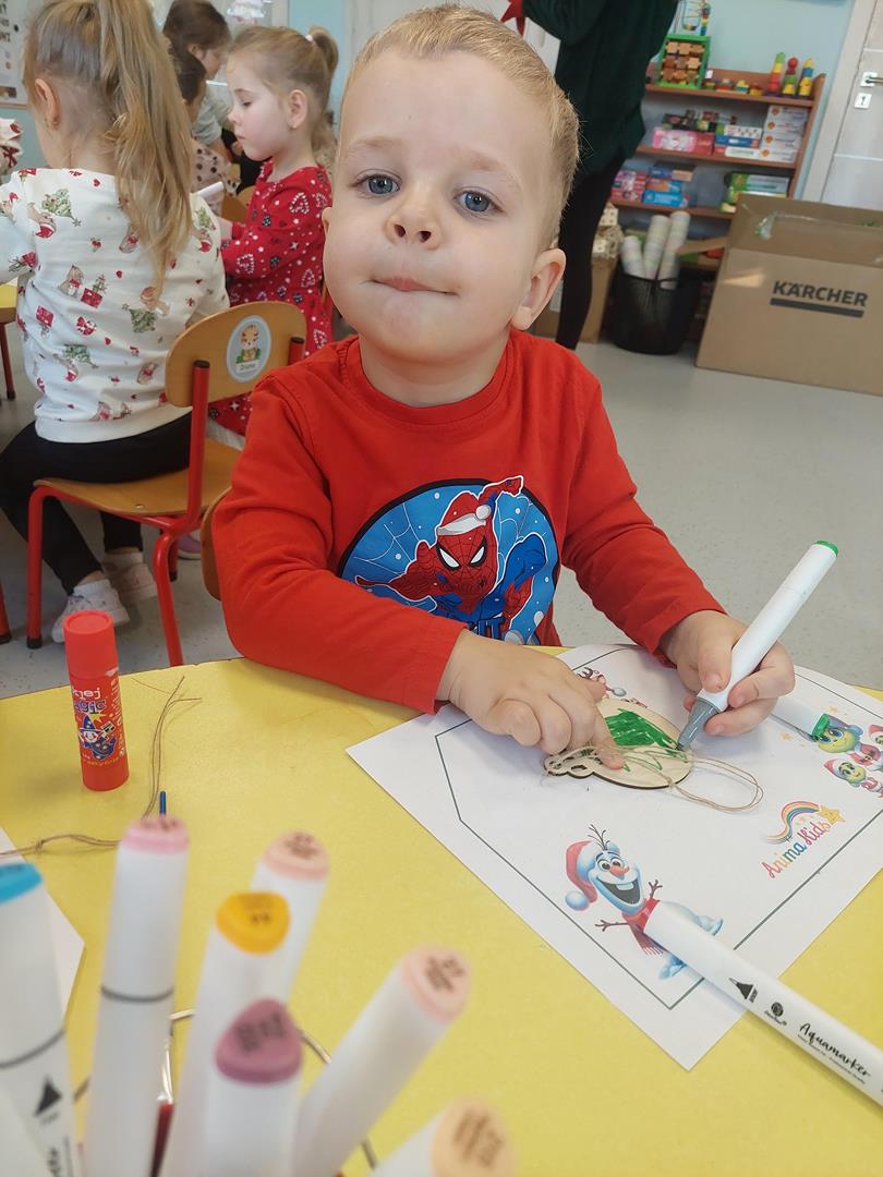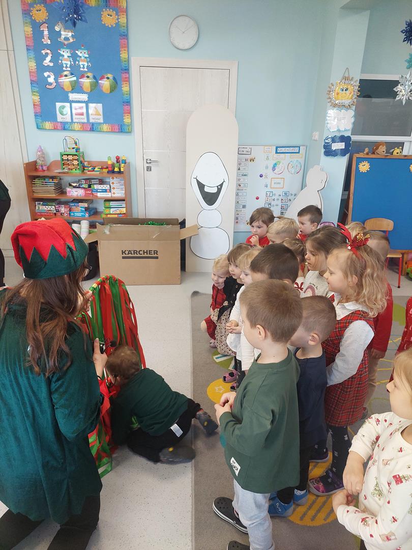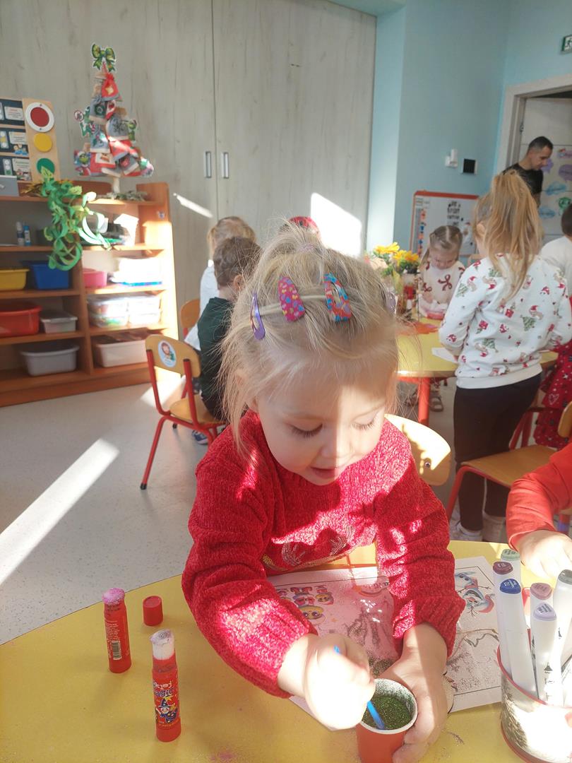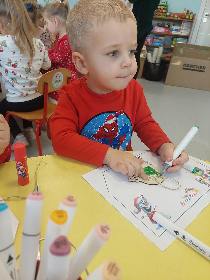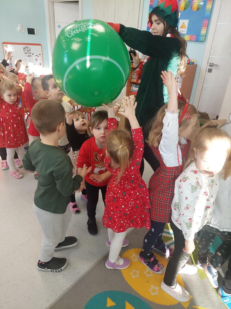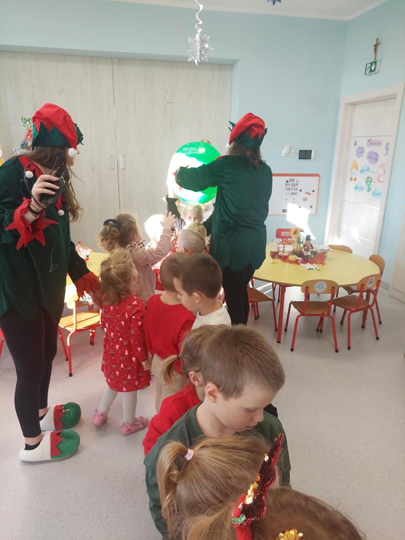 Dzisiaj w naszej grupie odbyły się świąteczne warsztaty z Elfami i Mikołajem. Każde dziecko wykonało swoją bombkę na choinkę. Powstały urocze ozdoby, a brokat wypełnił całą salę przedszkolną. Dzieci miały okazję spotkać Św. Mikołaja i poprosić o wymarzony prezent gwiazdkowy. Mikołaj obiecał, że odwiedzi dzieci w piątek, a więc czekamy z utęsknieniem. Nie zabrakło świetnej zabawy i pamiątkowych zdjęć.