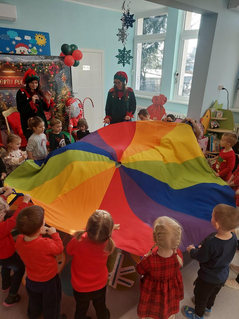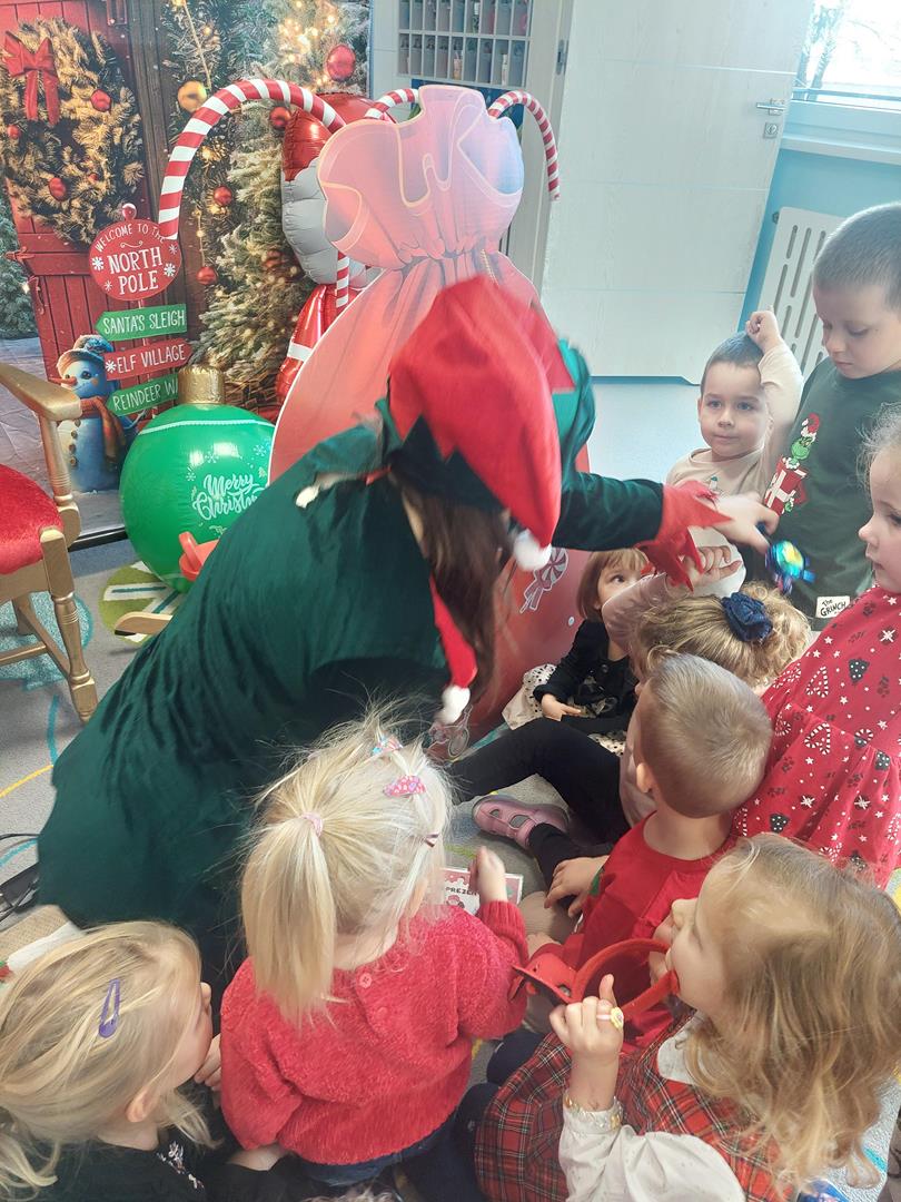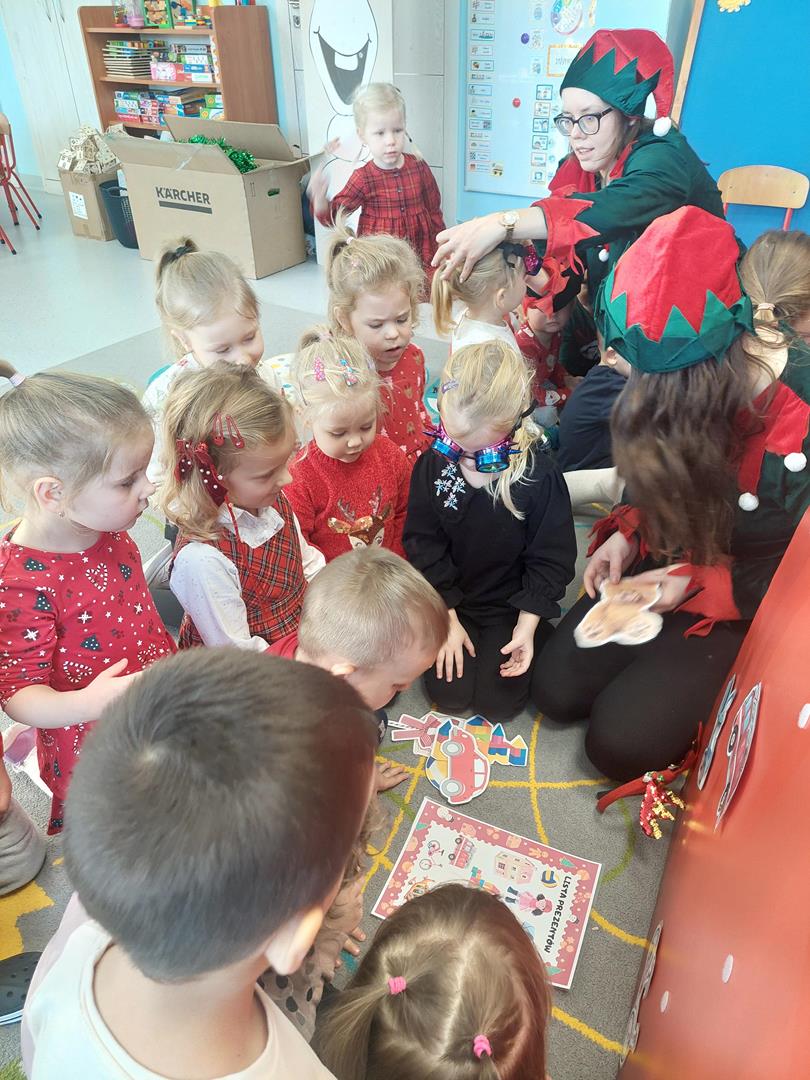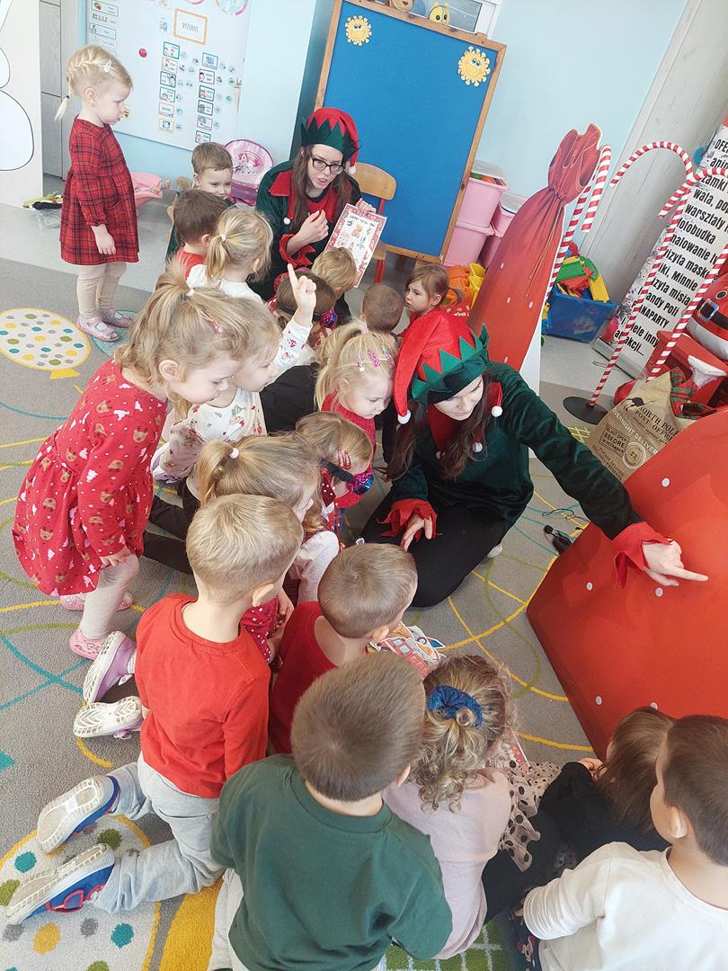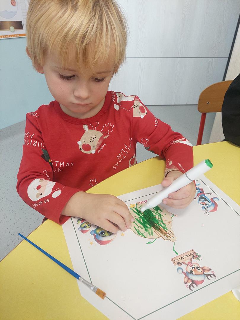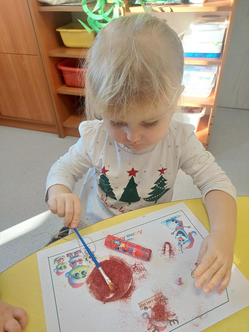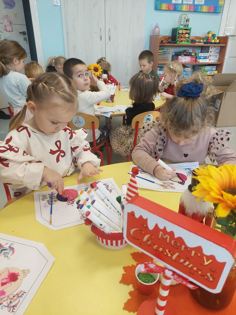 Dzisiaj w naszej grupie odbyły się świąteczne warsztaty z Elfami i Mikołajem. Każde dziecko wykonało swoją bombkę na choinkę. Powstały urocze ozdoby, a brokat wypełnił całą salę przedszkolną. Dzieci miały okazję spotkać Św. Mikołaja i poprosić o wymarzony prezent gwiazdkowy. Mikołaj obiecał, że odwiedzi dzieci w piątek, a więc czekamy z utęsknieniem. Nie zabrakło świetnej zabawy i pamiątkowych zdjęć.