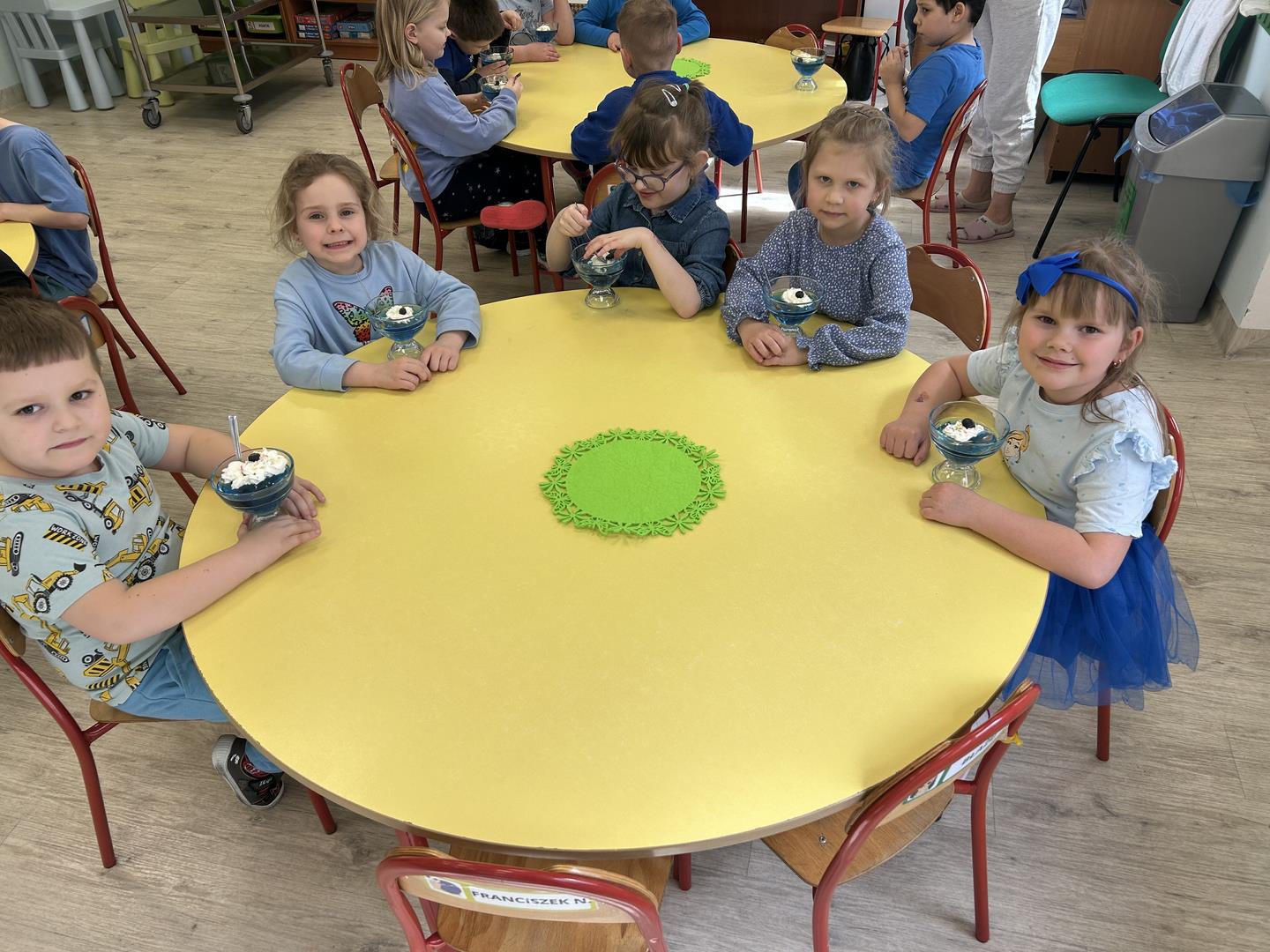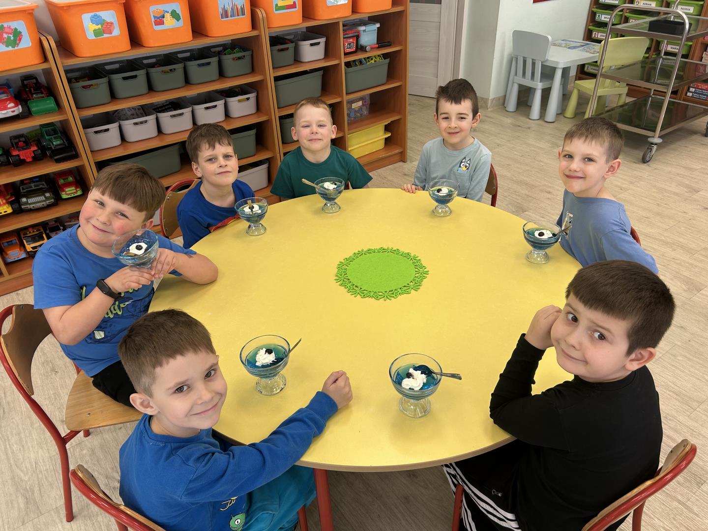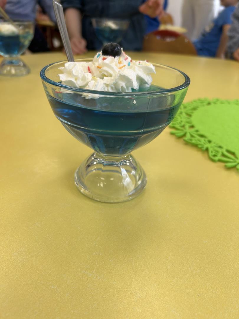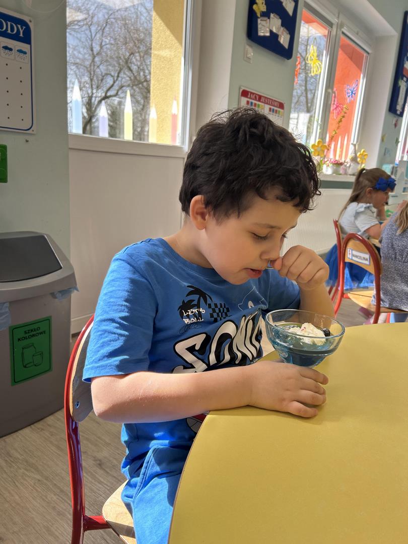 Na zakończenie wszyscy wspólnie delektowaliśmy się pyszną, niebieską galaretką, co sprawiło dzieciom dużo radości.
