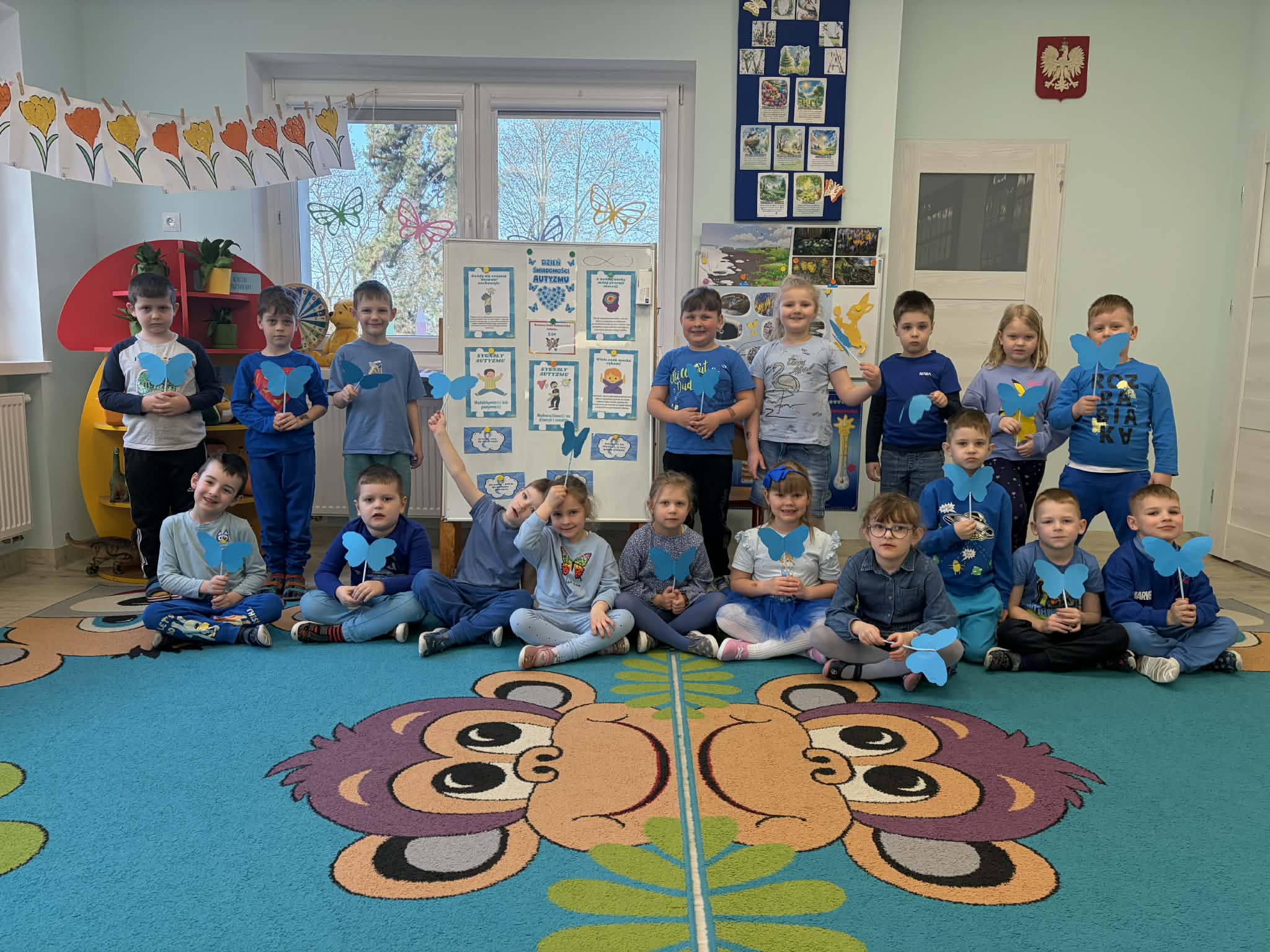 Dzieci wykonały piękne, niebieskie motyle. Była to także okazja do rozmowy o akceptacji, empatii i różnorodności.