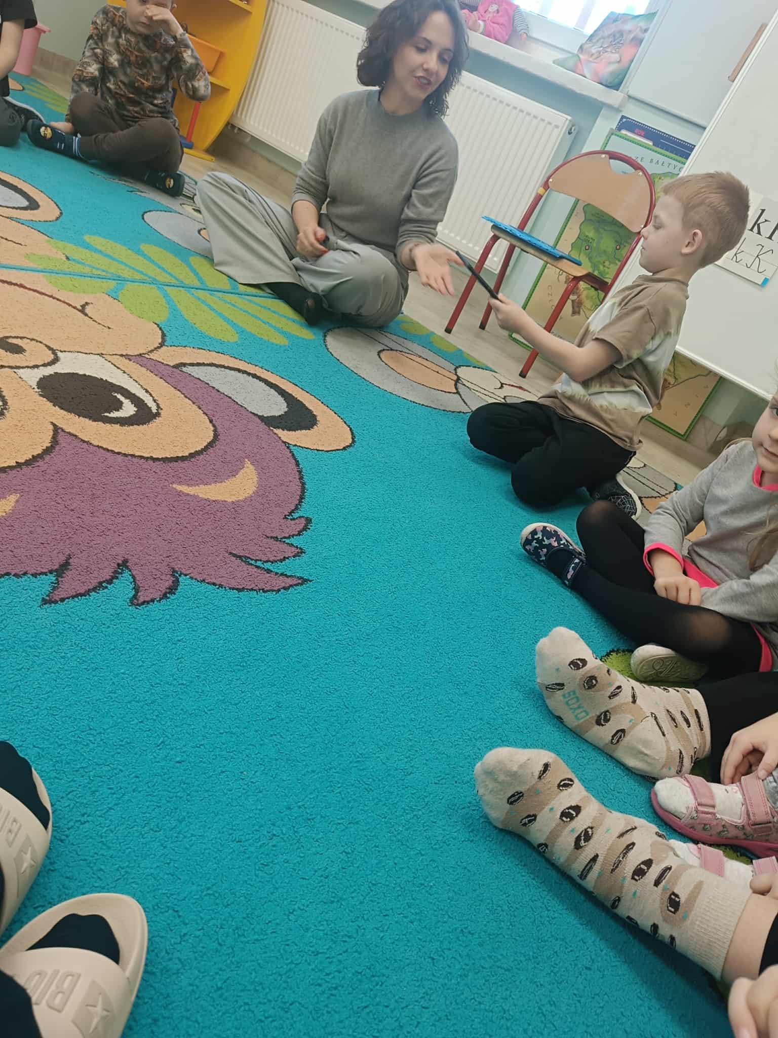 W naszej grupie odbyły się dziś wyjątkowe zajęcia prowadzone przez psychologa szkolnego. Dzieci rozmawiały o tolerancji, szacunku do innych oraz o tym, jak ważne jest akceptowanie różnic między ludźmi.