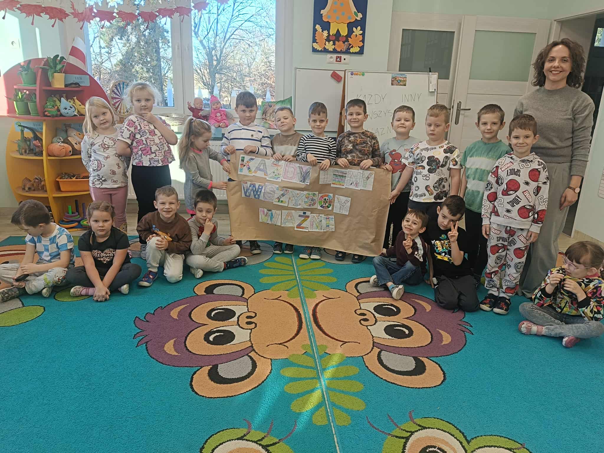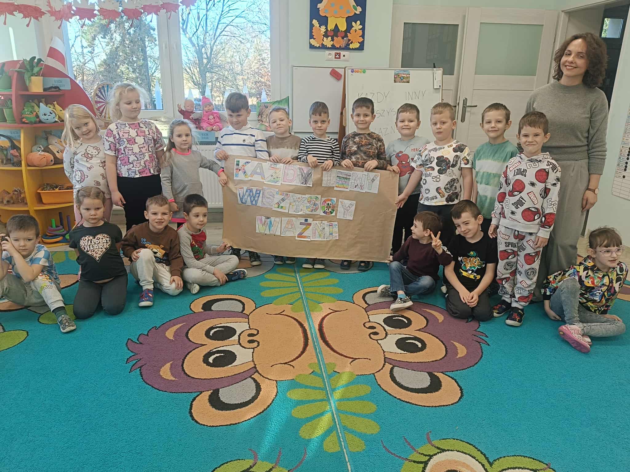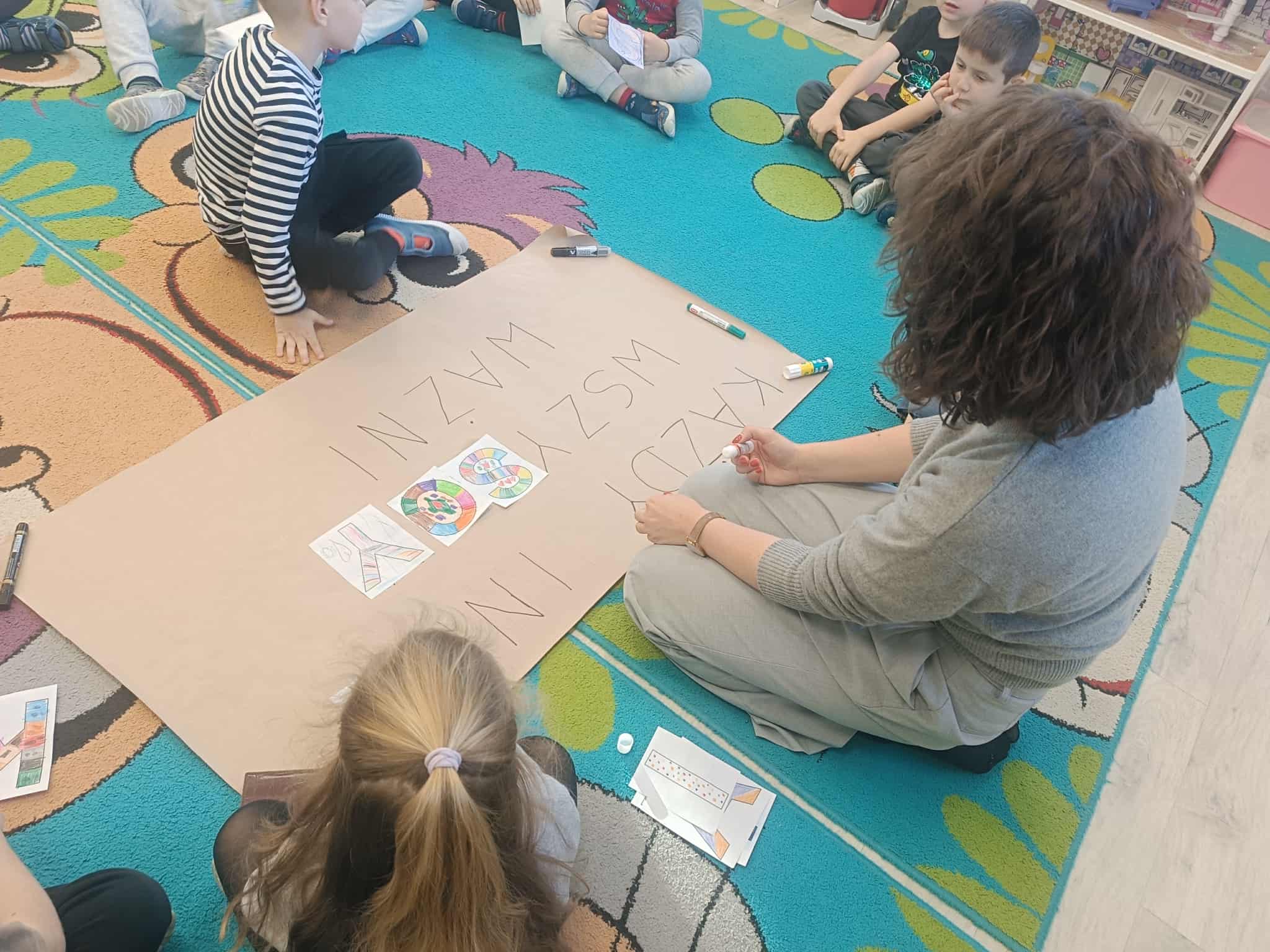 Podczas zajęć przedszkolaki brały udział w zabawach, rozmowach i zajęciach, które pomagały im lepiej zrozumieć, że każdy z nas jest wyjątkowy i zasługuje na życzliwość oraz dobre traktowanie.