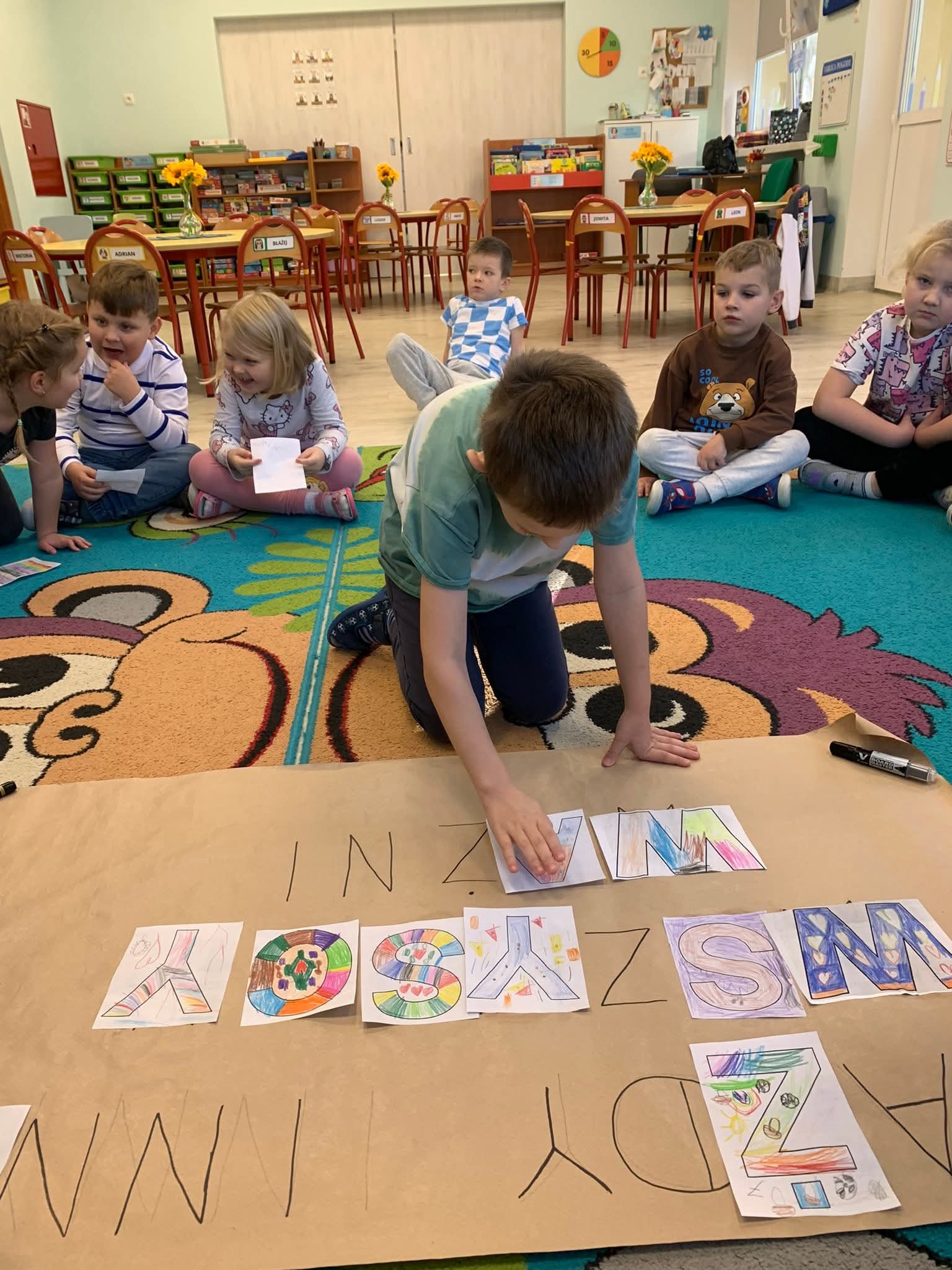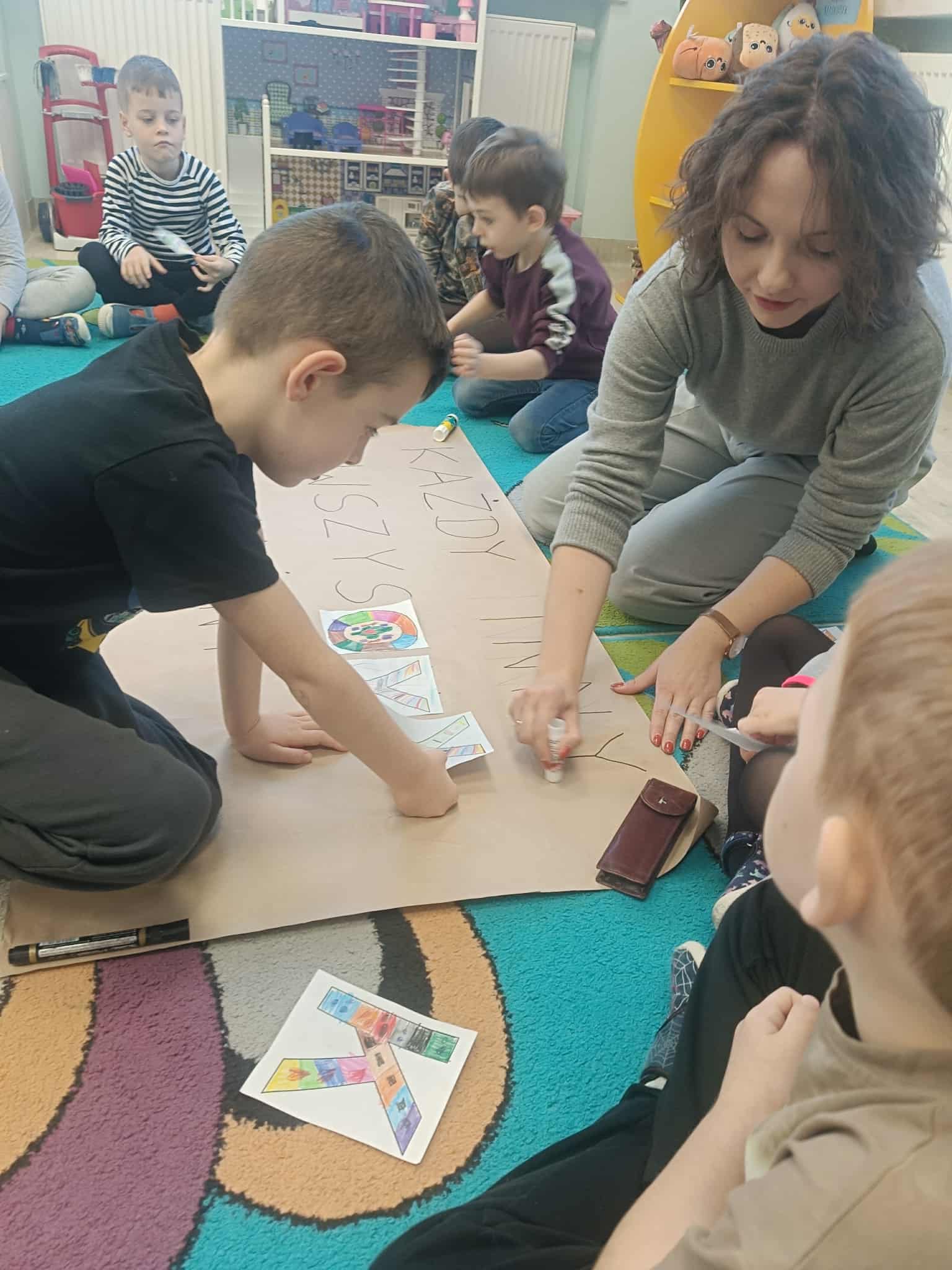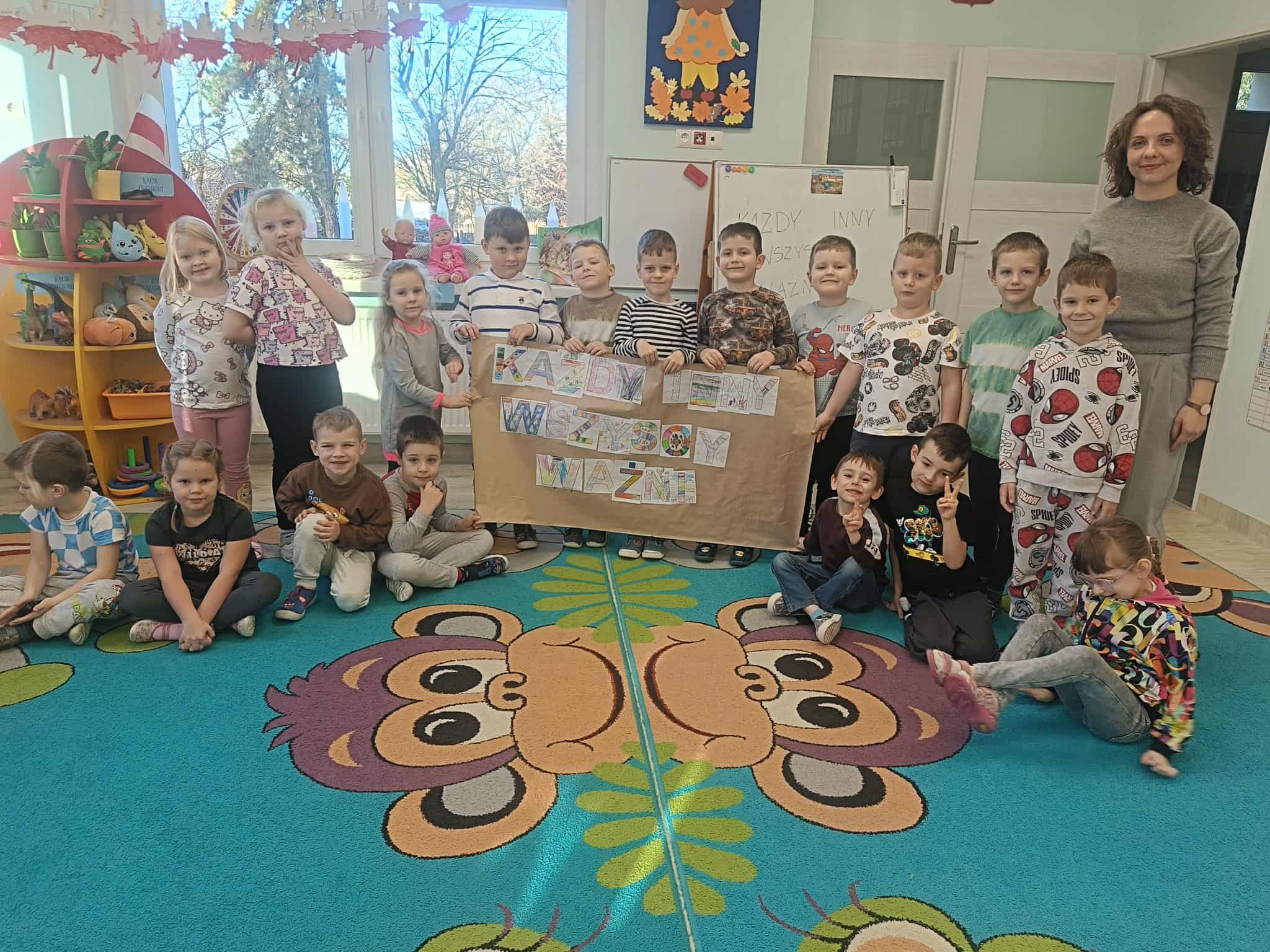 Podczas zajęć przedszkolaki brały udział w zabawach, rozmowach i zajęciach, które pomagały im lepiej zrozumieć, że każdy z nas jest wyjątkowy i zasługuje na życzliwość oraz dobre traktowanie.