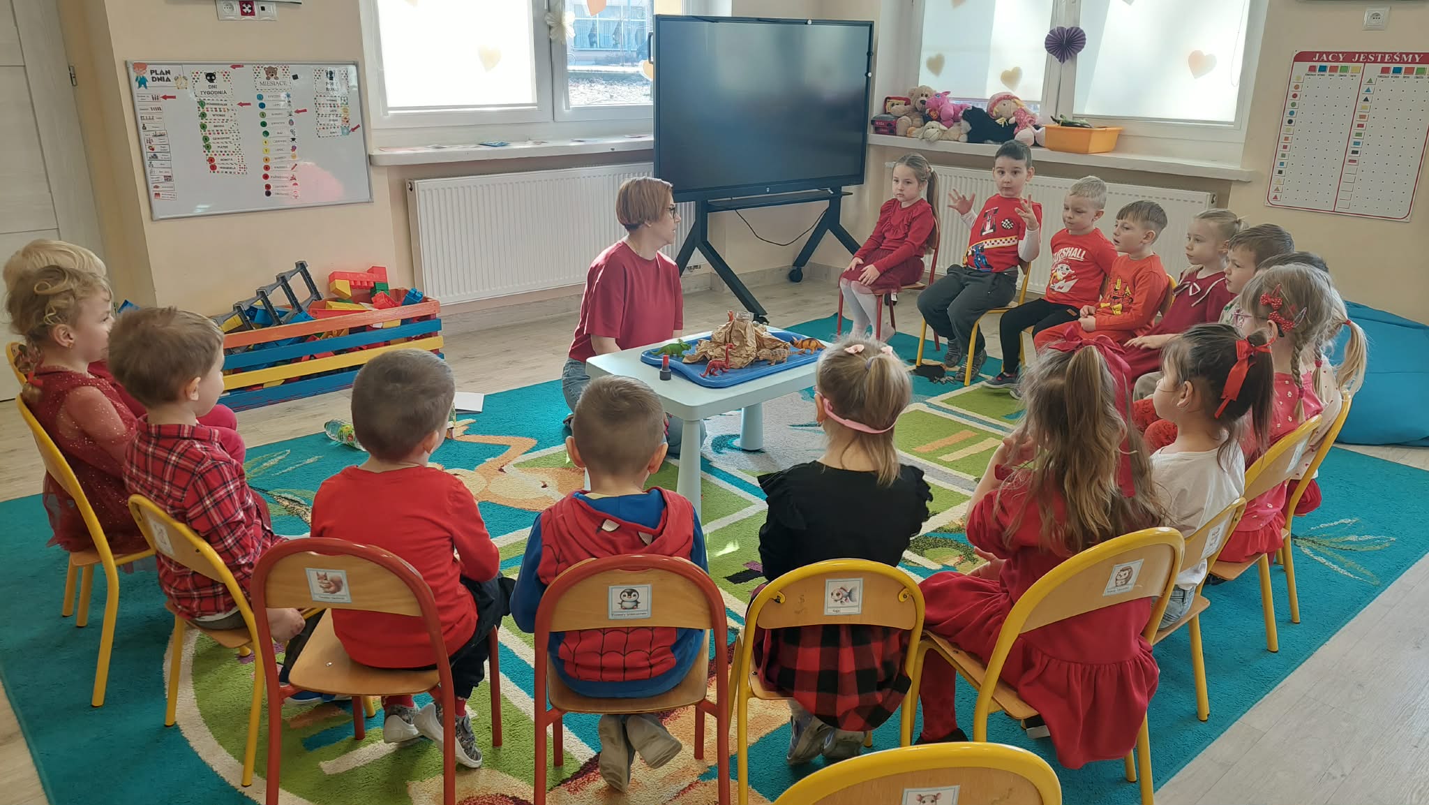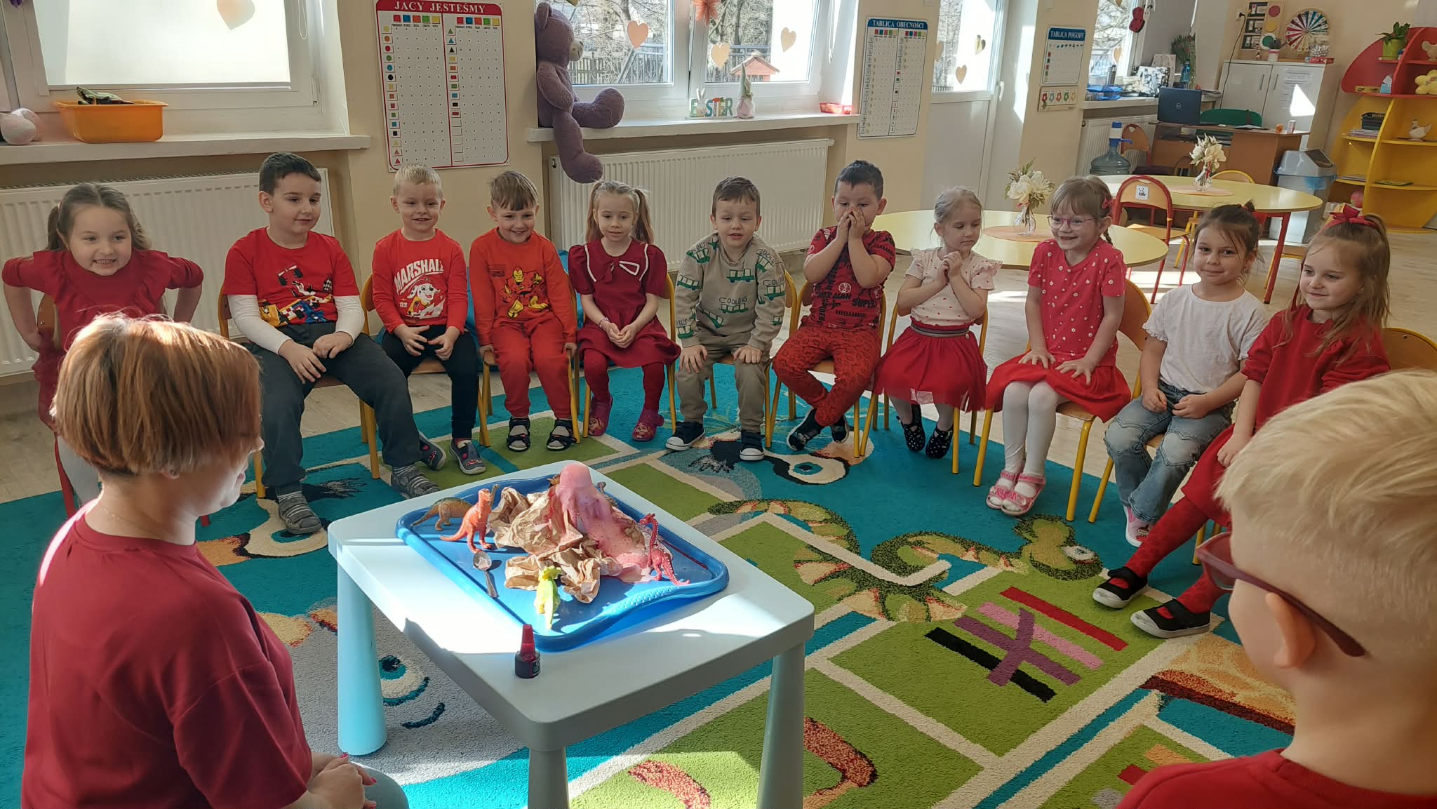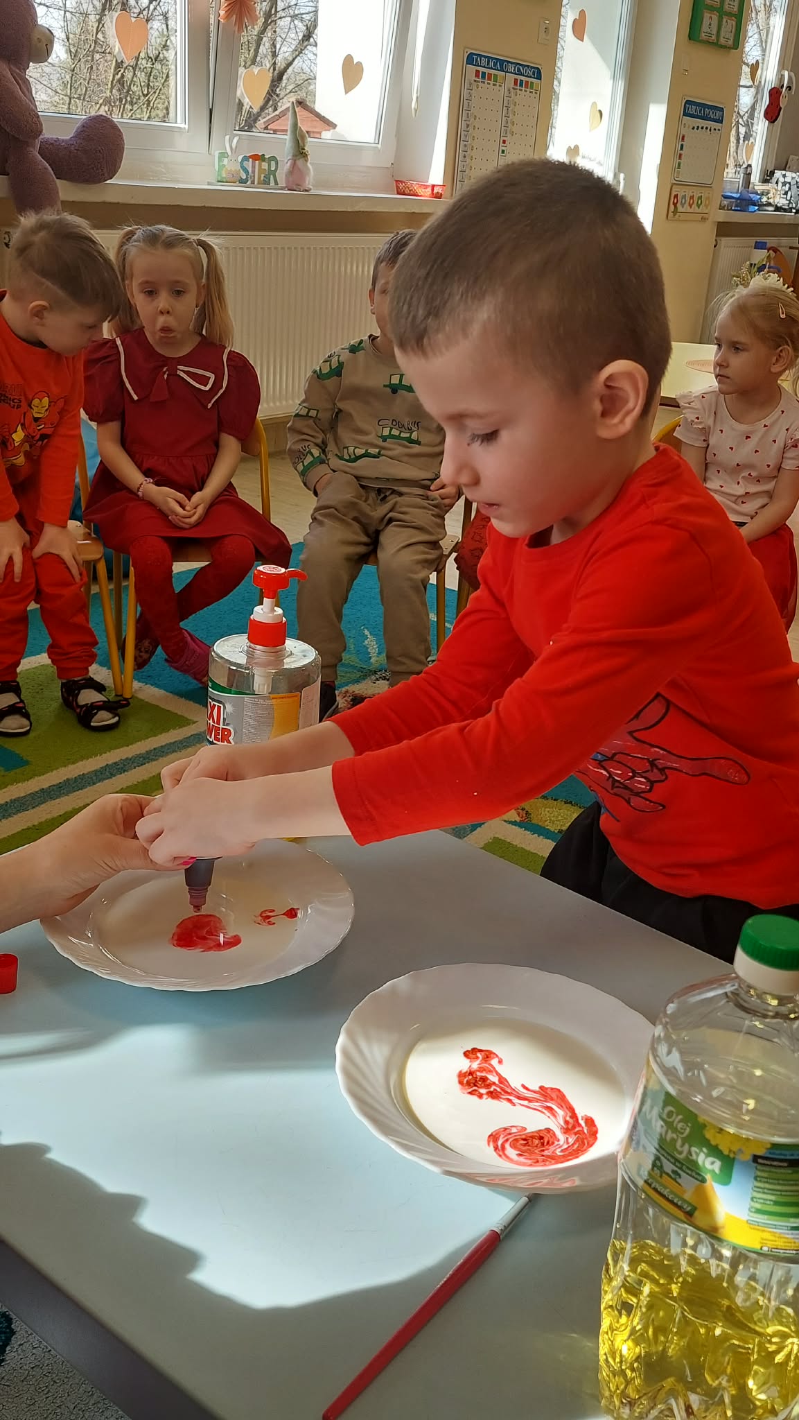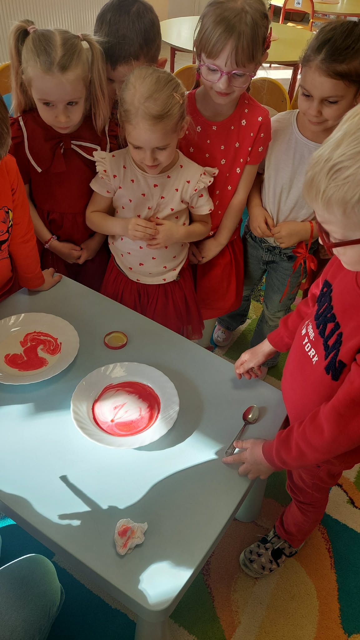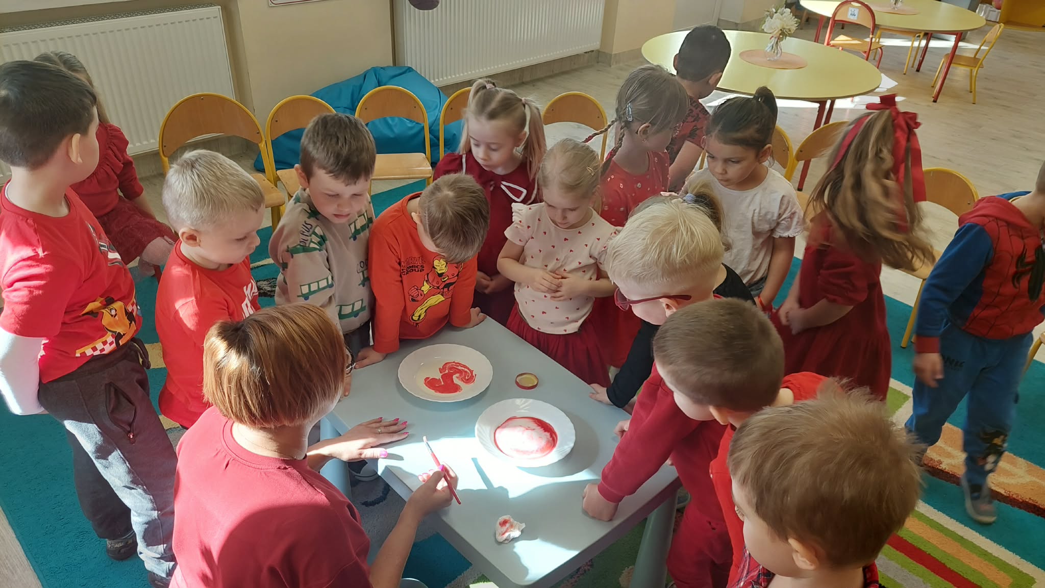 W tym tygodniu w naszym przedszkolu obchodzimy Tydzień Daltoński. Dzieci z grupy Biedronek pracowały kolorem czerwonym. Podczas zajęć przedszkolaki rozwijały samodzielność, współpracę oraz kreatywność. Dzieci układały puzzle, utrwaliły napis CZERWONY, a także brały udział w ciekawych eksperymentach. Wykonaliśmy doświadczenia: Wulkan, " Tańczące czerwone krople" , "Magiczne czerwone mleko", które wzbudziły wśród dzieci wiele radości i ciekawości.