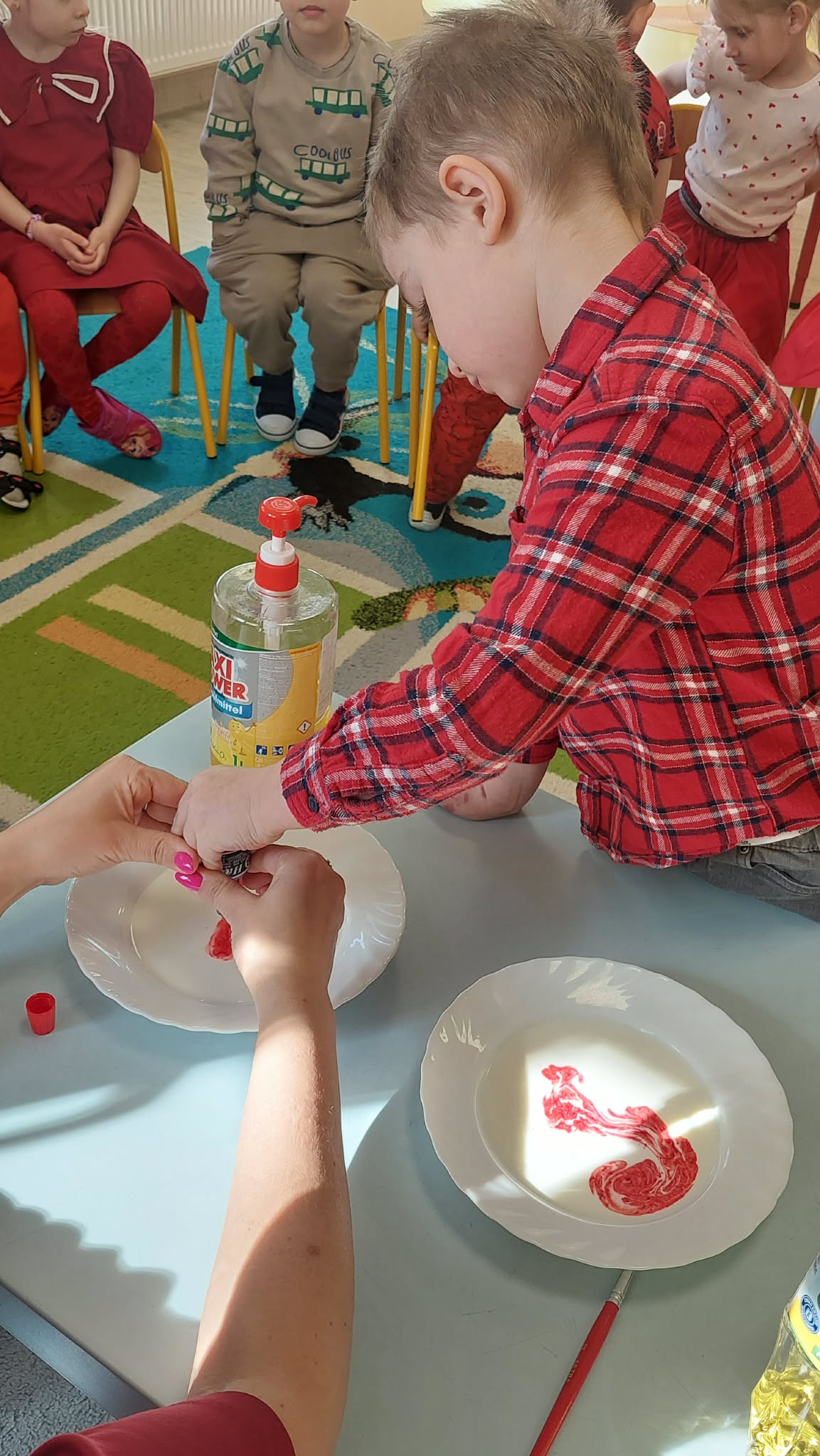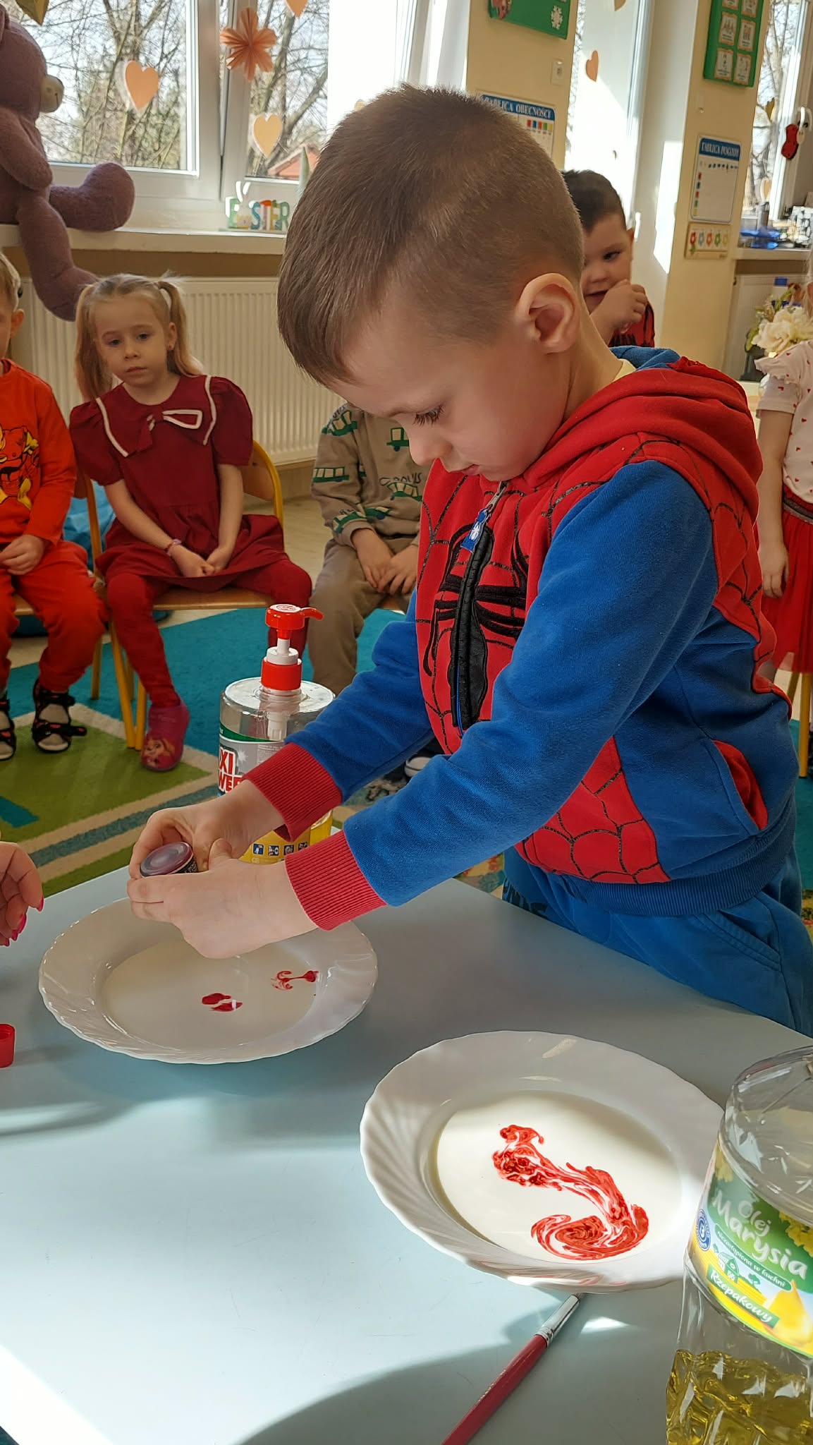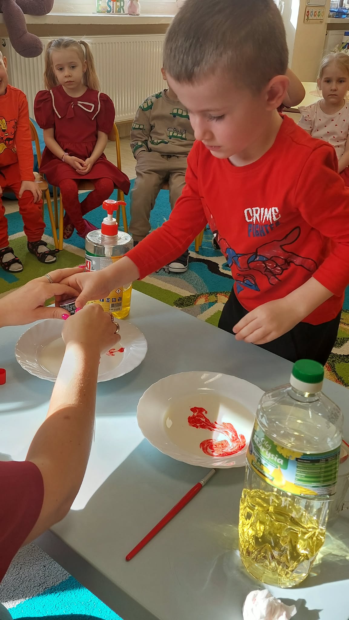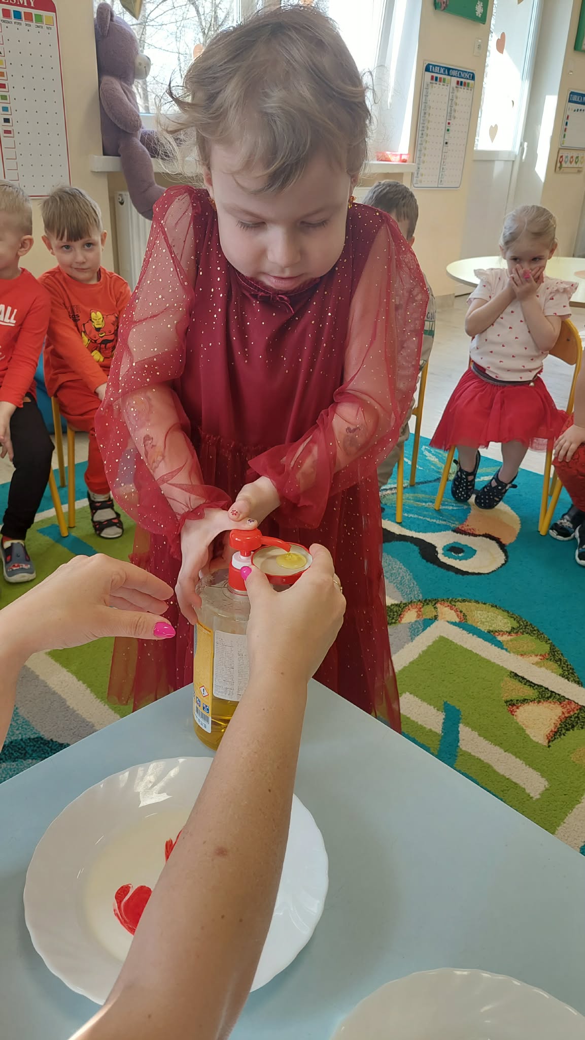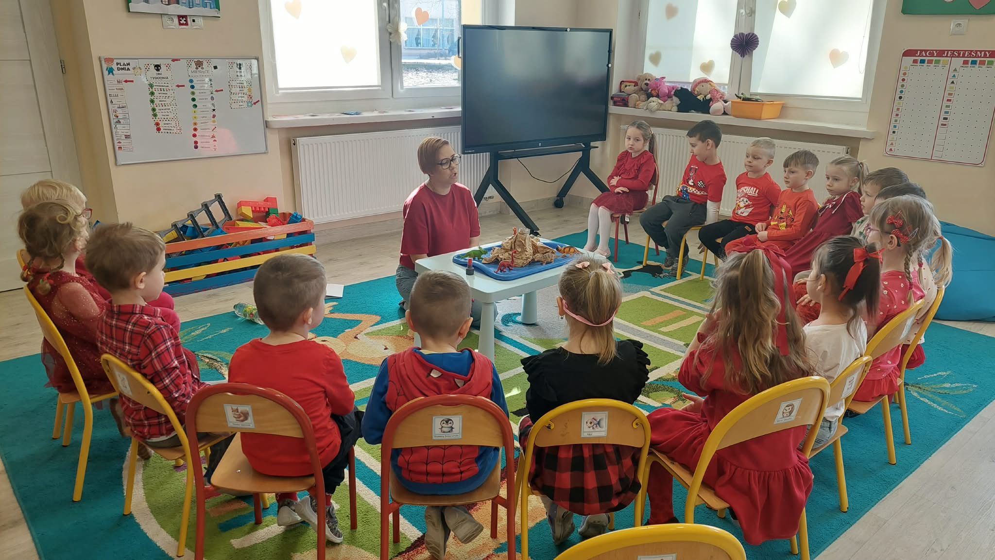W tym tygodniu w naszym przedszkolu obchodzimy Tydzień Daltoński. Dzieci z grupy Biedronek pracowały kolorem czerwonym. Podczas zajęć przedszkolaki rozwijały samodzielność, współpracę oraz kreatywność. Dzieci układały puzzle, utrwaliły napis CZERWONY, a także brały udział w ciekawych eksperymentach. Wykonaliśmy doświadczenia: Wulkan, " Tańczące czerwone krople" , "Magiczne czerwone mleko", które wzbudziły wśród dzieci wiele radości i ciekawości.