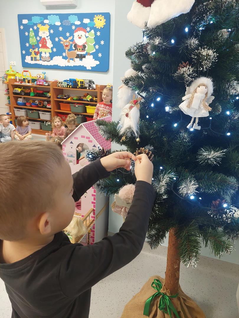 Przed Mikołajkami postanowiliśmy ubrać wspólnie naszą przedszkolną choinkę.