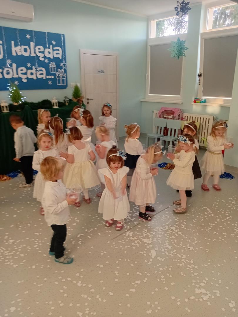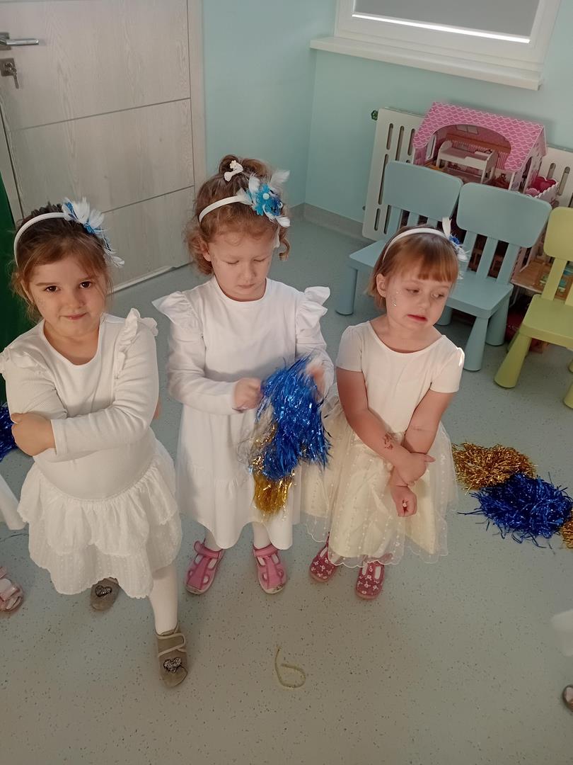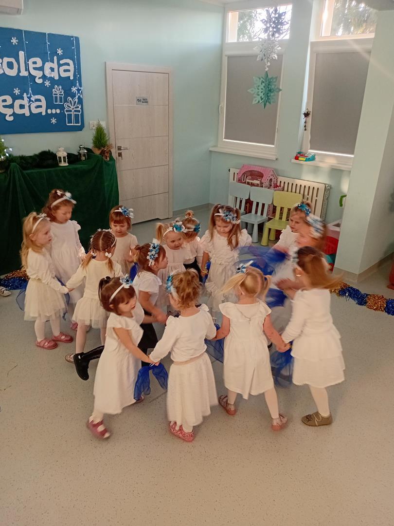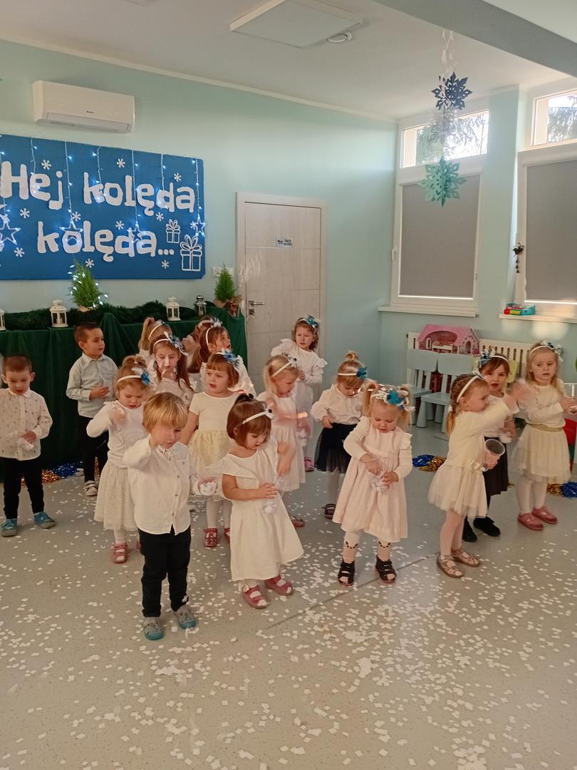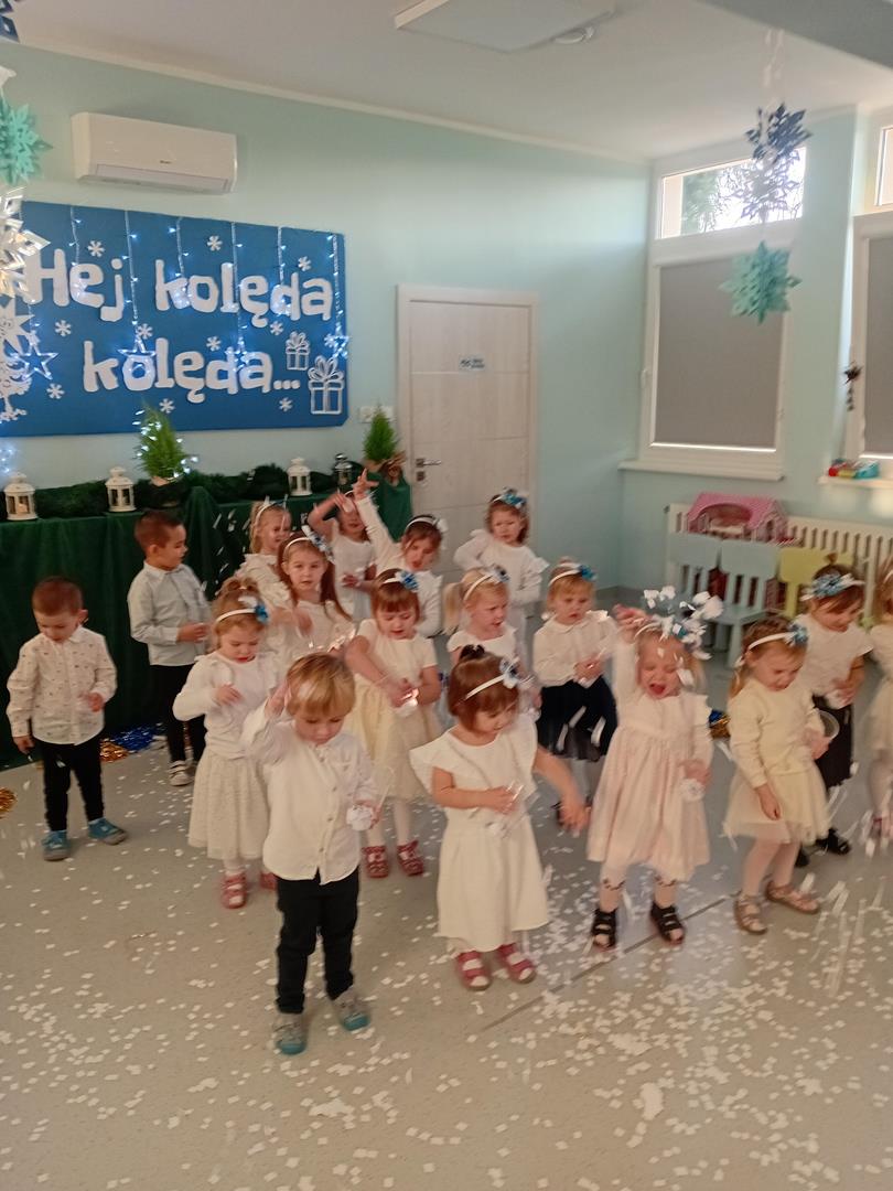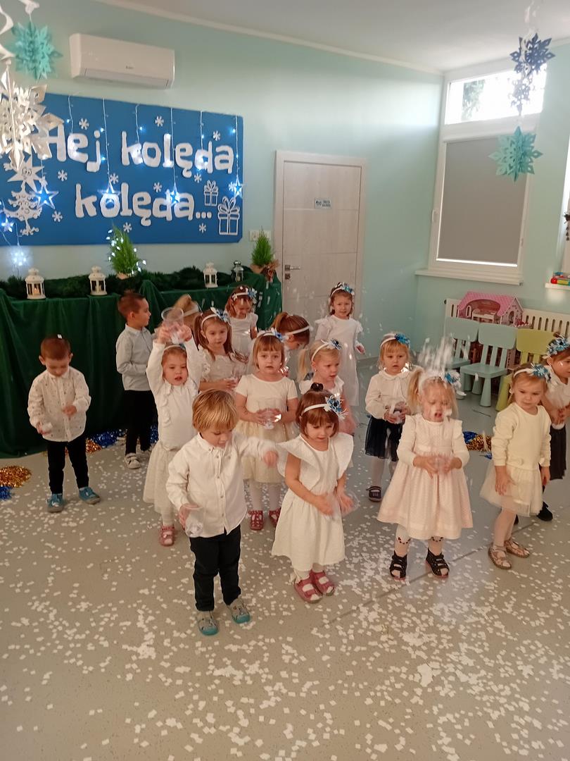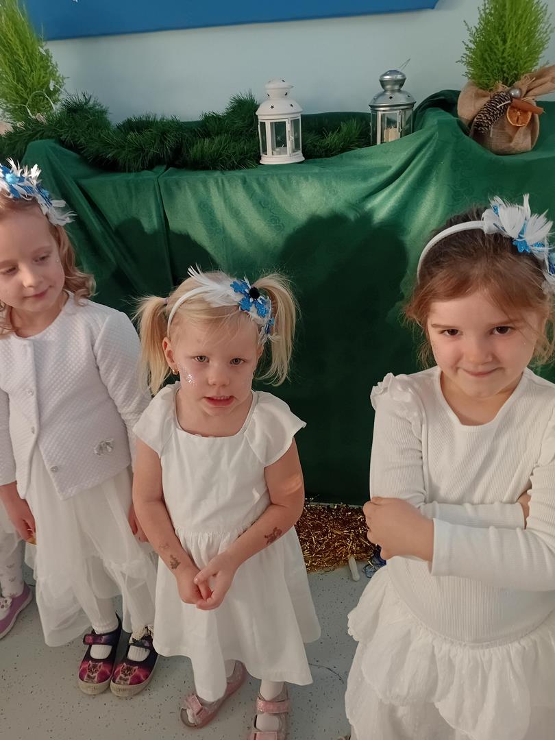 W środę odbyły się w naszej sali świąteczne warsztaty. Na początku przenieśliśmy rodziców do magicznej zimowej krainy, pozjeżdżaliśmy na saneczkach i nawet wyczarowaliśmy śnieg. Poczęstowaliśmy gości słodkościami, a na koniec wykonaliśmy wspólnie śnieżne kule.